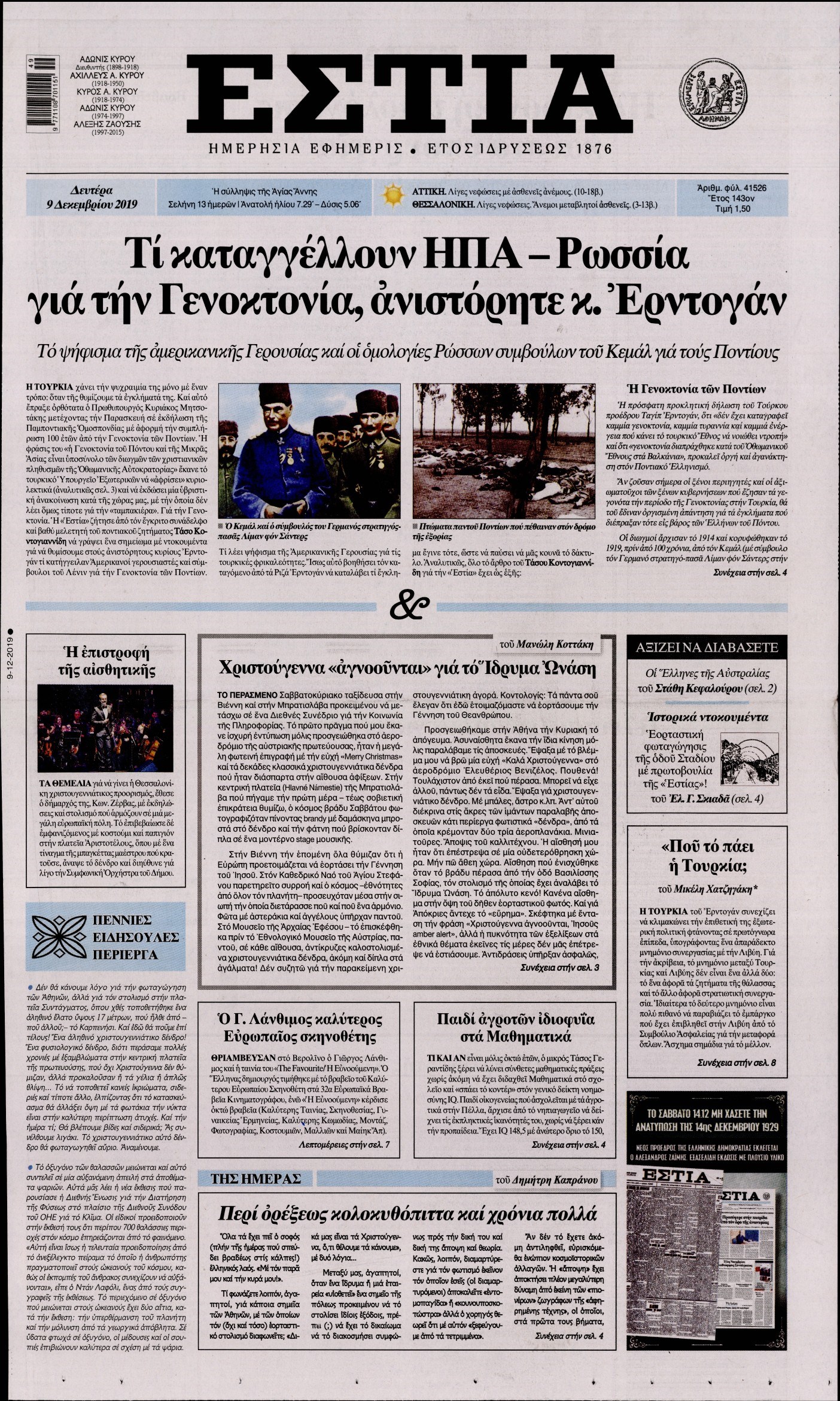 Οι πολιτικές εφημερίδες 9/12/2019 Κώστας Τεό 06:30, Δευτέρα 09 Δεκεμβρίου 2019 Media Διαβάστε τα πρωτοσέλιδα των πολιτικών εφημερίδων: ΠΟΛΙΤΙΚΕΣ ΕΦΗΜΕΡΙΔΕΣ ΠΡΩΤΟΣΕΛΙΔΑ Μοιράσου το: σχολίασε κι εσύ (0 σχόλια) Ακολουθήστε το enikos.gr στο Google News και μάθετε πρώτοι όλες τις ειδήσεις Δείτε όλες τις τελευταίες ειδήσεις από την Ελλάδα και τον Κόσμο στο enikos.gr Ειδήσεις Ροή Ειδήσεων 4 ώρες πριν Υπόθεση Έπσταϊν: Το Υπουργείο Δικαιοσύνης δημοσιοποίησε μια σειρά από εξαιρετικά επεξεργασμένα αρχεία – «Λείπουν τα πιο σημαντικά έγγραφα», λένε οι Δημοκρατικοί 44 λεπτά πριν Γιορτές με μπλόκα για τους αγρότες: Ανοίγουν διόδια και μοιράζουν προϊόντα στους ταξιδιώτες 1 ώρα πριν Εξαφάνιση 33χρονου γιατρού στην Κρήτη: «Άναψα τα φώτα, τρόμαξε και άρχισε να τρέχει στα χωράφια» – Η τελευταία διαδρομή και η μαρτυρία «κλειδί» 3 ώρες πριν Ο «χάρτης» με τις αυξήσεις και τις φοροελαφρύνσεις του 2026 – Ποιοι και πόσα κερδίζουν 1 ώρα πριν Τα αρχεία του Έπσταϊν αποκαλύπτουν φωτογραφία του έκπτωτου πρίγκιπα Άντριου – Είναι ξαπλωμένος στην αγκαλιά 5 γυναικών 1 ώρα πριν Μία νέα «χρυσή» περίοδος αρχίζει για 3 ζώδια από σήμερα – «Μία αναπάντεχη ευκαιρία οδηγεί στην επιτυχία» 5 ώρες πριν Αυγά: Πόσα μπορείτε να τρώτε την ημέρα με ασφάλεια για μέγιστη πρόσληψη πρωτεΐνης 3 ώρες πριν Αρχαιολόγοι ανακάλυψαν σε χωράφι απεικόνιση 600 ετών ενός Αγίου – Τα στοιχεία που δείχνουν ότι μαρτύρησε 2 ώρες πριν Αγχώνεται για το χριστουγεννιάτικο δώρο που πήρε στην πλούσια σύντροφό του – «Φοβάμαι πως θα το βρει φθηνιάρικο, φοράει βραχιόλια Cartier» 9 λεπτά πριν Νέες ταυτότητες: Μεγάλη αναμονή για ραντεβού στην Αττική – Τέλος τα ταξίδια εκτός Ελλάδος από τον Αύγουστο για όσους δεν έχουν αλλάξει 17 λεπτά πριν Οι 7 φράσεις που δεν λένε ποτέ οι συναισθηματικά έξυπνοι άνθρωποι κατά τη διάρκεια ενός καβγά 21 λεπτά πριν Τηλεθέαση (19/12): Ανατροπές και πρωτιές στην πρωινή ζώνη 28 λεπτά πριν Πώς η κλιματική αλλαγή επηρεάζει εγκύους και βρέφη – Οι επιπτώσεις των υψηλών θερμοκρασιών 36 λεπτά πριν e-ΕΦΚΑ και ΔΥΠΑ: Οι πληρωμές από 22 έως 24 Δεκεμβρίου – Ποιοι θα δουν χρήματα στους λογαριασμούς τους ENIKOS NETWORK Είστε μόνιμα απρόσεκτοι; 3 σημάδια που δείχνουν ότι μπορεί να είναι σύμπτωμα πάθησης Πόσα κιλά παίρνουμε πραγματικά τα Χριστούγεννα, σύμφωνα με την επιστήμη – Πώς να το αποτρέψουμε; Επίδομα παιδιού: Τι αλλάζει από το 2026 – Το όφελος από τις φορολογικές ελαφρύνσεις Mega χριστουγεννιάτικη φορολοταρία: «Κλείδωσε» η ημερομηνία για την κλήρωση – Ερωτήσεις και απαντήσεις Χαρτογραφώντας το «σημείο χωρίς επιστροφή»: Για πρώτη φορά αποκαλύπτεται με λεπτομέρεια το ακανθώδες όριο της ατμόσφαιρας τ... Η Google καταργεί τη λειτουργία «dark web report» – Πώς θα μπορούν οι χρήστες να διαγράφουν τα δεδομένα τους περισσότερα 09:30 , Σάββατο 20 Δεκεμβρίου 2025 «Porto Leone: Στη γειτονιά με τα κόκκινα φανάρια» – Ο Χρόνης αποκαλύπτει στην Αλεξάνδρα το μυστικό για το παιδί της Λένας Η μεγάλη δραματική σειρά του Apha «Porto Leone: Στη γειτονιά με τα κόκκινα φανάρια» μας μεταφέ... 08:14 , Σάββατο 20 Δεκεμβρίου 2025 Τρομεροί γονείς: Η Μαρία Καβογιάννη εισβάλλει στο σπίτι της οικογένειας Στεφανίδη Όσα θα δούμε στο νέο διπλό επεισόδιο της σειράς «Τρομεροί γονείς», σήμερα Σάββατο 20 Δεκεμβρίο... 05:48 , Σάββατο 20 Δεκεμβρίου 2025 Οι οικονομικές εφημερίδες 20/12/2025 Διαβάστε τα πρωτοσέλιδα από τις οικονομικές εφημερίδες, σήμερα 20/12/2025. 05:43 , Σάββατο 20 Δεκεμβρίου 2025 Οι αθλητικές εφημερίδες 20/12/2025 Διαβάσ