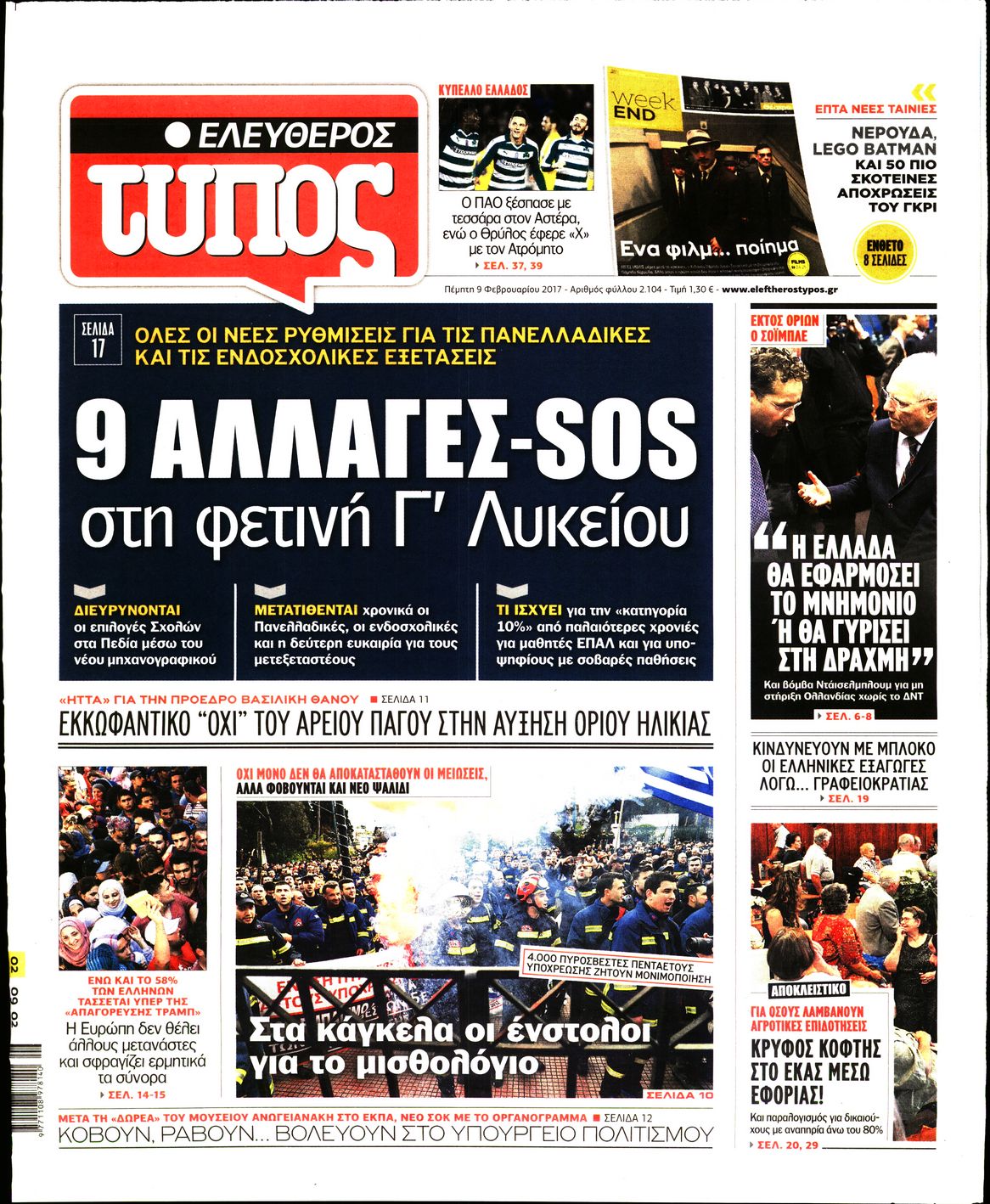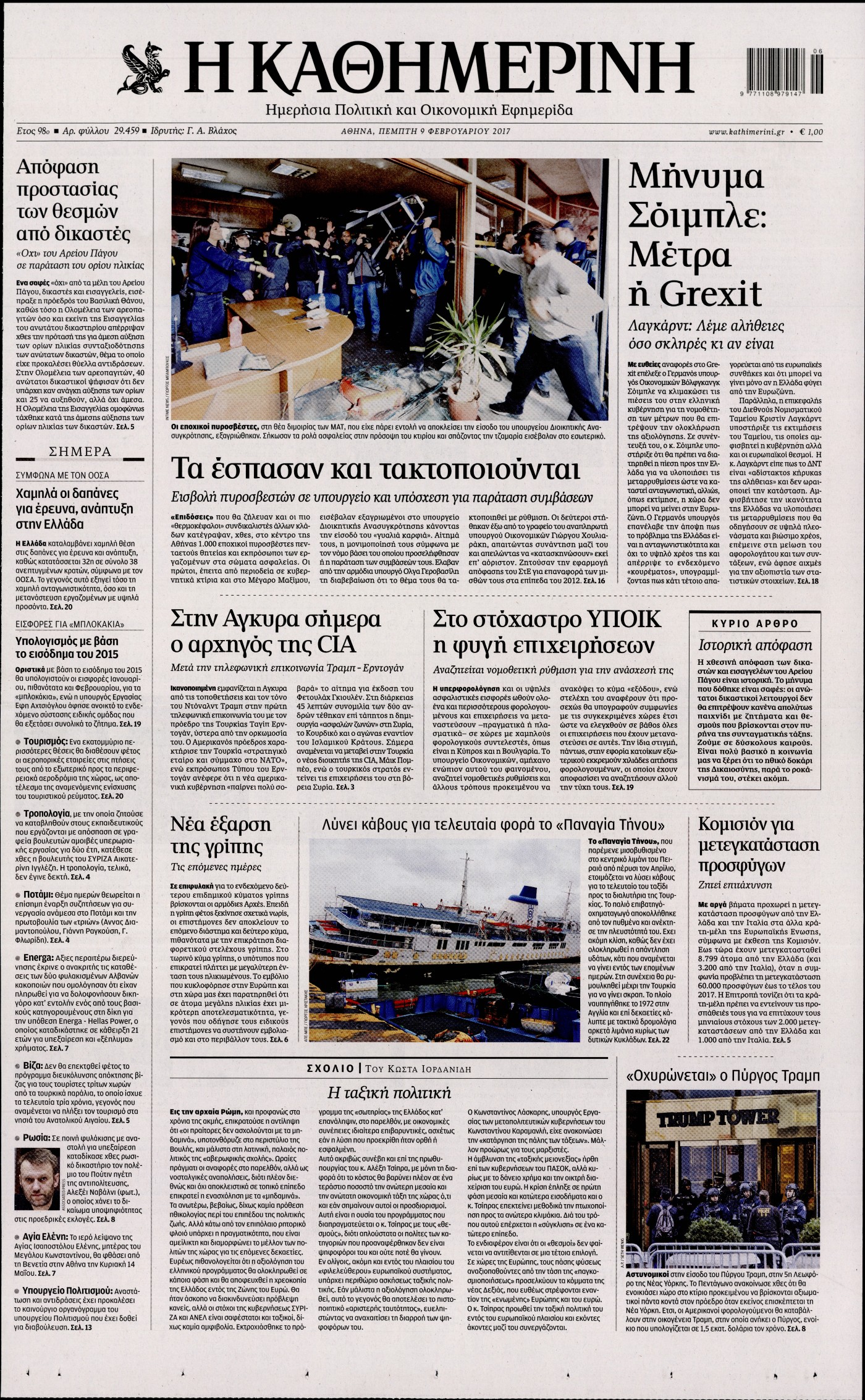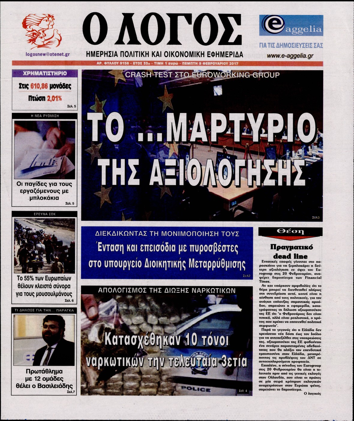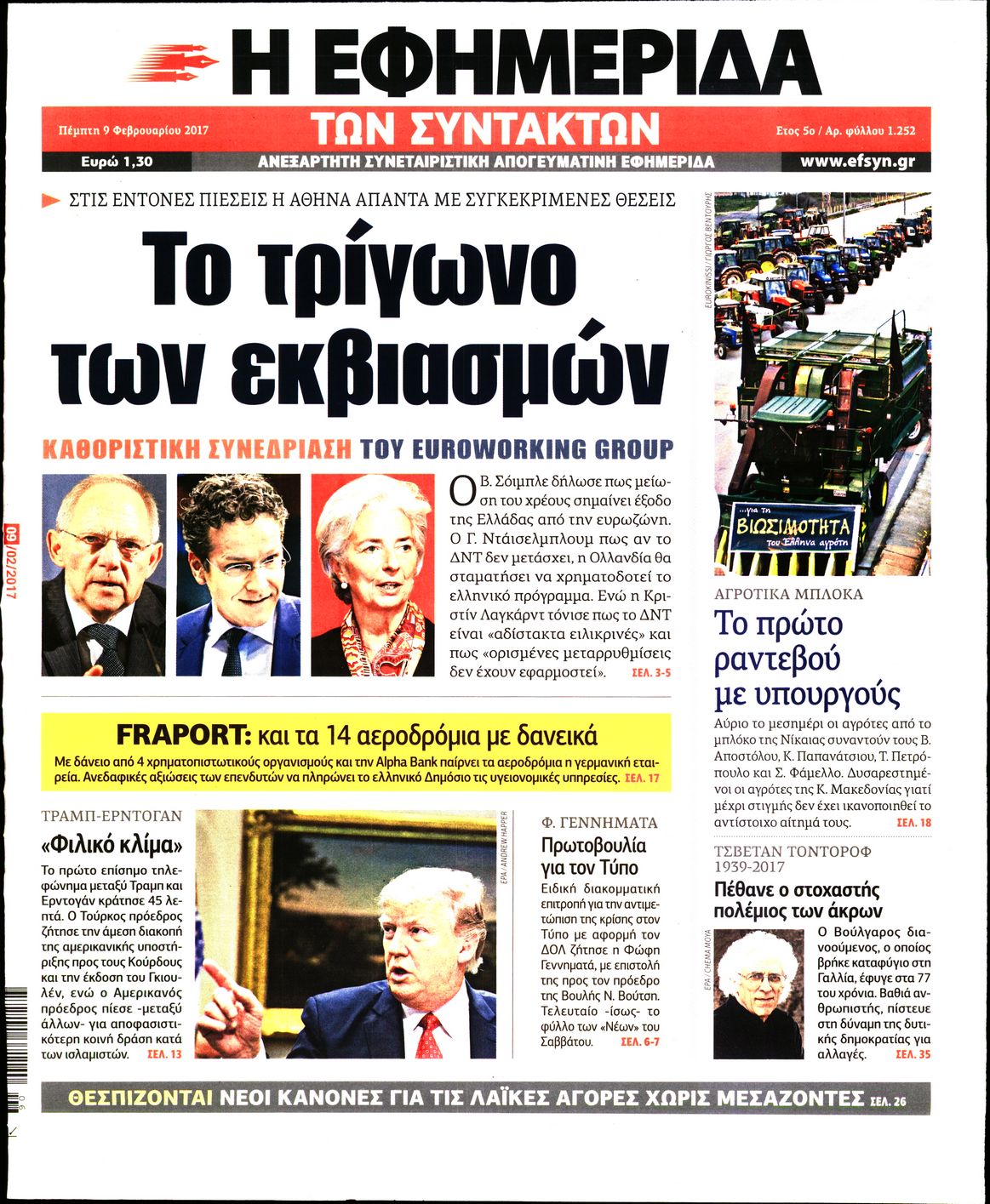 Οι πολιτικές εφημερίδες 9/2/2017 Enikos Newsroom 02:00, Πέμπτη 09 Φεβρουαρίου 2017 Media Διαβάστε τα σημερινά πρωτοσέλιδα των πολιτικών εφημερίδων: ΠΟΛΙΤΙΚΕΣ ΕΦΗΜΕΡΙΔΕΣ ΠΡΩΤΟΣΕΛΙΔΑ Μοιράσου το: σχολίασε κι εσύ (0 σχόλια) Ακολουθήστε το enikos.gr στο Google News και μάθετε πρώτοι όλες τις ειδήσεις Δείτε όλες τις τελευταίες ειδήσεις από την Ελλάδα και τον Κόσμο στο enikos.gr Ειδήσεις Ροή Ειδήσεων 4 ώρες πριν Εκτός ευρωομάδας ΣΥΡΙΖΑ ο Νίκος Παππάς μετά την επίθεση στον δημοσιογράφο Νίκο Γιαννόπουλο – Η μήνυση και οι νέες δηλώσεις 4 ώρες πριν «Αγριεύουν» οι αγρότες: «Δεν συντρέχει λόγος συνάντησης με τον πρωθυπουργό» – Ώρα αποφάσεων στη σύσκεψη της Πέμπτης 4 ώρες πριν Κυψέλη: Χωρίς την οικογένειά της δίπλα της απολογήθηκε η 16χρονη – «Της είχε επιτεθεί κάποιος για να την βιάσει, φοβήθηκε και κυκλοφορούσε με μαχαίρι» 4 ώρες πριν Politico: Το πρόβλημα της Ευρώπης δεν είναι το Βέλγιο αλλά ο Ντόναλντ Τραμπ 6 ώρες πριν Αλεξανδρούπολη: Πολυοργανική ανεπάρκεια λόγω υποσιτισμού η αιτία θανάτου του 3χρονου αγοριού 4 ώρες πριν Μυστήριο με τεράστιες κυκλικές πέτρες 200 κιλών – Ανακαλύφθηκαν τυχαία κατά τη διάρκεια οδικών έργων και κανείς δεν ξέρει από πού προέρχονται 5 ώρες πριν Ύπνος: Ειδικός εξηγεί τον πραγματικό λόγο που ξυπνάτε στις 4 τα ξημερώματα – Ο ρόλος των ορμονών και του κιρκάδιου ρυθμού 6 ώρες πριν Αριθμολογία: Οι άνθρωποι που έχουν γεννηθεί αυτές τις 4 ημερομηνίες, είναι τρυφεροί και αγαπούν ανιδιοτελώς 18 ώρες πριν 20 χρόνια τα Χριστούγεννα ξεκινούν στα Public με μεγάλη ποικιλία σε δώρα! 21 λεπτά πριν Σουδάν: Επιδρομή drone σε χωριό του Νότιου Κορντοφάν – Οκτώ νεκροί 37 λεπτά πριν Αλ Τσαντίρι Νιουζ: Η κόρη της Πάολα στο κοινό – Η ατάκα Λαζόπουλου που την έκανε να «κοκκινήσει» 51 λεπτά πριν Ρωσία: Ουκρανικές δυνάμεις έπληξαν πλοίο στο λιμάνι του Ροστόφ – Αναφορές για θύματα 1 ώρα πριν Βρυξέλλες: Νυχτερινό… μπλόκο αγροτών μπροστά από το κτίριο της Ευρωπαϊκής Επιτροπής – Πάνω από 100 τρακτέρ απέκλεισαν την λεωφόρο 1 ώρα πριν Euroleague: Απρόσμενη ήττα για την Μονακό του Βασίλη Σπανούλη – Η βαθμολογία μετά το τέλος της 16ης αγωνιστικής ENIKOS NETWORK Αϋπνία: Το κόλπο που θα σας βοηθήσει να κοιμηθείτε απόψε – Είναι απλό και έχει αποτέλεσμα 2,6 εκατομμύρια πολίτες έχουν ήδη εμβολιαστεί κατά της γρίπης ΕΛΣΤΑΤ: Τι δείχνουν τα νέα στοιχεία για τις ηλεκτρονικές παραγγελίες των επιχειρήσεων ΚΕΠΕ: Οι 3 διακριτές συμβολές των ΜμΕ και της μεταποίησης στην ελληνική οικονομία Χαρτογραφώντας το «σημείο χωρίς επιστροφή»: Για πρώτη φορά αποκαλύπτεται με λεπτομέρεια το ακανθώδες όριο της ατμόσφαιρας τ... Η Google καταργεί τη λειτουργία «dark web report» – Πώς θα μπορούν οι χρήστες να διαγράφουν τα δεδομένα τους περισσότερα 02:30 , Πέμπτη 18 Δεκεμβρίου 2025 Αλ Τσαντίρι Νιουζ: Η κόρη της Πάολα στο κοινό – Η ατάκα Λαζόπουλου που την έκανε να «κοκκινήσει» Γιορτινή διάθεση και ευχάριστες στιγμές γέμισε η αποψινή, τελευταία για το 2025, εκπομπή του «... 22:24 , Τετάρτη 17 Δεκεμβρίου 2025 Το Σπίτι Δίπλα Στο Ποτάμι: Σε κίνδυνο η υγεία του Απόστολου – Τι θα δούμε απόψε “Το Σπίτι Δίπλα στο Ποτάμι” ξετυλίγει το νήμα της ζωής των πέντε αδελφών με καταισ... 21:14 , Τετάρτη 17 Δεκεμβρίου 2025 Παιχνίδια Εκδίκησης: Θα καταφέρει ο Χρήστος να κλονίσει την εμπιστοσύνη της Μάγιας απέναντι στον Άγη; Τα «Παιχνίδια Εκδίκησης» έρχονται απόψε στις 22:30, στον Αντ1, με το τελευταίο επεισόδιο της χ... 20:57 , Τετάρτη 17 Δεκεμβρίου 2025 Άγιος Έρωτας: Η Χλόη καταθέτει εναντίον του πατέ