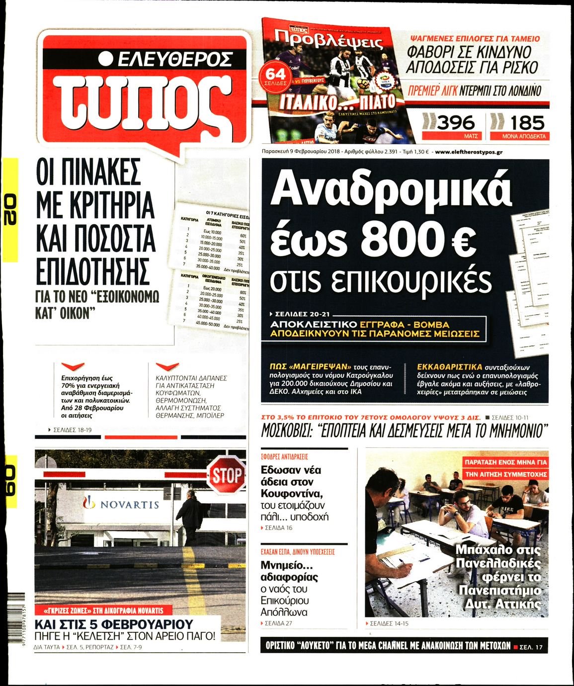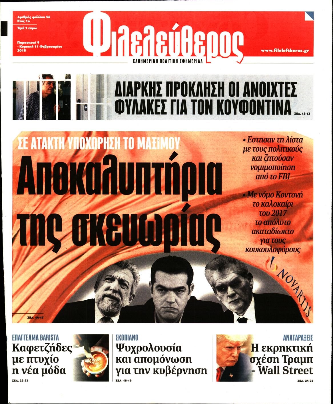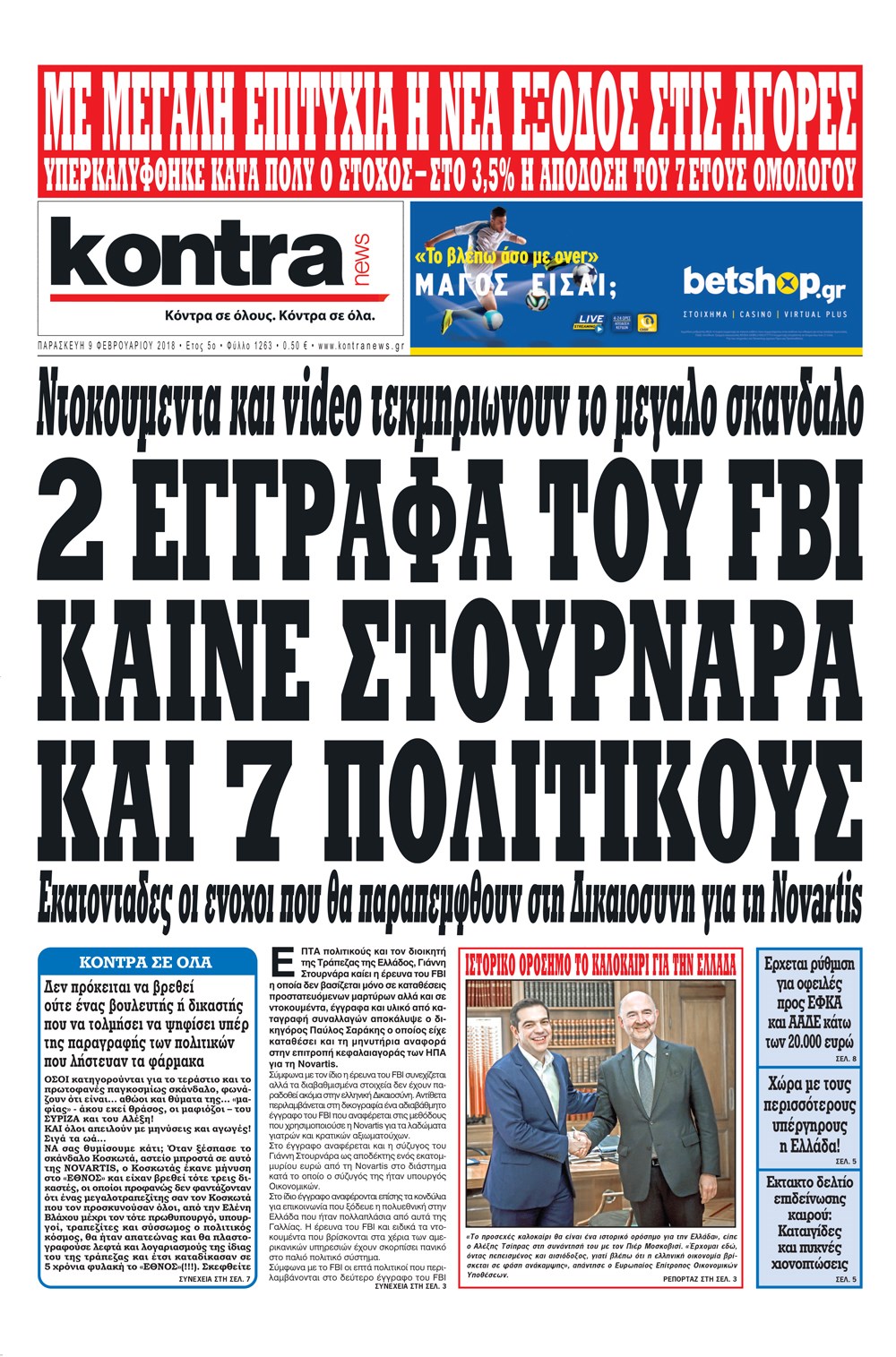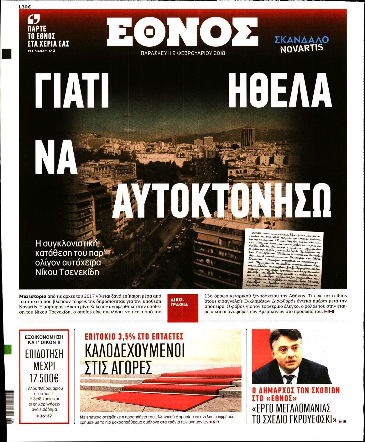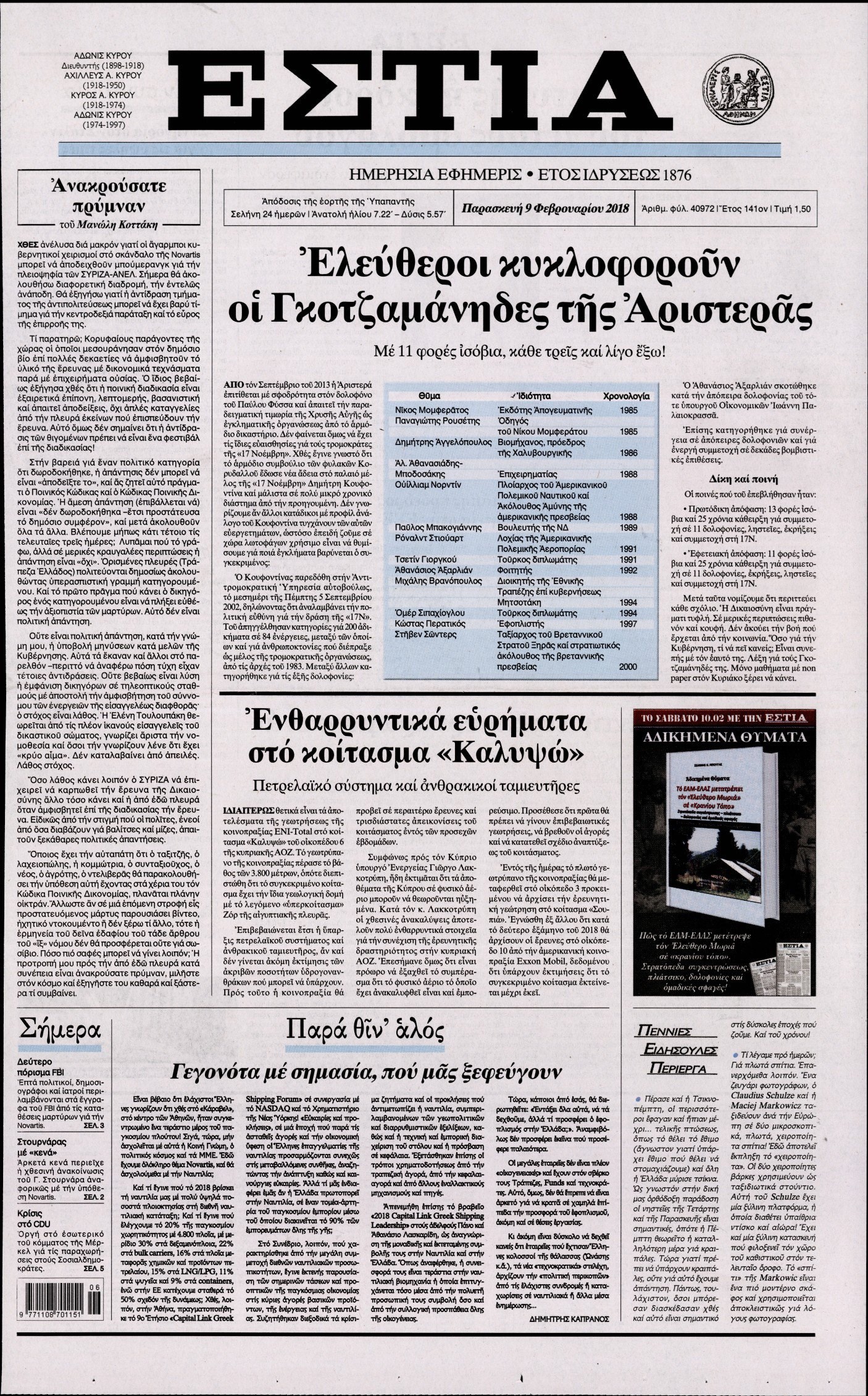 Οι πολιτικές εφημερίδες 9/2/2018 Enikos Newsroom 07:37, Παρασκευή 09 Φεβρουαρίου 2018 Media Διαβάστε τα σημερινά πρωτοσέλιδα των πολιτικών εφημερίδων: ΠΟΛΙΤΙΚΕΣ ΕΦΗΜΕΡΙΔΕΣ ΠΡΩΤΟΣΕΛΙΔΑ Μοιράσου το: σχολίασε κι εσύ (0 σχόλια) Ακολουθήστε το enikos.gr στο Google News και μάθετε πρώτοι όλες τις ειδήσεις Δείτε όλες τις τελευταίες ειδήσεις από την Ελλάδα και τον Κόσμο στο enikos.gr Ειδήσεις Ροή Ειδήσεων 1 ώρα πριν Υπόθεση Έπσταϊν: Το Υπουργείο Δικαιοσύνης δημοσιοποίησε μια σειρά από εξαιρετικά επεξεργασμένα αρχεία – «Λείπουν τα πιο σημαντικά έγγραφα», λένε οι Δημοκρατικοί 32 λεπτά πριν Ο «χάρτης» με τις αυξήσεις και τις φοροελαφρύνσεις του 2026 – Ποιοι και πόσα κερδίζουν 11 ώρες πριν Χριστούγεννα στα μπλόκα: Επιμένουν στις κινητοποιήσεις τους οι αγρότες – Ανοίγουν τα διόδια το Σαββατοκύριακο 2 ώρες πριν ΟΝΕΧ – MEGATUGS: Ξεκίνησε η ναυπήγηση ρυμουλκών στην Ελλάδα – Προθάλαμος πολεμικών πλοίων – Δείτε φωτογραφίες και βίντεο 1 ώρα πριν Καιρός: Αλλαγή σκηνικού σήμερα με βροχές και πτώση της θερμοκρασίας – Οι προβλέψεις των μετεωρολόγων για τα Χριστούγεννα 3 ώρες πριν Αυγά: Πόσα μπορείτε να τρώτε την ημέρα με ασφάλεια για μέγιστη πρόσληψη πρωτεΐνης 4 ώρες πριν Τα ζώδια σήμερα, Σάββατο 20 Δεκεμβρίου: Παρθένοι, το σύμπαν σας δίνει το κλειδί 3 ώρες πριν Οπτική ψευδαίσθηση: Μόνο αν είσαι ο Σέρλοκ Χολμς θα βρεις τον αριθμό «87» σε 7 δευτερόλεπτα 1 ώρα πριν Αρχαιολόγοι ανακάλυψαν σε χωράφι απεικόνιση 600 ετών ενός Αγίου – Τα στοιχεία που δείχνουν ότι μαρτύρησε 4 λεπτά πριν Παιδική υπέρταση: Μια σιωπηλή απειλή που αυξάνεται διεθνώς 4 λεπτά πριν Αγχώνεται για το χριστουγεννιάτικο δώρο που πήρε στην πλούσια σύντροφό του – «Φοβάμαι πως θα το βρει φθηνιάρικο, φοράει βραχιόλια Cartier» 11 λεπτά πριν Enerwave: Το νέο «ρεύμα» στη λιανική ενέργειας που αλλάζει την εμπειρία του καταναλωτή 16 λεπτά πριν Γιώργος Μαζωνάκης: Τη Δευτέρα η μήνυση του τραγουδιστή κατά του 22χρονου 25 λεπτά πριν Αμαλία Κωστοπούλου: Το μήνυμα για το χειρουργείο στο γόνατο – «Αυτός ο τραυματισμός μού στέρησε πολλά…» ENIKOS NETWORK Πόσα κιλά παίρνουμε πραγματικά τα Χριστούγεννα, σύμφωνα με την επιστήμη – Πώς να το αποτρέψουμε; Το δημοφιλές ρόφημα που αυξάνει την πίεση πιο γρήγορα και από το αλάτι Mega χριστουγεννιάτικη φορολοταρία: «Κλείδωσε» η ημερομηνία για την κλήρωση – Ερωτήσεις και απαντήσεις Αναστολή μέτρων αναγκαστικής εκτέλεσης για κτηνοτρόφους που πλήττονται από την ευλογιά των αιγοπροβάτων Χαρτογραφώντας το «σημείο χωρίς επιστροφή»: Για πρώτη φορά αποκαλύπτεται με λεπτομέρεια το ακανθώδες όριο της ατμόσφαιρας τ... Η Google καταργεί τη λειτουργία «dark web report» – Πώς θα μπορούν οι χρήστες να διαγράφουν τα δεδομένα τους περισσότερα 08:14 , Σάββατο 20 Δεκεμβρίου 2025 Τρομεροί γονείς: Η Μαρία Καβογιάννη εισβάλλει στο σπίτι της οικογένειας Στεφανίδη Όσα θα δούμε στο νέο διπλό επεισόδιο της σειράς «Τρομεροί γονείς», σήμερα Σάββατο 20 Δεκεμβρίο... 05:48 , Σάββατο 20 Δεκεμβρίου 2025 Οι οικονομικές εφημερίδες 20/12/2025 Διαβάστε τα πρωτοσέλιδα από τις οικονομικές εφημερίδες, σήμερα 20/12/2025. 05:43 , Σάββατο 20 Δεκεμβρίου 2025 Οι αθλητικές εφημερίδες 20/12/2025 Διαβάστε τα πρωτοσέλιδα από τις αθλητικές εφημερίδες, σήμερα 20/12/2025. 05:38 , Σάββατο 20 Δεκεμβρίου 2025 Οι πολιτικές εφημερίδες 20/12/2025 Διαβάστε τα πρωτοσέλιδα από τις πολιτικές εφημερίδες, σήμερα 20/12/2025. ΤΕΛΕΥΤΑΙΕΣ ΕΙΔΗΣΕΙΣ 4 λεπτά πριν Παιδική υπέρταση: Μια σιωπηλή απειλή που αυξάνεται... 4 λεπτά πριν Αγχώνεται για το χριστ