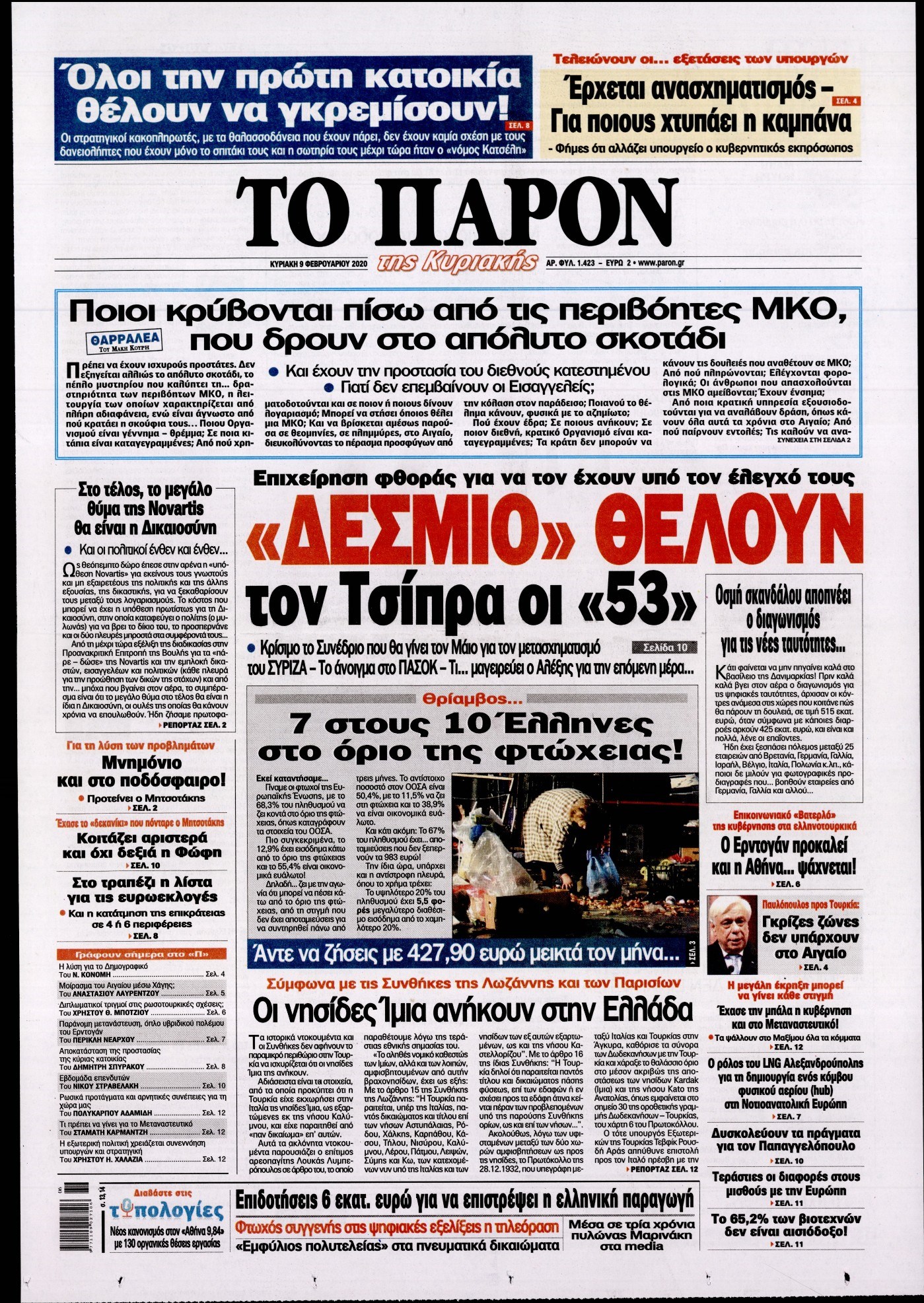 Οι πολιτικές εφημερίδες 9/2/2020 Διονύσης Νίκκας 07:09, Κυριακή 09 Φεβρουαρίου 2020 Media Διαβάστε τα πρωτοσέλιδα των πολιτικών εφημερίδων… ΠΟΛΙΤΙΚΕΣ ΕΦΗΜΕΡΙΔΕΣ ΠΡΩΤΟΣΕΛΙΔΑ Μοιράσου το: σχολίασε κι εσύ (0 σχόλια) Ακολουθήστε το enikos.gr στο Google News και μάθετε πρώτοι όλες τις ειδήσεις Δείτε όλες τις τελευταίες ειδήσεις από την Ελλάδα και τον Κόσμο στο enikos.gr Ειδήσεις Ροή Ειδήσεων 2 ώρες πριν Γιορτές με μπλόκα για τους αγρότες: Ανοίγουν διόδια και μοιράζουν προϊόντα στους ταξιδιώτες 7 λεπτά πριν Τσιάρας για αγρότες: Ικανοποιείται το αίτημα για αφορολόγητο πετρέλαιο στη μάνικα, πρόθεσή μας να μειωθεί ακόμη περισσότερο η τιμή στο ρεύμα 22 λεπτά πριν Αρχεία Έπσταϊν: Οι συγκλονιστικές φωτογραφίες – Ο Μάικλ Τζάκσον, ο Μικ Τζάγκερ και ο Κέβιν Σπέισι ανάμεσα στους διάσημους που απεικονίζονται 2 ώρες πριν Νέες ταυτότητες: Μεγάλη αναμονή για ραντεβού στην Αττική – Τέλος τα ταξίδια εκτός Ελλάδος από τον Αύγουστο για όσους δεν έχουν αλλάξει 54 λεπτά πριν Ινδία: Επτά ελέφαντες σκοτώθηκαν κατά τη σύγκρουση επιβατικού τρένου με κοπάδι 3 ώρες πριν Μία νέα «χρυσή» περίοδος αρχίζει για 3 ζώδια από σήμερα – «Μία αναπάντεχη ευκαιρία οδηγεί στην επιτυχία» 5 ώρες πριν Αρχαιολόγοι ανακάλυψαν σε χωράφι απεικόνιση 600 ετών ενός Αγίου – Τα στοιχεία που δείχνουν ότι μαρτύρησε 4 ώρες πριν Αγχώνεται για το χριστουγεννιάτικο δώρο που πήρε στην πλούσια σύντροφό του – «Φοβάμαι πως θα το βρει φθηνιάρικο, φοράει βραχιόλια Cartier» 51 λεπτά πριν Διαιτολόγος αποκαλύπτει 9 πρωινές συνήθειες που «λιώνουν» το κοιλιακό λίπος – «Υποστηρίζουν την υγιεινή απώλεια βάρους» 7 λεπτά πριν Τσιάρας για αγρότες: Ικανοποιείται το αίτημα για αφορολόγητο πετρέλαιο στη μάνικα, πρόθεσή μας να μειωθεί ακόμη περισσότερο η τιμή στο ρεύμα 14 λεπτά πριν Η Ζιζέλ Μπούντχεν παντρεύτηκε τον δάσκαλο ζίου-ζίτσου, Χοακίμ Βαλέντε 22 λεπτά πριν Αρχεία Έπσταϊν: Οι συγκλονιστικές φωτογραφίες – Ο Μάικλ Τζάκσον, ο Μικ Τζάγκερ και ο Κέβιν Σπέισι ανάμεσα στους διάσημους που απεικονίζονται 30 λεπτά πριν Χρήστος Μάντακας: «Θα μπορούσα να είχα φύγει από τη ζωή, δεν μπορούσα να περπατήσω…» 38 λεπτά πριν Εντυπωσιακό βίντεο από «τσουνάμι» πάγου στη Σιβηρία – Πώς προκαλείται το σπάνιο φαινόμενο ENIKOS NETWORK Είστε μόνιμα απρόσεκτοι; 3 σημάδια που δείχνουν ότι μπορεί να είναι σύμπτωμα πάθησης Πόσα κιλά παίρνουμε πραγματικά τα Χριστούγεννα, σύμφωνα με την επιστήμη – Πώς να το αποτρέψουμε; Χρήστος Δήμας: Στα 2,5 εκατ. ευρώ την ημέρα το κόστος από το άνοιγμα των διοδίων από τους αγρότες – Θα αξιώσουν αποζημίωση ... Χριστούγεννα και Πρωτοχρονιά: Πώς αμείβονται όσοι εργαστούν Χαρτογραφώντας το «σημείο χωρίς επιστροφή»: Για πρώτη φορά αποκαλύπτεται με λεπτομέρεια το ακανθώδες όριο της ατμόσφαιρας τ... Η Google καταργεί τη λειτουργία «dark web report» – Πώς θα μπορούν οι χρήστες να διαγράφουν τα δεδομένα τους περισσότερα 11:41 , Σάββατο 20 Δεκεμβρίου 2025 «Η αγάπη δεν χάνεται ποτέ»: Η μικρού μήκους ταινία κινουμένων σχεδίων που θέτει ερωτήματα για τη ζωή και τον θάνατο Ο θάνατος είναι ένα από τα πιο σκληρά θέματα που καλείται να διαχειριστεί κάποιος στη διάρκεια... 09:30 , Σάββατο 20 Δεκεμβρίου 2025 «Porto Leone: Στη γειτονιά με τα κόκκινα φανάρια» – Ο Χρόνης αποκαλύπτει στην Αλεξάνδρα το μυστικό για το παιδί της Λένας Η μεγάλη δραματική σειρά του Apha «Porto Leone: Στη γειτονιά με τα κόκκινα φανάρια» μας μεταφέ... 08:14 , Σάββατο 20 Δεκεμβρίου 2025 Τρομεροί γονείς: Η Μαρία Καβογιάννη εισβ