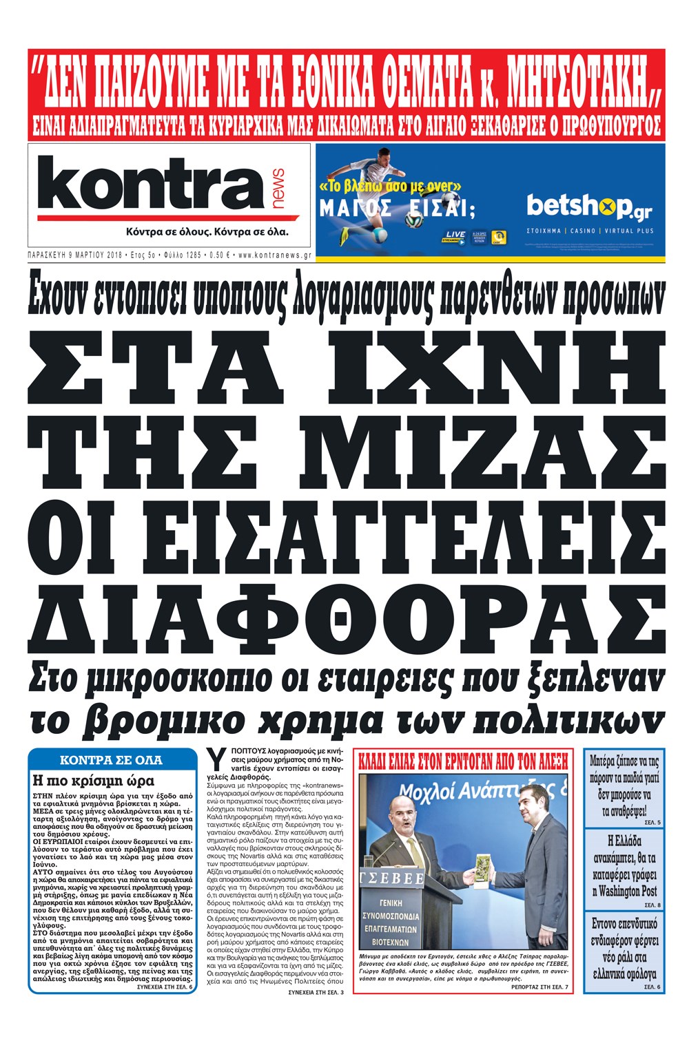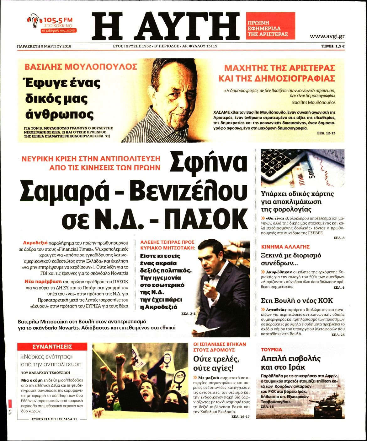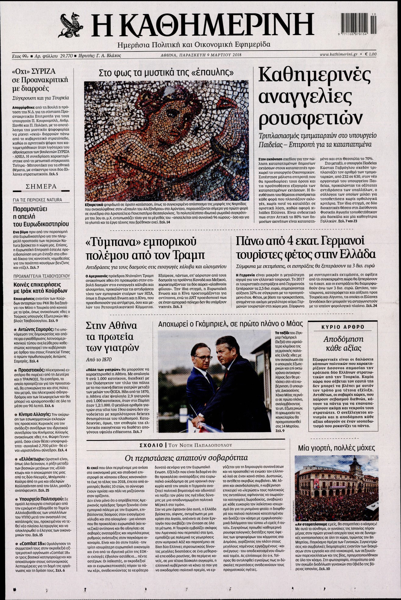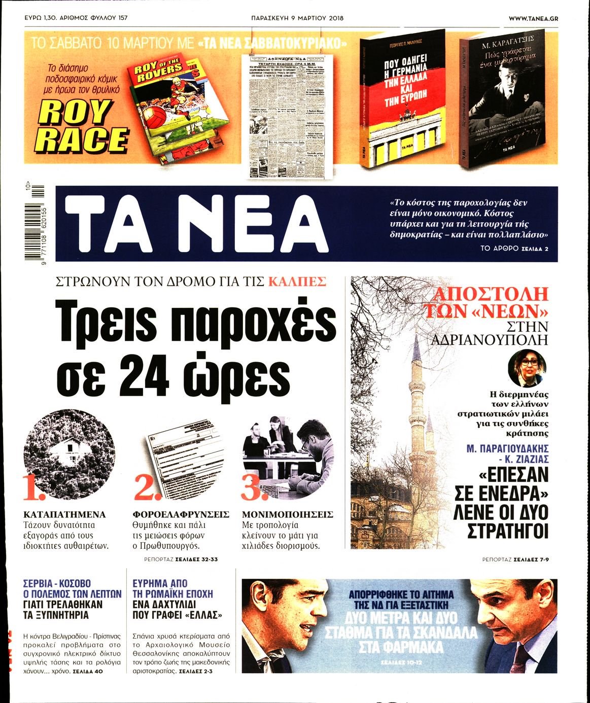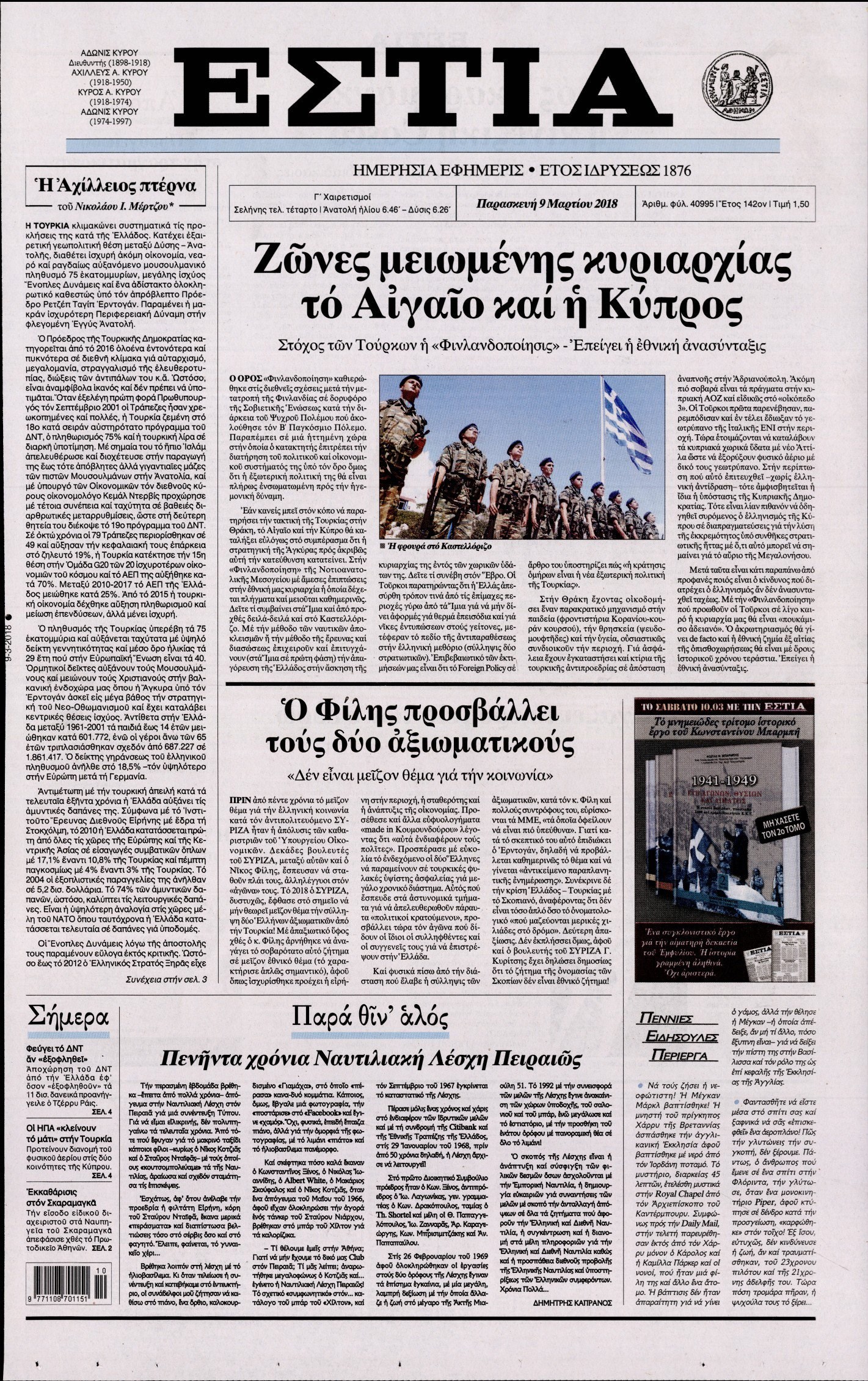 Οι πολιτικές εφημερίδες 9/3/2018 Enikos Newsroom 07:41, Παρασκευή 09 Μαρτίου 2018 Media Διαβάστε τα σημερινά πρωτοσέλιδα των πολιτικών εφημερίδων: ΠΟΛΙΤΙΚΕΣ ΕΦΗΜΕΡΙΔΕΣ ΠΡΩΤΟΣΕΛΙΔΑ Μοιράσου το: σχολίασε κι εσύ (0 σχόλια) Ακολουθήστε το enikos.gr στο Google News και μάθετε πρώτοι όλες τις ειδήσεις Δείτε όλες τις τελευταίες ειδήσεις από την Ελλάδα και τον Κόσμο στο enikos.gr Ειδήσεις Ροή Ειδήσεων 7 ώρες πριν Χριστούγεννα στα μπλόκα: Επιμένουν στις κινητοποιήσεις τους οι αγρότες – Ανοίγουν τα διόδια το Σαββατοκύριακο 7 ώρες πριν Ουκρανία: Η άνευ προηγουμένου επίθεση σε ρωσικό τάνκερ στη Μεσόγειο και το μήνυμα προς στον Πούτιν – Το «μακρύ χέρι» του Κιέβου 6 ώρες πριν Πούτιν: Τα μηνύματα σε Ευρώπη και ΝΑΤΟ από το μαραθώνιο «σόου» του – Η απαίτηση για «σεβασμό» και η ειρήνη «με τους όρους» της Μόσχας 7 ώρες πριν Τραμπ: Δεν αποκλείει την πιθανότητα ενός πολέμου στη Βενεζουέλα – «Ο Μαδούρο ξέρει καλύτερα από τον καθένα τι ακριβώς θέλω» 8 ώρες πριν Συνεχίζει να προκαλεί ο Μίτσκοσκι: «Για μένα το όνομα Μακεδονία είναι ιερό» 6 ώρες πριν Ανακαλύφθηκαν αρχαία χρυσά νομίσματα 2.200 ετών που απεικονίζουν τον θεό Απόλλωνα – Η άγνωστη σύνδεση με τον Φίλιππο Β΄ της Μακεδονίας 7 ώρες πριν Ύπνος: Μια κρυφή κατάσταση του εγκεφάλου πριν από τον ύπνο μπορεί να είναι το “κλειδί” για υψηλή ευφυΐα και δημιουργικότητα 8 ώρες πριν Αριθμολογία: Οι άνθρωποι που έχουν γεννηθεί αυτές τις 4 ημερομηνίες, συχνά παρεξηγούνται – «Η καλοσύνη τους κρύβει τεράστια δύναμη» 9 ώρες πριν Ξεχάστε το καθάρισμα το Σαββατοκύριακο: Ο «κανόνας των 20 λεπτών» που θα σας λύσει τα χέρια 8 λεπτά πριν ΟΗΕ: Το Συμβούλιο Ασφαλείας παρατείνει για έναν χρόνο την εντολή της ειρηνευτικής δύναμης στο Κονγκό 24 λεπτά πριν Μοχάμεντ Σαλάχ: Ζήτησε «συγγνώμη» από τους συμπαίκτες του στη Λίβερπουλ για το ξέσπασμά του 39 λεπτά πριν Μάρκο Ρούμπιο: Ανθρωπιστική κατάπαυση του πυρός στο Σουδάν ζητά ο Αμερικανός υπουργός Εξωτερικών 54 λεπτά πριν Αγγελική Νικολούλη: Τα συλλυπητήρια για την απώλεια της Ειρήνης Μαρινάκη 1 ώρα πριν Βολιβία: Μαζική διαδηλώσεις εναντίον της κατάργησης των επιδοτήσεων των τιμών των καυσίμων ENIKOS NETWORK Το ΕΚΑΒ τιμήθηκε από την Ακαδημία Αθηνών για τα 40 χρόνια προσφοράς του Έχετε πραγματικά μεγάλη καρδιά; 10 χαρακτηριστικά όσων έχουν καλοσύνη Αναστολή μέτρων αναγκαστικής εκτέλεσης για κτηνοτρόφους που πλήττονται από την ευλογιά των αιγοπροβάτων Πλήρης επάρκεια προϊόντων στις λαϊκές της Αττικής, παρά τις αγροτικές κινητοποιήσεις – Τι απαντούν οι πωλητές Χαρτογραφώντας το «σημείο χωρίς επιστροφή»: Για πρώτη φορά αποκαλύπτεται με λεπτομέρεια το ακανθώδες όριο της ατμόσφαιρας τ... Η Google καταργεί τη λειτουργία «dark web report» – Πώς θα μπορούν οι χρήστες να διαγράφουν τα δεδομένα τους περισσότερα 04:20 , Σάββατο 20 Δεκεμβρίου 2025 Αγγελική Νικολούλη: Τα συλλυπητήρια για την απώλεια της Ειρήνης Μαρινάκη Τα συλληπητήρια στον πρόεδρο του Mega, τον Βαγγέλη Μαρινάκη, για την απώλεια της μητέρας του Ε... 02:50 , Σάββατο 20 Δεκεμβρίου 2025 GNTM: Η Ξένια Τσίρκοβα αναδείχθηκε μεγάλη νικήτρια και πήρε τις 50.000 ευρώ – Ποιος βρέθηκε σε απόσταση αναπνοής; Με φαντασμαγορικό τρόπο ολοκληρώθηκε το βράδυ της Παρασκευής ο μεγάλος τελικός του GNTM, μέσα ... 22:42 , Παρασκευή 19 Δεκεμβρίου 2025 Γιώργος Γιαννόπουλος για “Το σόι σου”: “Είναι ευτυχία και ευλογία αυτή η σειρά” «Είναι ευτυχία και ευλογία η συγκυρία αυτής της σειράς», θα πει ο Γιώργος Γιαννόπουλος -ο αγαπ... 20:37