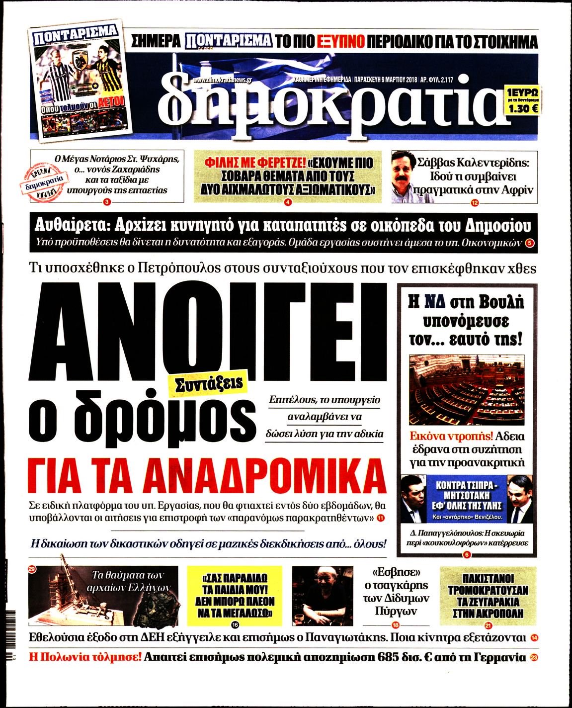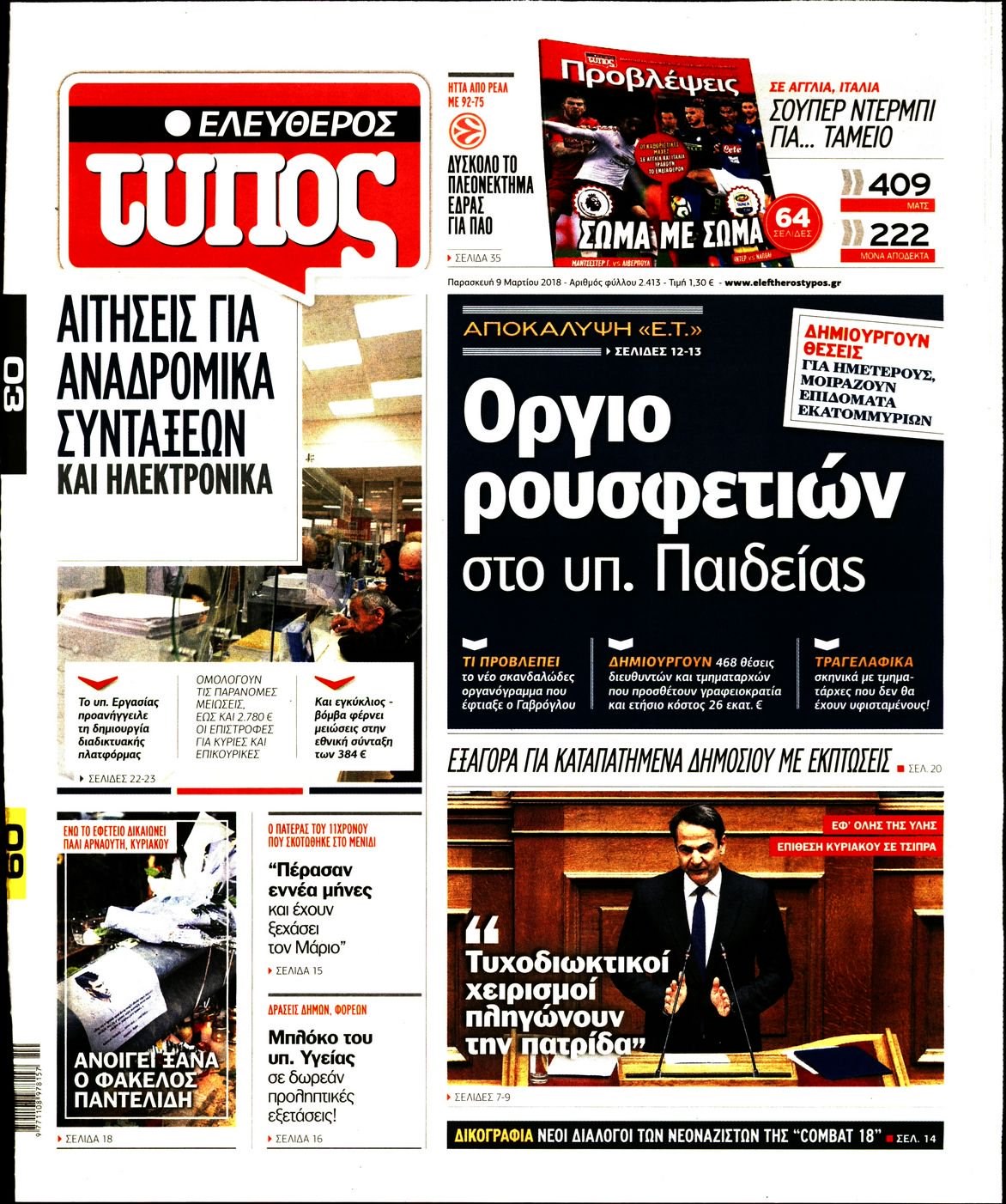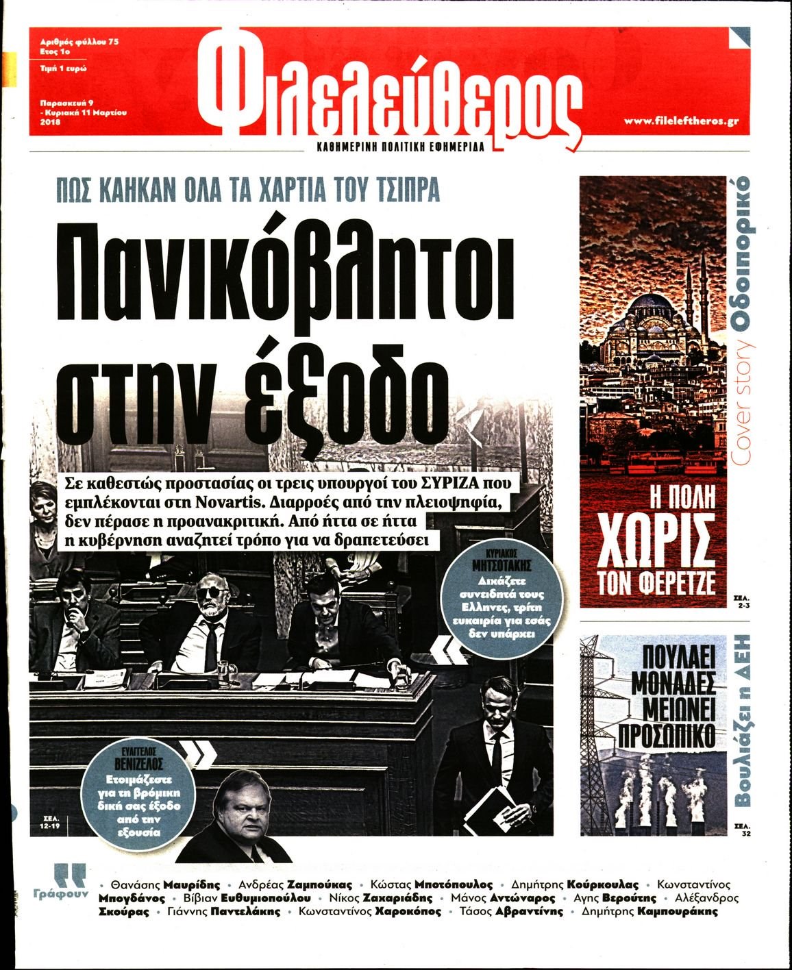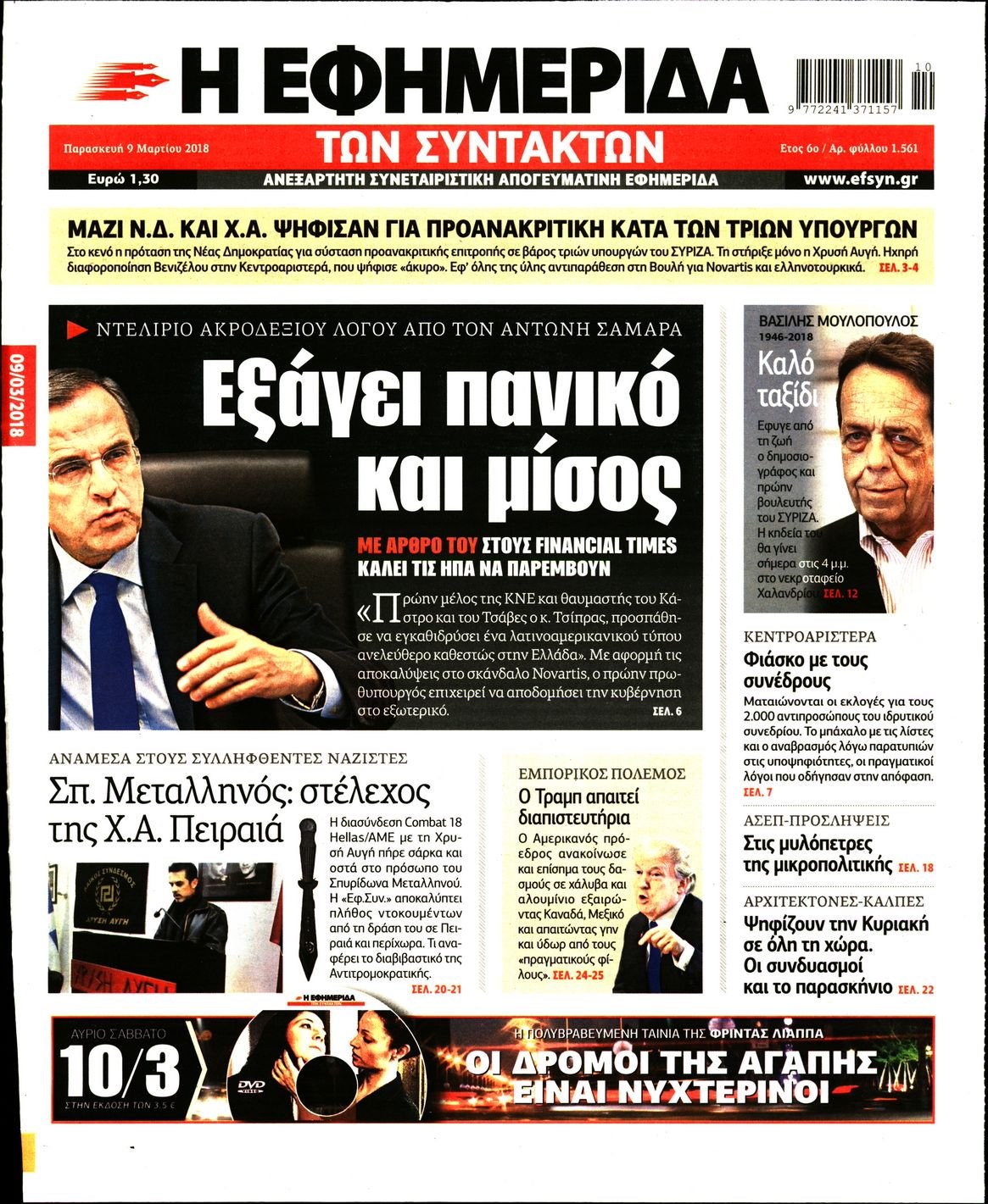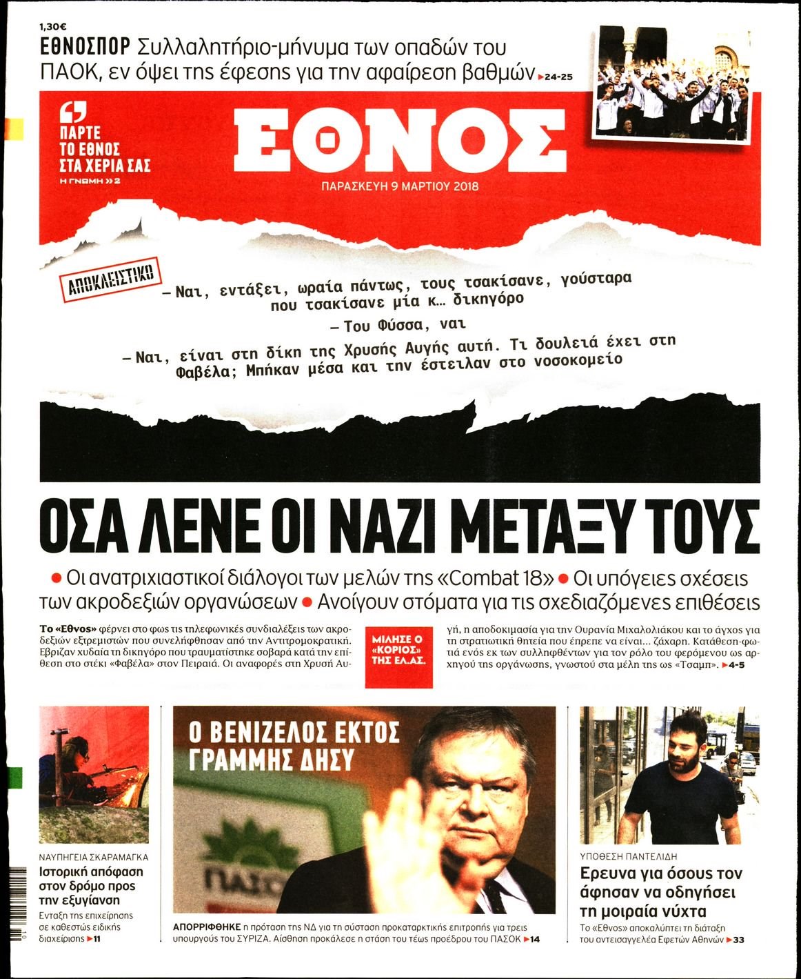 Οι πολιτικές εφημερίδες 9/3/2018 Enikos Newsroom 07:41, Παρασκευή 09 Μαρτίου 2018 Media Διαβάστε τα σημερινά πρωτοσέλιδα των πολιτικών εφημερίδων: ΠΟΛΙΤΙΚΕΣ ΕΦΗΜΕΡΙΔΕΣ ΠΡΩΤΟΣΕΛΙΔΑ Μοιράσου το: σχολίασε κι εσύ (0 σχόλια) Ακολουθήστε το enikos.gr στο Google News και μάθετε πρώτοι όλες τις ειδήσεις Δείτε όλες τις τελευταίες ειδήσεις από την Ελλάδα και τον Κόσμο στο enikos.gr Ειδήσεις Ροή Ειδήσεων 7 ώρες πριν Χριστούγεννα στα μπλόκα: Επιμένουν στις κινητοποιήσεις τους οι αγρότες – Ανοίγουν τα διόδια το Σαββατοκύριακο 7 ώρες πριν Ουκρανία: Η άνευ προηγουμένου επίθεση σε ρωσικό τάνκερ στη Μεσόγειο και το μήνυμα προς στον Πούτιν – Το «μακρύ χέρι» του Κιέβου 6 ώρες πριν Πούτιν: Τα μηνύματα σε Ευρώπη και ΝΑΤΟ από το μαραθώνιο «σόου» του – Η απαίτηση για «σεβασμό» και η ειρήνη «με τους όρους» της Μόσχας 7 ώρες πριν Τραμπ: Δεν αποκλείει την πιθανότητα ενός πολέμου στη Βενεζουέλα – «Ο Μαδούρο ξέρει καλύτερα από τον καθένα τι ακριβώς θέλω» 8 ώρες πριν Συνεχίζει να προκαλεί ο Μίτσκοσκι: «Για μένα το όνομα Μακεδονία είναι ιερό» 6 ώρες πριν Ανακαλύφθηκαν αρχαία χρυσά νομίσματα 2.200 ετών που απεικονίζουν τον θεό Απόλλωνα – Η άγνωστη σύνδεση με τον Φίλιππο Β΄ της Μακεδονίας 7 ώρες πριν Ύπνος: Μια κρυφή κατάσταση του εγκεφάλου πριν από τον ύπνο μπορεί να είναι το “κλειδί” για υψηλή ευφυΐα και δημιουργικότητα 8 ώρες πριν Αριθμολογία: Οι άνθρωποι που έχουν γεννηθεί αυτές τις 4 ημερομηνίες, συχνά παρεξηγούνται – «Η καλοσύνη τους κρύβει τεράστια δύναμη» 9 ώρες πριν Ξεχάστε το καθάρισμα το Σαββατοκύριακο: Ο «κανόνας των 20 λεπτών» που θα σας λύσει τα χέρια 8 λεπτά πριν ΟΗΕ: Το Συμβούλιο Ασφαλείας παρατείνει για έναν χρόνο την εντολή της ειρηνευτικής δύναμης στο Κονγκό 24 λεπτά πριν Μοχάμεντ Σαλάχ: Ζήτησε «συγγνώμη» από τους συμπαίκτες του στη Λίβερπουλ για το ξέσπασμά του 39 λεπτά πριν Μάρκο Ρούμπιο: Ανθρωπιστική κατάπαυση του πυρός στο Σουδάν ζητά ο Αμερικανός υπουργός Εξωτερικών 54 λεπτά πριν Αγγελική Νικολούλη: Τα συλλυπητήρια για την απώλεια της Ειρήνης Μαρινάκη 1 ώρα πριν Βολιβία: Μαζική διαδηλώσεις εναντίον της κατάργησης των επιδοτήσεων των τιμών των καυσίμων ENIKOS NETWORK Το ΕΚΑΒ τιμήθηκε από την Ακαδημία Αθηνών για τα 40 χρόνια προσφοράς του Έχετε πραγματικά μεγάλη καρδιά; 10 χαρακτηριστικά όσων έχουν καλοσύνη Αναστολή μέτρων αναγκαστικής εκτέλεσης για κτηνοτρόφους που πλήττονται από την ευλογιά των αιγοπροβάτων Πλήρης επάρκεια προϊόντων στις λαϊκές της Αττικής, παρά τις αγροτικές κινητοποιήσεις – Τι απαντούν οι πωλητές Χαρτογραφώντας το «σημείο χωρίς επιστροφή»: Για πρώτη φορά αποκαλύπτεται με λεπτομέρεια το ακανθώδες όριο της ατμόσφαιρας τ... Η Google καταργεί τη λειτουργία «dark web report» – Πώς θα μπορούν οι χρήστες να διαγράφουν τα δεδομένα τους περισσότερα 04:20 , Σάββατο 20 Δεκεμβρίου 2025 Αγγελική Νικολούλη: Τα συλλυπητήρια για την απώλεια της Ειρήνης Μαρινάκη Τα συλληπητήρια στον πρόεδρο του Mega, τον Βαγγέλη Μαρινάκη, για την απώλεια της μητέρας του Ε... 02:50 , Σάββατο 20 Δεκεμβρίου 2025 GNTM: Η Ξένια Τσίρκοβα αναδείχθηκε μεγάλη νικήτρια και πήρε τις 50.000 ευρώ – Ποιος βρέθηκε σε απόσταση αναπνοής; Με φαντασμαγορικό τρόπο ολοκληρώθηκε το βράδυ της Παρασκευής ο μεγάλος τελικός του GNTM, μέσα ... 22:42 , Παρασκευή 19 Δεκεμβρίου 2025 Γιώργος Γιαννόπουλος για “Το σόι σου”: “Είναι ευτυχία και ευλογία αυτή η σειρά” «Είναι ευτυχία και ευλογία η συγκυρία αυτής της σειράς», θα πει ο Γιώργος Γιαννόπουλος -ο αγαπ... 20:37