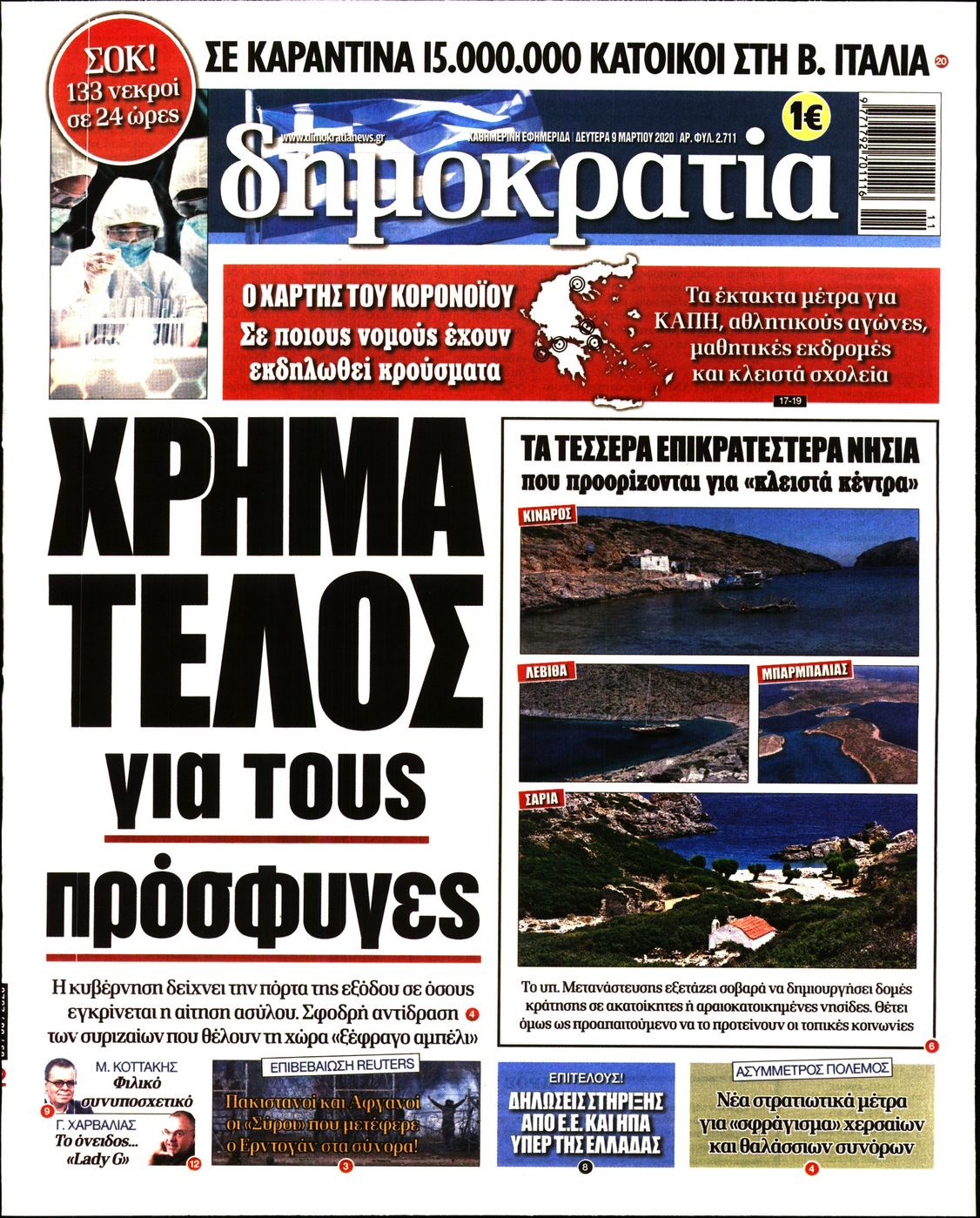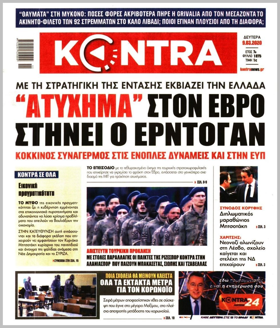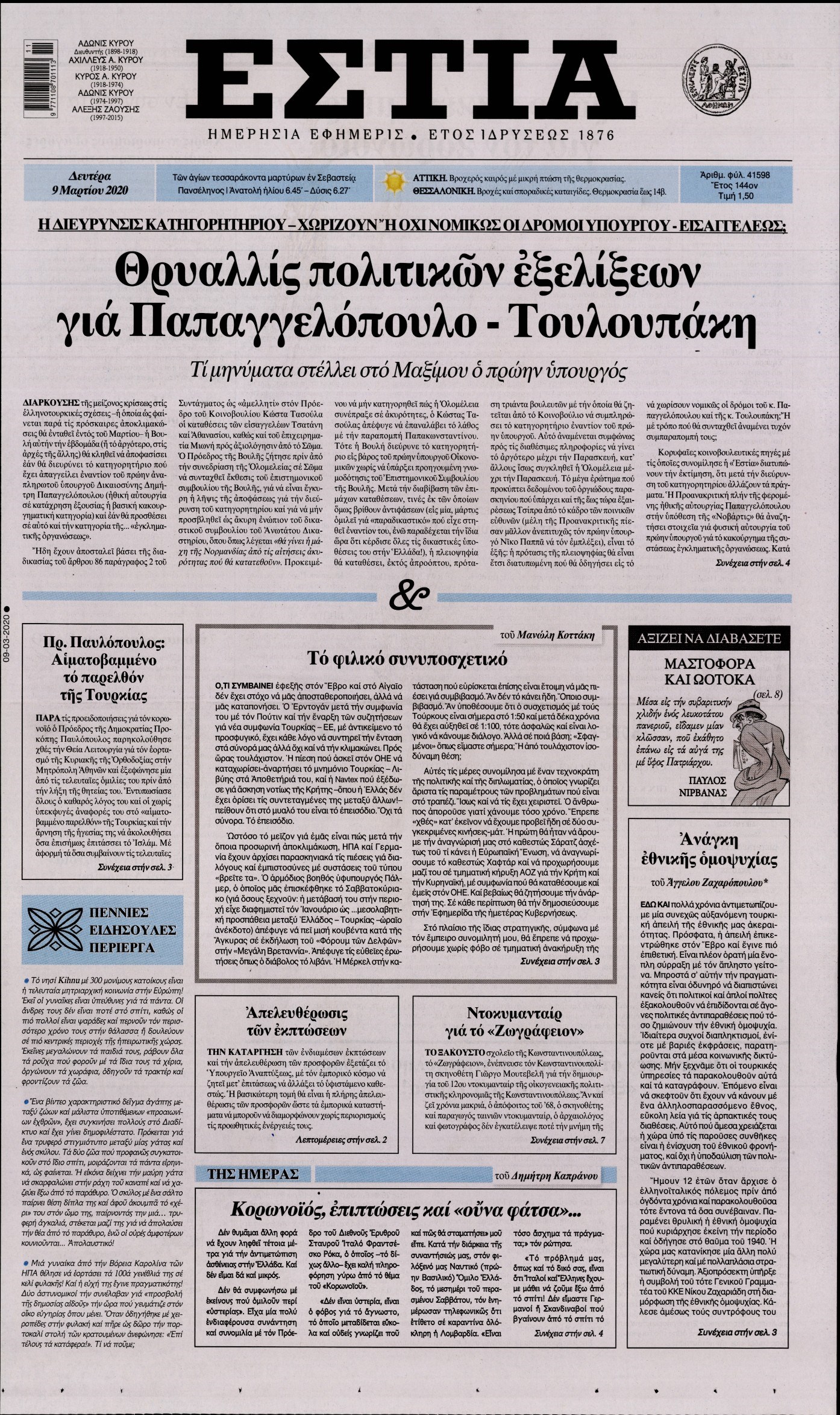 Οι πολιτικές εφημερίδες 9/3/2020 Διονύσης Νίκκας 06:24, Δευτέρα 09 Μαρτίου 2020 Media Διαβάστε τα πρωτοσέλιδα των πολιτικών εφημερίδων… ΕΦΗΜΕΡΙΔΕΣ ΠΟΛΙΤΙΚΕΣ ΠΡΩΤΟΣΕΛΙΔΑ Μοιράσου το: σχολίασε κι εσύ (0 σχόλια) Ακολουθήστε το enikos.gr στο Google News και μάθετε πρώτοι όλες τις ειδήσεις Δείτε όλες τις τελευταίες ειδήσεις από την Ελλάδα και τον Κόσμο στο enikos.gr Ειδήσεις Ροή Ειδήσεων 12 λεπτά πριν Τρομοκρατική επίθεση στο Σίδνεϊ: Νεκροί 11 πολίτες και ο ένας δράστης – Εντοπίστηκε αυτοσχέδιος εκρηκτικός μηχανισμός 1 ώρα πριν ΟΠΕΚΕΠΕ: Ποινική δίωξη με βαρύτατες κατηγορίες για τους 15 συλληφθέντες στην Κρήτη για τις παράνομες επιδοτήσεις 3 ώρες πριν Σκληραίνουν τη στάση τους οι αγρότες: Αποφασίζουν τις δράσεις της εβδομάδας – Αύριο το συλλαλητήριο στα δικαστήρια της Λάρισας 3 ώρες πριν Στιγμές τρόμου για επιβάτες λεωφορείου στη Θεσσαλονίκη: Ο οδηγός πέρασε με κόκκινο σε σιδηροδρομική διάβαση ενώ ερχόταν τρένο και έσπασε την μπάρα 5 ώρες πριν Κυριάκος Μητσοτάκης μετά το «όχι» των αγροτών: Διάλογος δεν γίνεται με τελεσίγραφα και οι λύσεις προκύπτουν μόνο από συζήτηση 8 λεπτά πριν Γεωλογική αποκάλυψη: Επιστήμονες εξηγούν πώς η Ιβηρική Χερσόνησος περιστρέφεται σαν… ρολόι 3 ώρες πριν Προπονήτρια ευεξίας που έχασε 24 κιλά αποκαλύπτει: «Αυτά είναι τα 6 ανησυχητικά σημάδια της υψηλής κορτιζόλης» 5 ώρες πριν Η ζωή γίνεται πολύ καλύτερη για 3 ζώδια – «Ίσως έχει έρθει η ώρα να κάνετε μια πραγματική και μόνιμη αλλαγή» 4 ώρες πριν Τα 8 πράγματα που τα ευτυχισμένα ζευγάρια δεν κάνουν ποτέ μπροστά στα παιδιά τους 3 λεπτά πριν IQ160: Η Μαρίνα στέλνει το φούτερ του Τηλέμαχου για το τεστ πατρότητας 8 λεπτά πριν Γεωλογική αποκάλυψη: Επιστήμονες εξηγούν πώς η Ιβηρική Χερσόνησος περιστρέφεται σαν… ρολόι 12 λεπτά πριν Τρομοκρατική επίθεση στο Σίδνεϊ: Νεκροί 11 πολίτες και ο ένας δράστης – Εντοπίστηκε αυτοσχέδιος εκρηκτικός μηχανισμός 20 λεπτά πριν Λαμία: Τραυματίστηκε 15χρονος με ηλεκτρικό πατίνι – Έπεσε πάνω σε σταθμευμένο αυτοκίνητο 26 λεπτά πριν Συνέδριο: «Ελληνικός Τουρισμός, Μια Εθνική Υπόθεση!» ENIKOS NETWORK Άσκηση ή περισσότερος ύπνος: Τι είναι πιο σημαντικό για την υγεία όταν δεν έχετε χρόνο και για τα δύο; Σπλαχνικό λίπος: 3 υδατάνθρακες που μπορεί να σας βοηθήσουν να το χάσετε, σύμφωνα με ειδικό Βαρύς ο λογαριασμός για τους φορολογούμενους – Τι πρέπει να πληρώσετε έως το τέλος του μήνα Αντέχουν οι ευρωπαϊκές και οι ελληνικές εξαγωγές στους δασμούς Τραμπ – Αυξάνονται οι εισαγωγές από Κίνα Σύγχρονος Νοστράδαμος: Προειδοποιεί για «μεγάλο γεγονός» τους επόμενους μήνες που θα συγκλονίσει τη Βρετανία και τον κόσμο Τεστ παρατηρητικότητας: Μπορείτε να βρείτε τις 3 διαφορές στις εικόνες με έναν πιγκουίνο σε 14 δευτερόλεπτα περισσότερα 15:07 , Κυριακή 14 Δεκεμβρίου 2025 IQ160: Η Μαρίνα στέλνει το φούτερ του Τηλέμαχου για το τεστ πατρότητας Η Πηνελόπη αποφασίζει να κάνει αμνιοπαρακέντηση, για να βεβαιωθεί για την υγεία του μωρού της ... 12:46 , Κυριακή 14 Δεκεμβρίου 2025 Η Realnews στο www.pressreader.com Διαβάστε την ψηφιακή έκδοση της εφημερίδας στην οθόνη του κινητού, του tablet και του υπολογισ... 10:07 , Κυριακή 14 Δεκεμβρίου 2025 Η γη της ελιάς: Η αρχή του τέλους του Δημοσθένη πλησιάζει Η δραματική σειρά του MEGA «Η γη της ελιάς» επιφυλάσσει ακόμα μεγαλύτερες ανατροπές. Κάθε επει... 08:15 , Κυριακή 14 Δεκεμβρίου 2025 Σήμερα με τη Realnews: Food & Travel μαζί Beaute και Μαστορέματα Σήμερα με τη Realnews: Food & Travel μαζί Beaute και Μαστορέματα Food & Travel Ετοιμάζ... 