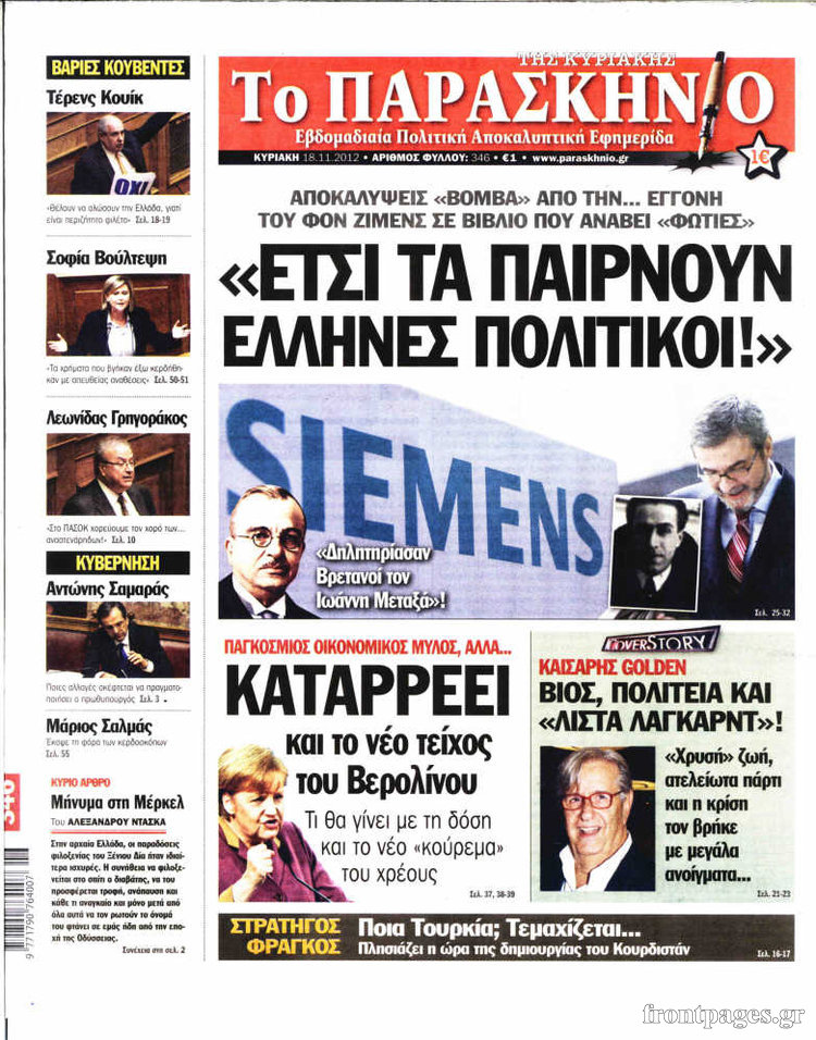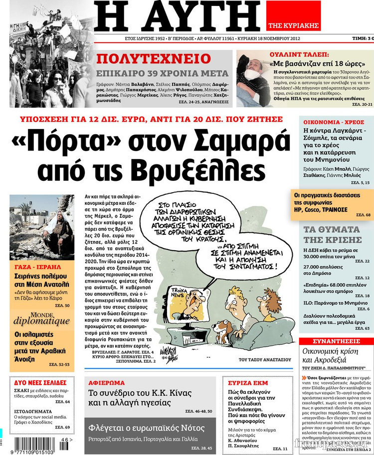 Οι πολιτικές εφημερίδες Enikos Newsroom 09:12, Κυριακή 18 Νοεμβρίου 2012 Media Οι πολιτικές εφημερίδες ΠΟΛΙΤΙΚΕΣ ΕΦΗΜΕΡΙΔΕΣ ΠΡΩΤΟΣΕΛΙΔΑ Μοιράσου το: σχολίασε κι εσύ (0 σχόλια) Ακολουθήστε το enikos.gr στο Google News και μάθετε πρώτοι όλες τις ειδήσεις Δείτε όλες τις τελευταίες ειδήσεις από την Ελλάδα και τον Κόσμο στο enikos.gr Ειδήσεις Ροή Ειδήσεων 2 ώρες πριν Εκτός ευρωομάδας ΣΥΡΙΖΑ ο Νίκος Παππάς μετά την επίθεση στον δημοσιογράφο Νίκο Γιαννόπουλο – Η μήνυση και οι νέες δηλώσεις 2 ώρες πριν «Αγριεύουν» οι αγρότες: «Δεν συντρέχει λόγος συνάντησης με τον πρωθυπουργό» – Ώρα αποφάσεων στη σύσκεψη της Πέμπτης 2 ώρες πριν Κυψέλη: Χωρίς την οικογένειά της δίπλα της απολογήθηκε η 16χρονη – «Της είχε επιτεθεί κάποιος για να την βιάσει, φοβήθηκε και κυκλοφορούσε με μαχαίρι» 1 ώρα πριν Politico: Το πρόβλημα της Ευρώπης δεν είναι το Βέλγιο αλλά ο Ντόναλντ Τραμπ 3 ώρες πριν Αλεξανδρούπολη: Πολυοργανική ανεπάρκεια λόγω υποσιτισμού η αιτία θανάτου του 3χρονου αγοριού 2 ώρες πριν Μυστήριο με τεράστιες κυκλικές πέτρες 200 κιλών – Ανακαλύφθηκαν τυχαία κατά τη διάρκεια οδικών έργων και κανείς δεν ξέρει από πού προέρχονται 3 ώρες πριν Ύπνος: Ειδικός εξηγεί τον πραγματικό λόγο που ξυπνάτε στις 4 τα ξημερώματα – Ο ρόλος των ορμονών και του κιρκάδιου ρυθμού 4 ώρες πριν Αριθμολογία: Οι άνθρωποι που έχουν γεννηθεί αυτές τις 4 ημερομηνίες, είναι τρυφεροί και αγαπούν ανιδιοτελώς 15 ώρες πριν 20 χρόνια τα Χριστούγεννα ξεκινούν στα Public με μεγάλη ποικιλία σε δώρα! 14 λεπτά πριν Βέλγους πολιτικούς και επικεφαλής χρηματοπιστωτικών ιδρυμάτων στοχοποιεί η Μόσχα για τα κατασχεθέντα περιουσιακά στοιχεία 29 λεπτά πριν ΗΠΑ: Αναζητείται δεύτερος ύποπτος για την επίθεση στο πανεπιστήμιο Μπράουν 44 λεπτά πριν Λεωφόρος Αλεξάνδρας: Δεν εντοπίστηκε βόμβα έξω από το κολλέγιο – Προσήχθη άνδρας για το προειδοποιητικό σημείωμα 1 ώρα πριν Ελένη Κρίτα για το reunion του «Παρά Πέντε»: «Ήταν πραγματικά σαν να μην είχαμε χαθεί ποτέ» 1 ώρα πριν Κύπελλο Ελλάδας: Αυτά είναι τα ζευγάρια στα νοκ-άουτ, οι διασταυρώσεις στους «8» κι ο δρόμος προς τον τελικό ENIKOS NETWORK Αϋπνία: Το κόλπο που θα σας βοηθήσει να κοιμηθείτε απόψε – Είναι απλό και έχει αποτέλεσμα 2,6 εκατομμύρια πολίτες έχουν ήδη εμβολιαστεί κατά της γρίπης ΕΛΣΤΑΤ: Τι δείχνουν τα νέα στοιχεία για τις ηλεκτρονικές παραγγελίες των επιχειρήσεων ΚΕΠΕ: Οι 3 διακριτές συμβολές των ΜμΕ και της μεταποίησης στην ελληνική οικονομία Χαρτογραφώντας το «σημείο χωρίς επιστροφή»: Για πρώτη φορά αποκαλύπτεται με λεπτομέρεια το ακανθώδες όριο της ατμόσφαιρας τ... Η Google καταργεί τη λειτουργία «dark web report» – Πώς θα μπορούν οι χρήστες να διαγράφουν τα δεδομένα τους περισσότερα 22:24 , Τετάρτη 17 Δεκεμβρίου 2025 Το Σπίτι Δίπλα Στο Ποτάμι: Σε κίνδυνο η υγεία του Απόστολου – Τι θα δούμε απόψε “Το Σπίτι Δίπλα στο Ποτάμι” ξετυλίγει το νήμα της ζωής των πέντε αδελφών με καταισ... 21:14 , Τετάρτη 17 Δεκεμβρίου 2025 Παιχνίδια Εκδίκησης: Θα καταφέρει ο Χρήστος να κλονίσει την εμπιστοσύνη της Μάγιας απέναντι στον Άγη; Τα «Παιχνίδια Εκδίκησης» έρχονται απόψε στις 22:30, στον Αντ1, με το τελευταίο επεισόδιο της χ... 20:57 , Τετάρτη 17 Δεκεμβρίου 2025 Άγιος Έρωτας: Η Χλόη καταθέτει εναντίον του πατέρα της και ο Χάρης αποκαλύπτει στον Κλεάνθη ότι δεν είναι ο βιολογικός του πατέρας. Γεμάτο αποκαλύψεις είναι το νέο επεισόδιο της σειράς “Άγιος Έρωτας” απόψε στις 21:... 20:15 , Τετάρτη 17 Δεκεμβρίου 2025 Η ανακοίνωση της ΕΣΗΕΑ για την επίθε