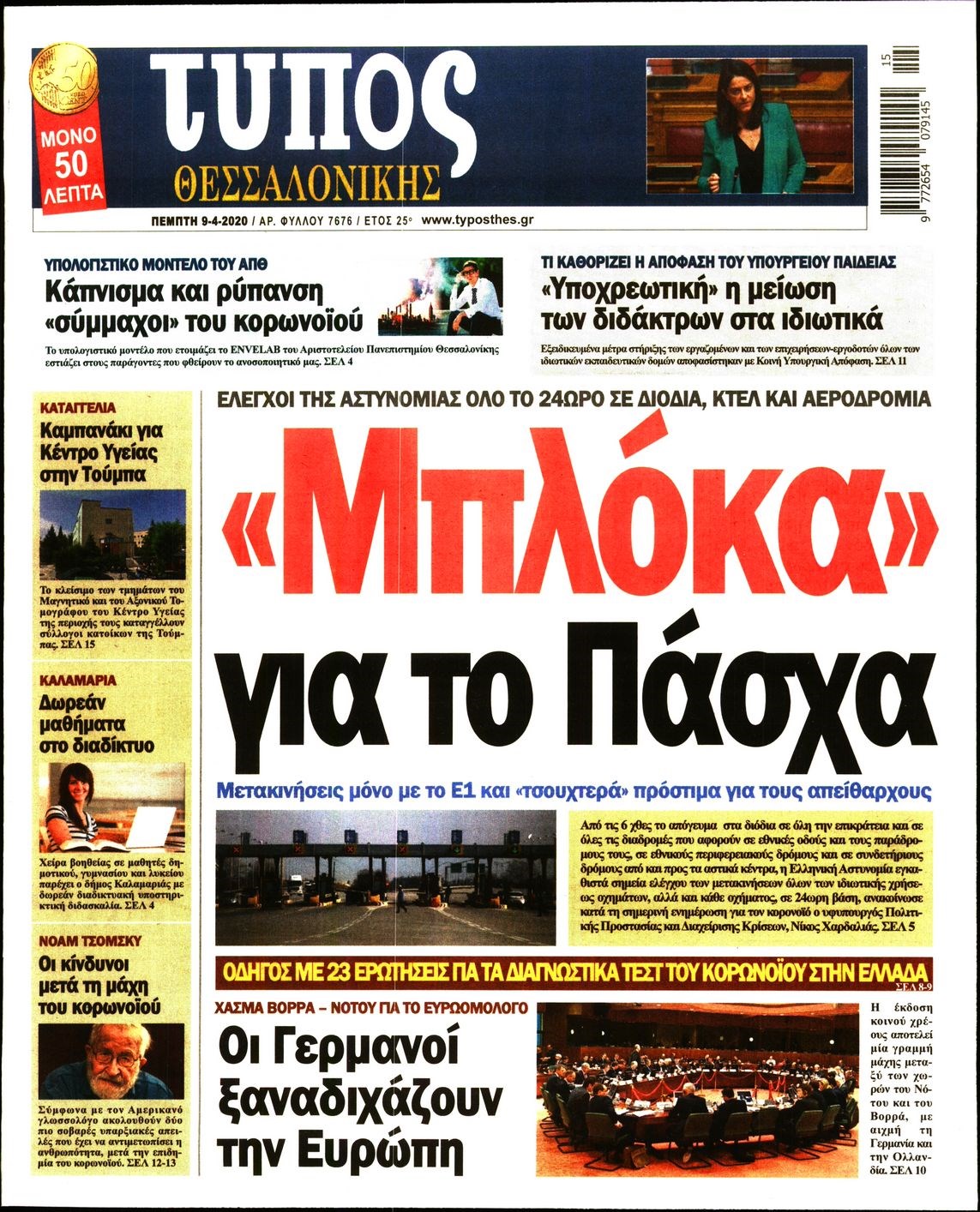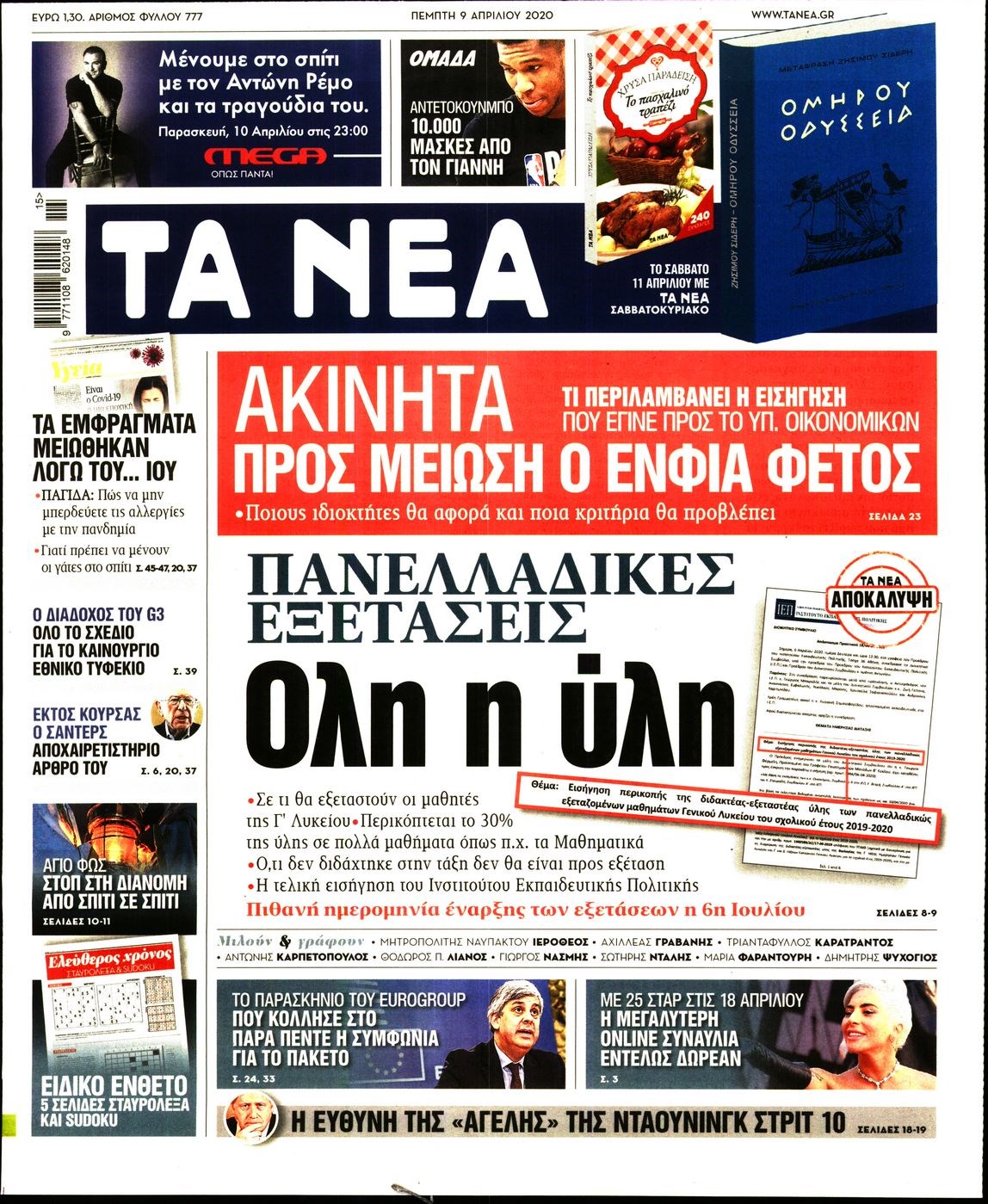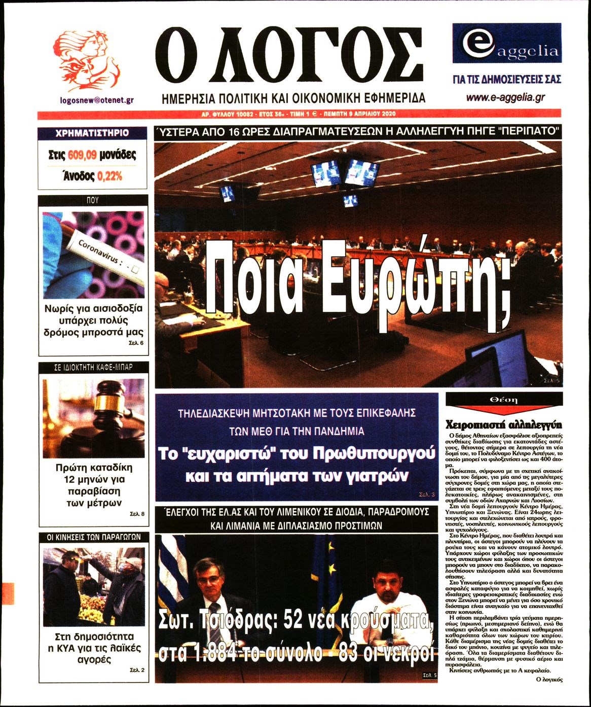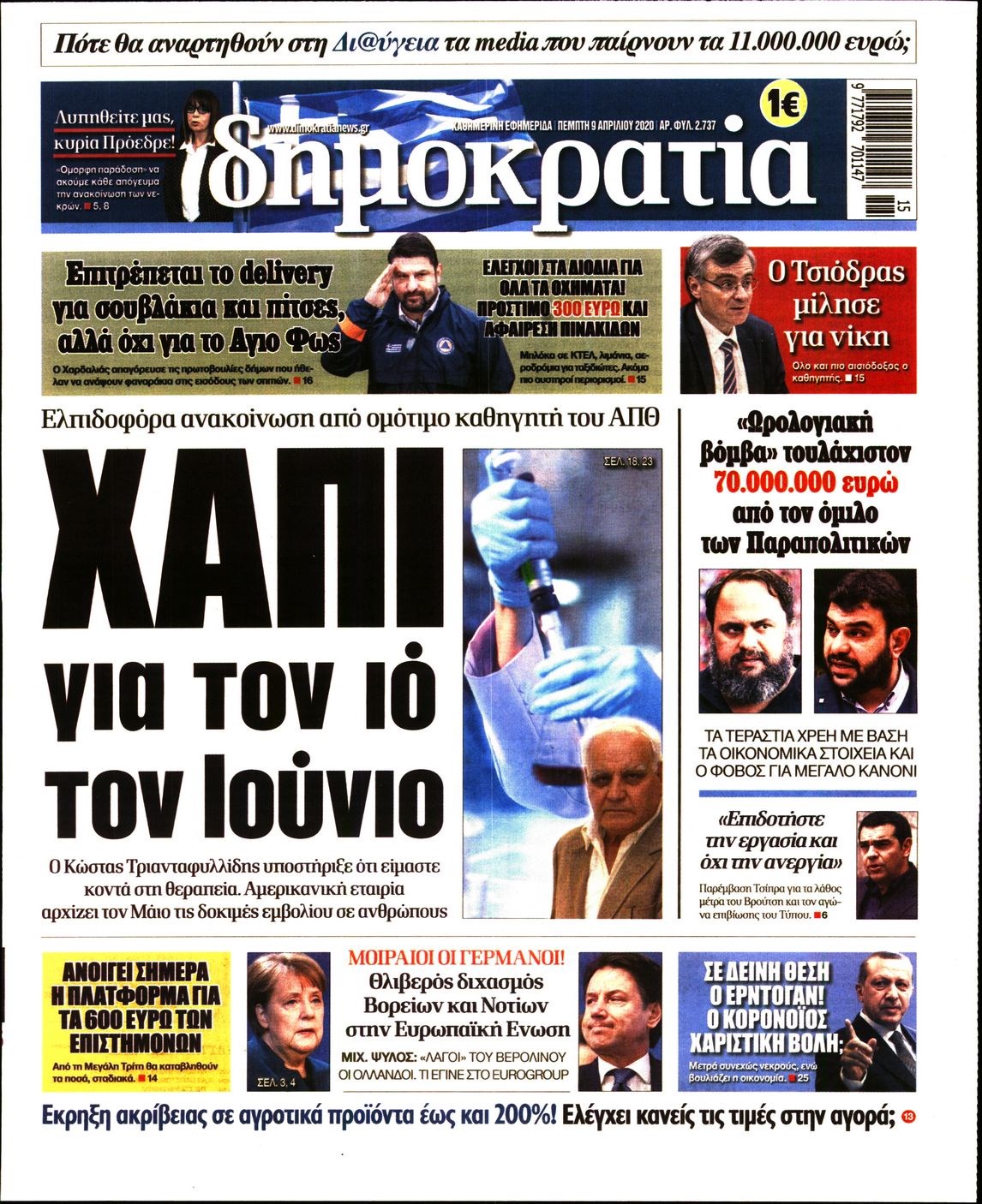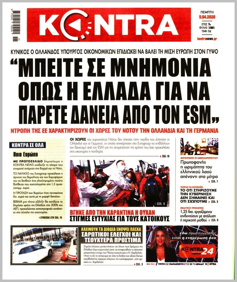 Οι πολιτικές εφημερίδες 9/4/2020 Διονύσης Νίκκας 06:08, Πέμπτη 09 Απριλίου 2020 Media Διαβάστε τα πρωτοσέλιδα των πολιτικών εφημερίδων… ΠΟΛΙΤΙΚΕΣ ΕΦΗΜΕΡΙΔΕΣ ΠΡΩΤΟΣΕΛΙΔΑ Μοιράσου το: σχολίασε κι εσύ (0 σχόλια) Ακολουθήστε το enikos.gr στο Google News και μάθετε πρώτοι όλες τις ειδήσεις Δείτε όλες τις τελευταίες ειδήσεις από την Ελλάδα και τον Κόσμο στο enikos.gr Ειδήσεις Ροή Ειδήσεων 2 ώρες πριν Χριστούγεννα στα μπλόκα: Επιμένουν στις κινητοποιήσεις τους οι αγρότες – Ανοίγουν τα διόδια το Σαββατοκύριακο 2 ώρες πριν Ουκρανία: Η άνευ προηγουμένου επίθεση σε ρωσικό τάνκερ στη Μεσόγειο και το μήνυμα προς στον Πούτιν – Το «μακρύ χέρι» του Κιέβου 2 ώρες πριν Πούτιν: Τα μηνύματα σε Ευρώπη και ΝΑΤΟ από το μαραθώνιο «σόου» του – Η απαίτηση για «σεβασμό» και η ειρήνη «με τους όρους» της Μόσχας 3 ώρες πριν Τραμπ: Δεν αποκλείει την πιθανότητα ενός πολέμου στη Βενεζουέλα – «Ο Μαδούρο ξέρει καλύτερα από τον καθένα τι ακριβώς θέλω» 3 ώρες πριν Συνεχίζει να προκαλεί ο Μίτσκοσκι: «Για μένα το όνομα Μακεδονία είναι ιερό» 2 ώρες πριν Ανακαλύφθηκαν αρχαία χρυσά νομίσματα 2.200 ετών που απεικονίζουν τον θεό Απόλλωνα – Η άγνωστη σύνδεση με τον Φίλιππο Β΄ της Μακεδονίας 3 ώρες πριν Ύπνος: Μια κρυφή κατάσταση του εγκεφάλου πριν από τον ύπνο μπορεί να είναι το “κλειδί” για υψηλή ευφυΐα και δημιουργικότητα 4 ώρες πριν Αριθμολογία: Οι άνθρωποι που έχουν γεννηθεί αυτές τις 4 ημερομηνίες, συχνά παρεξηγούνται – «Η καλοσύνη τους κρύβει τεράστια δύναμη» 5 ώρες πριν Ξεχάστε το καθάρισμα το Σαββατοκύριακο: Ο «κανόνας των 20 λεπτών» που θα σας λύσει τα χέρια 15 λεπτά πριν Φαίη Σκορδά: «Παλιότερα τα κομπλιμέντα τα προσπερνούσα, τώρα τα έχω ανάγκη» 31 λεπτά πριν Βασίλης Σπανούλης: Δεν εμφανίστηκε ούτε ένας δημοσιογράφος στην συνέντευξη Τύπου – «Καλησπέρα στον… κανέναν», δείτε βίντεο 42 λεπτά πριν Πόλεμος στην Ουκρανία: Εφτά νεκροί από ρωσική πυραυλική επίθεση στο λιμάνι της Οδησσού 46 λεπτά πριν ΗΠΑ: Η κυβέρνηση του Ντόναλντ Τραμπ άρχισε να δημοσιοποιεί τα αρχεία Έπσταϊν 57 λεπτά πριν Σάμος: Άνοιξε το μπλόκο των αγροτών στον κόμβο Κοκκαρίου – Σε νέα συνεδρίαση θα καθορίσουν την στάση τους ENIKOS NETWORK Το ΕΚΑΒ τιμήθηκε από την Ακαδημία Αθηνών για τα 40 χρόνια προσφοράς του Έχετε πραγματικά μεγάλη καρδιά; 10 χαρακτηριστικά όσων έχουν καλοσύνη Αναστολή μέτρων αναγκαστικής εκτέλεσης για κτηνοτρόφους που πλήττονται από την ευλογιά των αιγοπροβάτων Πλήρης επάρκεια προϊόντων στις λαϊκές της Αττικής, παρά τις αγροτικές κινητοποιήσεις – Τι απαντούν οι πωλητές Χαρτογραφώντας το «σημείο χωρίς επιστροφή»: Για πρώτη φορά αποκαλύπτεται με λεπτομέρεια το ακανθώδες όριο της ατμόσφαιρας τ... Η Google καταργεί τη λειτουργία «dark web report» – Πώς θα μπορούν οι χρήστες να διαγράφουν τα δεδομένα τους περισσότερα 22:42 , Παρασκευή 19 Δεκεμβρίου 2025 Γιώργος Γιαννόπουλος για “Το σόι σου”: “Είναι ευτυχία και ευλογία αυτή η σειρά” «Είναι ευτυχία και ευλογία η συγκυρία αυτής της σειράς», θα πει ο Γιώργος Γιαννόπουλος -ο αγαπ... 20:37 , Παρασκευή 19 Δεκεμβρίου 2025 Don’t Forget The Lyrics: Η Έλλη Κοκκίνου υποδέχεται 4 παίκτες που θα κάνουν τα πάντα για να μη χάσουν ούτε… μισή λέξη από τους στίχους Το «Don’t Forget The Lyrics» επιστρέφει απόψε, Παρασκευή 19 Δεκεμβρίου, στις 21:00 με νέο επει... 19:31 , Παρασκευή 19 Δεκεμβρίου 2025 GNTM: Απόψε ο μεγάλος τελικός για τους 4 φιναλίστ Έπειτα από μήνες γεμάτους μόδα, δημιουργία και έντονες αναμετρήσεις, το GNTM 2025 κορυφώνεται,... 18:11 , Παρασ