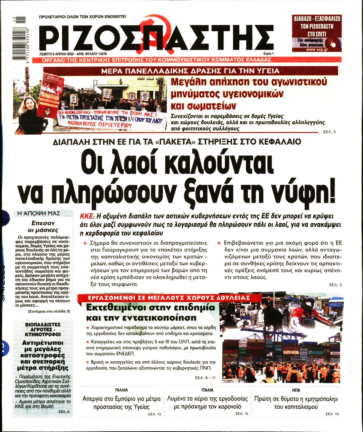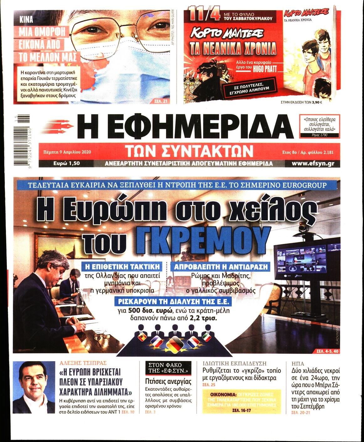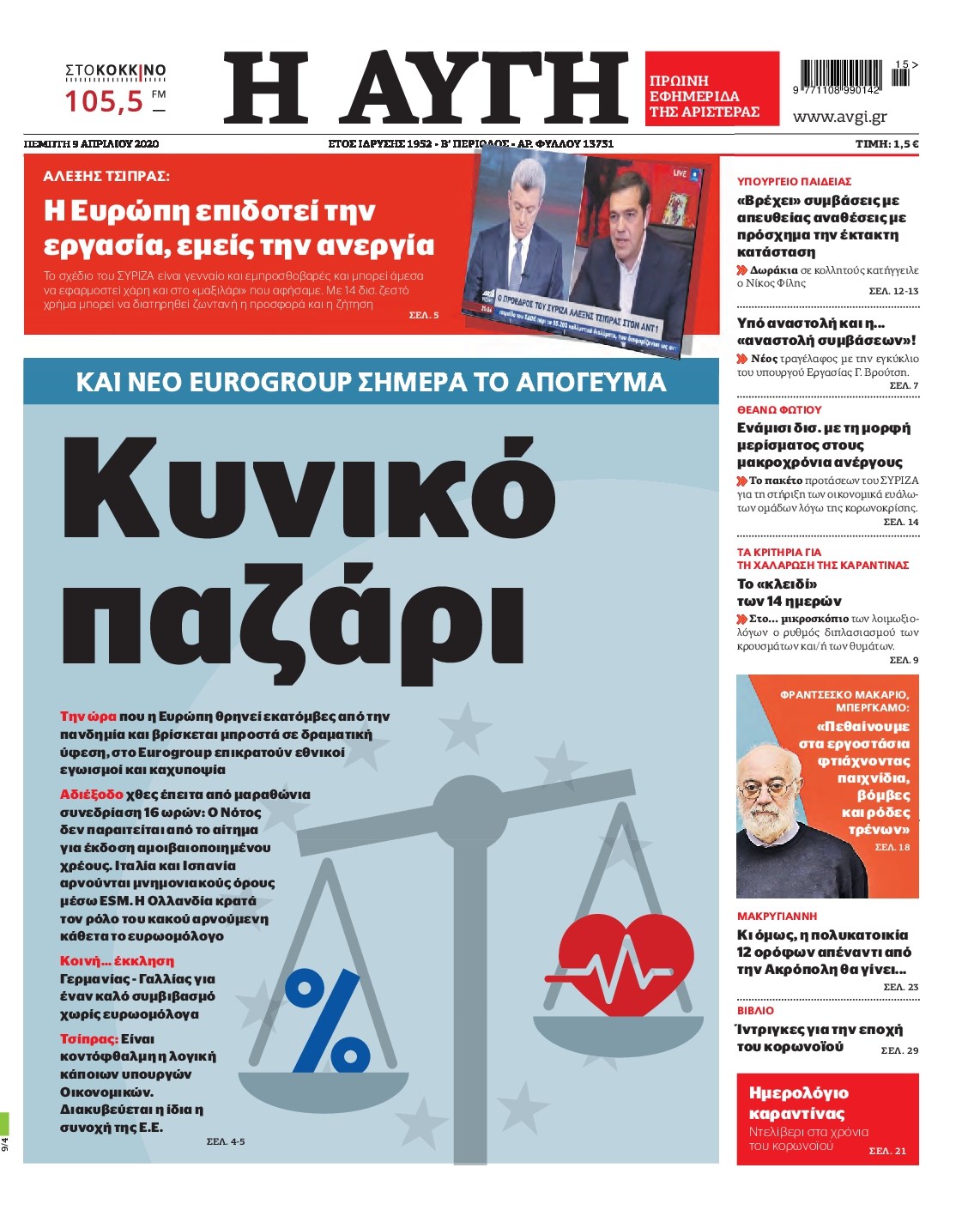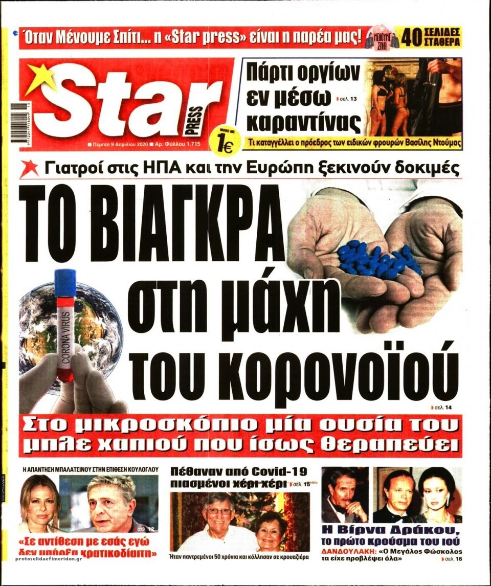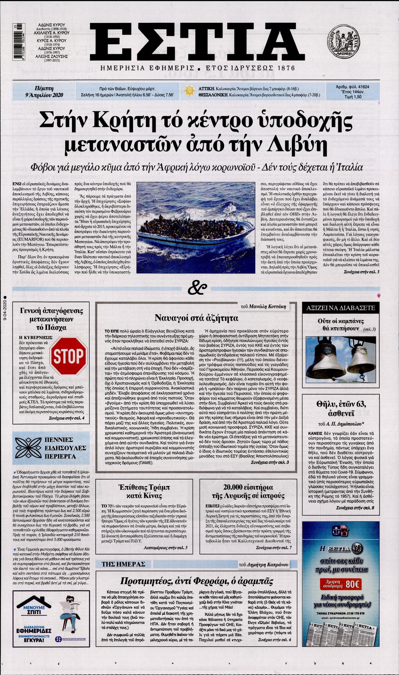Οι πολιτικές εφημερίδες 9/4/2020 Διονύσης Νίκκας 06:08, Πέμπτη 09 Απριλίου 2020 Media Διαβάστε τα πρωτοσέλιδα των πολιτικών εφημερίδων… ΠΟΛΙΤΙΚΕΣ ΕΦΗΜΕΡΙΔΕΣ ΠΡΩΤΟΣΕΛΙΔΑ Μοιράσου το: σχολίασε κι εσύ (0 σχόλια) Ακολουθήστε το enikos.gr στο Google News και μάθετε πρώτοι όλες τις ειδήσεις Δείτε όλες τις τελευταίες ειδήσεις από την Ελλάδα και τον Κόσμο στο enikos.gr Ειδήσεις Ροή Ειδήσεων 2 ώρες πριν Χριστούγεννα στα μπλόκα: Επιμένουν στις κινητοποιήσεις τους οι αγρότες – Ανοίγουν τα διόδια το Σαββατοκύριακο 2 ώρες πριν Ουκρανία: Η άνευ προηγουμένου επίθεση σε ρωσικό τάνκερ στη Μεσόγειο και το μήνυμα προς στον Πούτιν – Το «μακρύ χέρι» του Κιέβου 2 ώρες πριν Πούτιν: Τα μηνύματα σε Ευρώπη και ΝΑΤΟ από το μαραθώνιο «σόου» του – Η απαίτηση για «σεβασμό» και η ειρήνη «με τους όρους» της Μόσχας 3 ώρες πριν Τραμπ: Δεν αποκλείει την πιθανότητα ενός πολέμου στη Βενεζουέλα – «Ο Μαδούρο ξέρει καλύτερα από τον καθένα τι ακριβώς θέλω» 3 ώρες πριν Συνεχίζει να προκαλεί ο Μίτσκοσκι: «Για μένα το όνομα Μακεδονία είναι ιερό» 2 ώρες πριν Ανακαλύφθηκαν αρχαία χρυσά νομίσματα 2.200 ετών που απεικονίζουν τον θεό Απόλλωνα – Η άγνωστη σύνδεση με τον Φίλιππο Β΄ της Μακεδονίας 3 ώρες πριν Ύπνος: Μια κρυφή κατάσταση του εγκεφάλου πριν από τον ύπνο μπορεί να είναι το “κλειδί” για υψηλή ευφυΐα και δημιουργικότητα 4 ώρες πριν Αριθμολογία: Οι άνθρωποι που έχουν γεννηθεί αυτές τις 4 ημερομηνίες, συχνά παρεξηγούνται – «Η καλοσύνη τους κρύβει τεράστια δύναμη» 5 ώρες πριν Ξεχάστε το καθάρισμα το Σαββατοκύριακο: Ο «κανόνας των 20 λεπτών» που θα σας λύσει τα χέρια 15 λεπτά πριν Φαίη Σκορδά: «Παλιότερα τα κομπλιμέντα τα προσπερνούσα, τώρα τα έχω ανάγκη» 31 λεπτά πριν Βασίλης Σπανούλης: Δεν εμφανίστηκε ούτε ένας δημοσιογράφος στην συνέντευξη Τύπου – «Καλησπέρα στον… κανέναν», δείτε βίντεο 42 λεπτά πριν Πόλεμος στην Ουκρανία: Εφτά νεκροί από ρωσική πυραυλική επίθεση στο λιμάνι της Οδησσού 46 λεπτά πριν ΗΠΑ: Η κυβέρνηση του Ντόναλντ Τραμπ άρχισε να δημοσιοποιεί τα αρχεία Έπσταϊν 57 λεπτά πριν Σάμος: Άνοιξε το μπλόκο των αγροτών στον κόμβο Κοκκαρίου – Σε νέα συνεδρίαση θα καθορίσουν την στάση τους ENIKOS NETWORK Το ΕΚΑΒ τιμήθηκε από την Ακαδημία Αθηνών για τα 40 χρόνια προσφοράς του Έχετε πραγματικά μεγάλη καρδιά; 10 χαρακτηριστικά όσων έχουν καλοσύνη Αναστολή μέτρων αναγκαστικής εκτέλεσης για κτηνοτρόφους που πλήττονται από την ευλογιά των αιγοπροβάτων Πλήρης επάρκεια προϊόντων στις λαϊκές της Αττικής, παρά τις αγροτικές κινητοποιήσεις – Τι απαντούν οι πωλητές Χαρτογραφώντας το «σημείο χωρίς επιστροφή»: Για πρώτη φορά αποκαλύπτεται με λεπτομέρεια το ακανθώδες όριο της ατμόσφαιρας τ... Η Google καταργεί τη λειτουργία «dark web report» – Πώς θα μπορούν οι χρήστες να διαγράφουν τα δεδομένα τους περισσότερα 22:42 , Παρασκευή 19 Δεκεμβρίου 2025 Γιώργος Γιαννόπουλος για “Το σόι σου”: “Είναι ευτυχία και ευλογία αυτή η σειρά” «Είναι ευτυχία και ευλογία η συγκυρία αυτής της σειράς», θα πει ο Γιώργος Γιαννόπουλος -ο αγαπ... 20:37 , Παρασκευή 19 Δεκεμβρίου 2025 Don’t Forget The Lyrics: Η Έλλη Κοκκίνου υποδέχεται 4 παίκτες που θα κάνουν τα πάντα για να μη χάσουν ούτε… μισή λέξη από τους στίχους Το «Don’t Forget The Lyrics» επιστρέφει απόψε, Παρασκευή 19 Δεκεμβρίου, στις 21:00 με νέο επει... 19:31 , Παρασκευή 19 Δεκεμβρίου 2025 GNTM: Απόψε ο μεγάλος τελικός για τους 4 φιναλίστ Έπειτα από μήνες γεμάτους μόδα, δημιουργία και έντονες αναμετρήσεις, το GNTM 2025 κορυφώνεται,... 18:11 , Παρασ