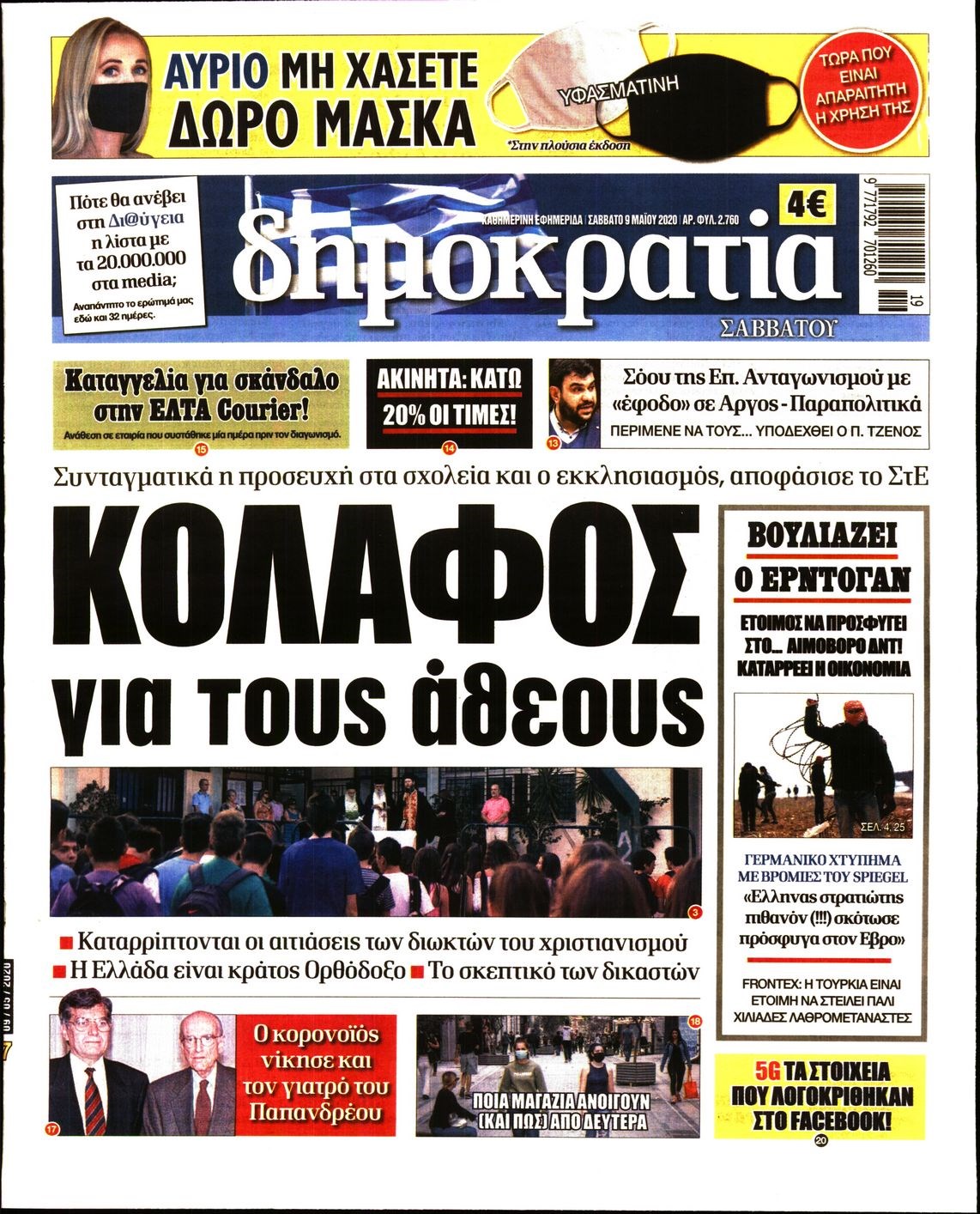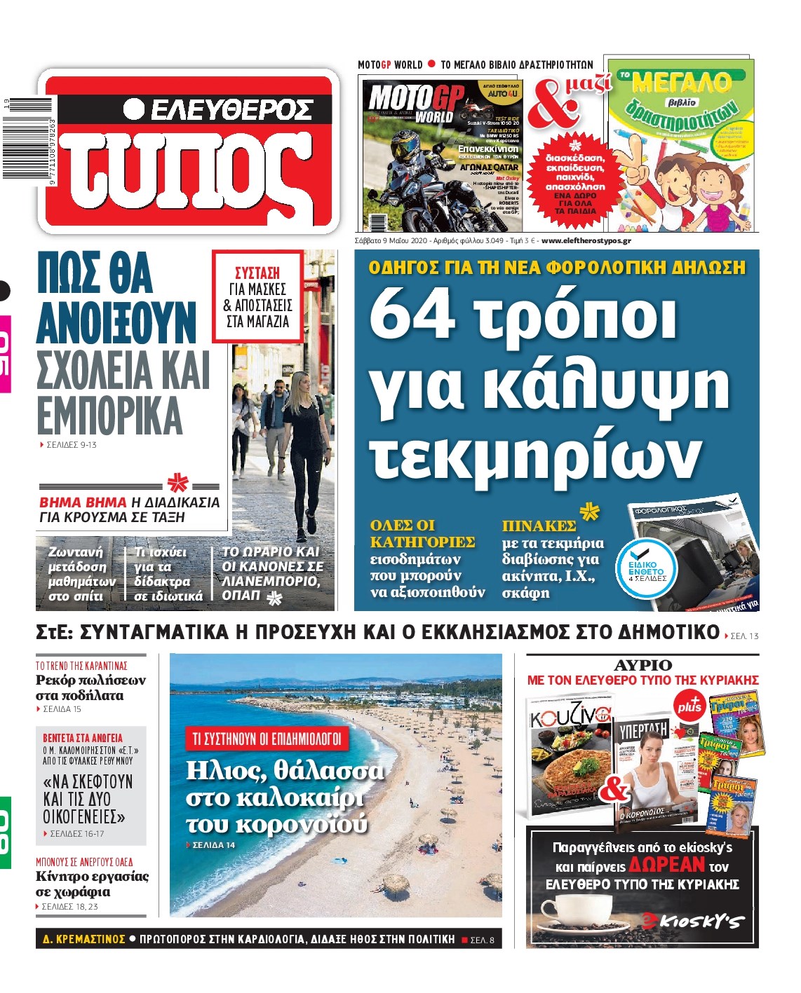 Οι πολιτικές εφημερίδες 9/5/2020 Διονύσης Νίκκας 07:14, Σάββατο 09 Μαΐου 2020 Media Διαβάστε τα πρωτοσέλιδα των πολιτικών εφημερίδων… ΠΟΛΙΤΙΚΕΣ ΕΦΗΜΕΡΙΔΕΣ ΠΡΩΤΟΣΕΛΙΔΑ Μοιράσου το: σχολίασε κι εσύ (0 σχόλια) Ακολουθήστε το enikos.gr στο Google News και μάθετε πρώτοι όλες τις ειδήσεις Δείτε όλες τις τελευταίες ειδήσεις από την Ελλάδα και τον Κόσμο στο enikos.gr Ειδήσεις Ροή Ειδήσεων 2 ώρες πριν Χριστούγεννα στα μπλόκα: Επιμένουν στις κινητοποιήσεις τους οι αγρότες – Ανοίγουν τα διόδια το Σαββατοκύριακο 2 ώρες πριν Ουκρανία: Η άνευ προηγουμένου επίθεση σε ρωσικό τάνκερ στη Μεσόγειο και το μήνυμα προς στον Πούτιν – Το «μακρύ χέρι» του Κιέβου 2 ώρες πριν Πούτιν: Τα μηνύματα σε Ευρώπη και ΝΑΤΟ από το μαραθώνιο «σόου» του – Η απαίτηση για «σεβασμό» και η ειρήνη «με τους όρους» της Μόσχας 3 ώρες πριν Τραμπ: Δεν αποκλείει την πιθανότητα ενός πολέμου στη Βενεζουέλα – «Ο Μαδούρο ξέρει καλύτερα από τον καθένα τι ακριβώς θέλω» 3 ώρες πριν Συνεχίζει να προκαλεί ο Μίτσκοσκι: «Για μένα το όνομα Μακεδονία είναι ιερό» 2 ώρες πριν Ανακαλύφθηκαν αρχαία χρυσά νομίσματα 2.200 ετών που απεικονίζουν τον θεό Απόλλωνα – Η άγνωστη σύνδεση με τον Φίλιππο Β΄ της Μακεδονίας 3 ώρες πριν Ύπνος: Μια κρυφή κατάσταση του εγκεφάλου πριν από τον ύπνο μπορεί να είναι το “κλειδί” για υψηλή ευφυΐα και δημιουργικότητα 4 ώρες πριν Αριθμολογία: Οι άνθρωποι που έχουν γεννηθεί αυτές τις 4 ημερομηνίες, συχνά παρεξηγούνται – «Η καλοσύνη τους κρύβει τεράστια δύναμη» 5 ώρες πριν Ξεχάστε το καθάρισμα το Σαββατοκύριακο: Ο «κανόνας των 20 λεπτών» που θα σας λύσει τα χέρια 15 λεπτά πριν Φαίη Σκορδά: «Παλιότερα τα κομπλιμέντα τα προσπερνούσα, τώρα τα έχω ανάγκη» 31 λεπτά πριν Βασίλης Σπανούλης: Δεν εμφανίστηκε ούτε ένας δημοσιογράφος στην συνέντευξη Τύπου – «Καλησπέρα στον… κανέναν», δείτε βίντεο 42 λεπτά πριν Πόλεμος στην Ουκρανία: Εφτά νεκροί από ρωσική πυραυλική επίθεση στο λιμάνι της Οδησσού 46 λεπτά πριν ΗΠΑ: Η κυβέρνηση του Ντόναλντ Τραμπ άρχισε να δημοσιοποιεί τα αρχεία Έπσταϊν 57 λεπτά πριν Σάμος: Άνοιξε το μπλόκο των αγροτών στον κόμβο Κοκκαρίου – Σε νέα συνεδρίαση θα καθορίσουν την στάση τους ENIKOS NETWORK Το ΕΚΑΒ τιμήθηκε από την Ακαδημία Αθηνών για τα 40 χρόνια προσφοράς του Έχετε πραγματικά μεγάλη καρδιά; 10 χαρακτηριστικά όσων έχουν καλοσύνη Αναστολή μέτρων αναγκαστικής εκτέλεσης για κτηνοτρόφους που πλήττονται από την ευλογιά των αιγοπροβάτων Πλήρης επάρκεια προϊόντων στις λαϊκές της Αττικής, παρά τις αγροτικές κινητοποιήσεις – Τι απαντούν οι πωλητές Χαρτογραφώντας το «σημείο χωρίς επιστροφή»: Για πρώτη φορά αποκαλύπτεται με λεπτομέρεια το ακανθώδες όριο της ατμόσφαιρας τ... Η Google καταργεί τη λειτουργία «dark web report» – Πώς θα μπορούν οι χρήστες να διαγράφουν τα δεδομένα τους περισσότερα 22:42 , Παρασκευή 19 Δεκεμβρίου 2025 Γιώργος Γιαννόπουλος για “Το σόι σου”: “Είναι ευτυχία και ευλογία αυτή η σειρά” «Είναι ευτυχία και ευλογία η συγκυρία αυτής της σειράς», θα πει ο Γιώργος Γιαννόπουλος -ο αγαπ... 20:37 , Παρασκευή 19 Δεκεμβρίου 2025 Don’t Forget The Lyrics: Η Έλλη Κοκκίνου υποδέχεται 4 παίκτες που θα κάνουν τα πάντα για να μη χάσουν ούτε… μισή λέξη από τους στίχους Το «Don’t Forget The Lyrics» επιστρέφει απόψε, Παρασκευή 19 Δεκεμβρίου, στις 21:00 με νέο επει... 19:31 , Παρασκευή 19 Δεκεμβρίου 2025 GNTM: Απόψε ο μεγάλος τελικός για τους 4 φιναλίστ Έπειτα από μήνες γεμάτους μόδα, δημιουργία και έντονες αναμετρήσεις, το GNTM 2025 κορυφώνεται,... 18:11 , Παρασκε