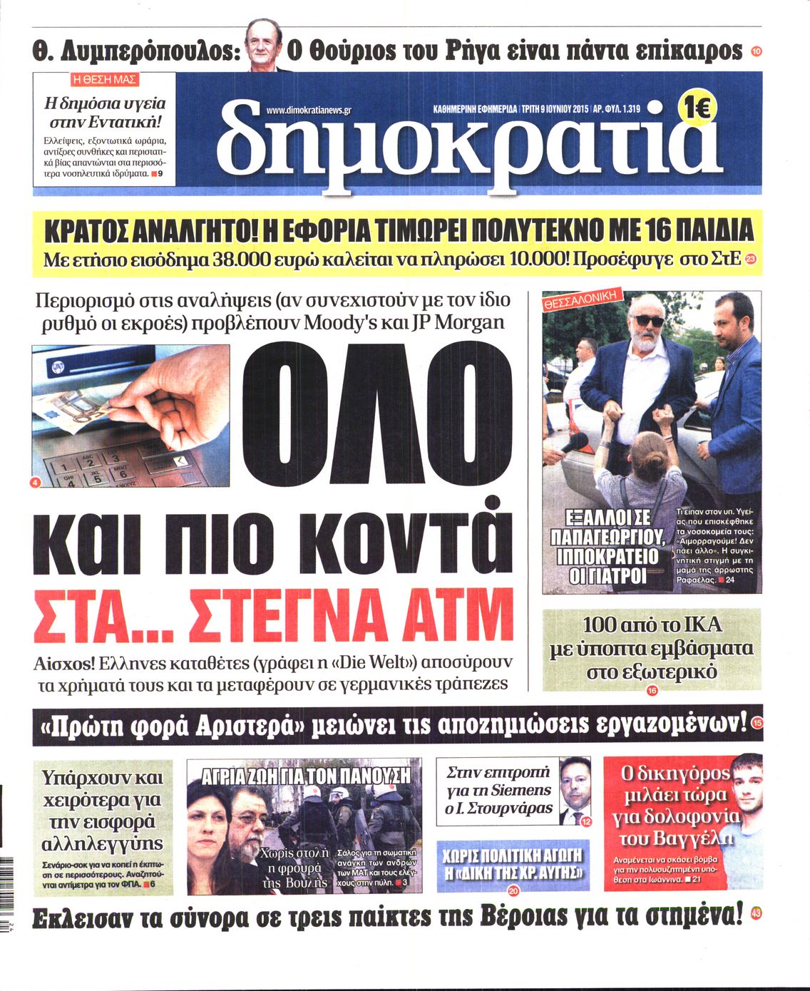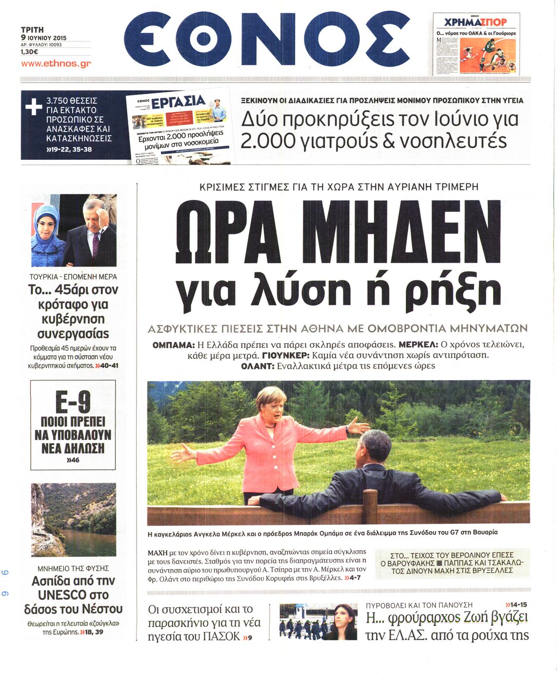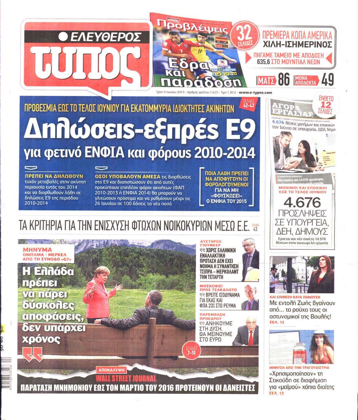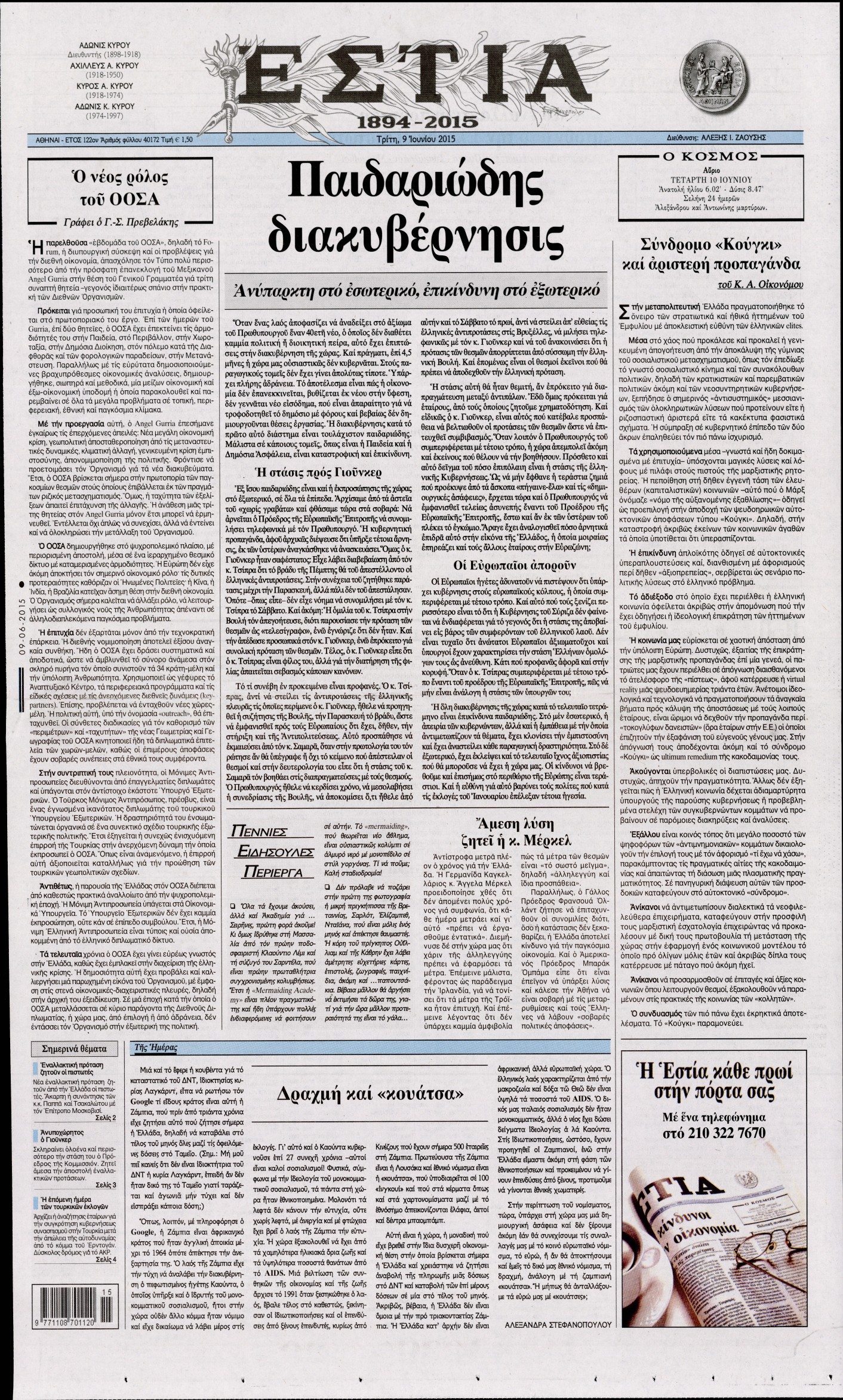 Οι πολιτικές εφημερίδες 9/6/2015 Enikos Newsroom 07:12, Τρίτη 09 Ιουνίου 2015 Media Διαβάστε τα σημερινά πρωτοσέλιδα των πολιτικών εφημερίδων: ΠΟΛΙΤΙΚΕΣ ΕΦΗΜΕΡΙΔΕΣ ΠΡΩΤΟΣΕΛΙΔΑ Μοιράσου το: σχολίασε κι εσύ (0 σχόλια) Ακολουθήστε το enikos.gr στο Google News και μάθετε πρώτοι όλες τις ειδήσεις Δείτε όλες τις τελευταίες ειδήσεις από την Ελλάδα και τον Κόσμο στο enikos.gr Ειδήσεις Ροή Ειδήσεων 2 ώρες πριν Μεσόγειος: Η διαδρομή του ρωσικού τάνκερ «Qendil» και η στοχευμένη επίθεση της Ουκρανίας με drone – Ο Πούτιν προειδοποίησε για αντίποινα 2 ώρες πριν Αττική: Θρίλερ με νεκρό βρέφος 5 μηνών – Κοιμόταν στο ίδιο κρεβάτι με τους γονείς του 3 ώρες πριν Από το Ορμένιο ως τα Μάλγαρα κι από τη Σιάτιστα μέχρι τη Νίκαια: Μπλόκα σε όλη την Ελλάδα – Το Σάββατο ανοίγουν τα διόδια οι αγρότες 3 ώρες πριν «Έλληνας Εσκομπάρ»: Φωτογραφίες με τους 4 τόνους κοκαΐνης που κατασχέθηκαν από το σκάφος «Ουρανία» 4 ώρες πριν Πούτιν: Σαρκαστικά μηνύματα, παράπονα και απρόοπτα στη συνέντευξη Τύπου – Η πρόταση γάμου on air και οι ερωτήσεις για τα αγγούρια και τους… εξωγήινους 4 ώρες πριν Τα 5 ζώδια που ευνοούνται στην ερωτική ζωή τους την επόμενη εβδομάδα – «Η ενέργεια του Αιγόκερου φέρνει αγάπη και σταθερότητα» 8 ώρες πριν Ειδικός μοιράζεται 6 κόλπα για να διατηρείστε σε φόρμα με πάνω από 40 ώρες εργασίας την εβδομάδα: «Προπονηθείτε πριν από τη δουλειά, όχι μετά» 5 ώρες πριν Αυτό το έξυπνο μαθηματικό κόλπο θα μπορούσε να αλλάξει τον τρόπο με τον οποίο οι επιστήμονες μελετούν τους σεισμούς 3 ώρες πριν Κουίζ για την παλιά Αθήνα: Αναγνωρίζετε την περιοχή; Έχετε περάσει 100% από εκεί 40 δευτερόλεπτα πριν Ρούμπιο: Έχει υπάρξει πρόοδος στις συνομιλίες για την Ουκρανία – Τα τελευταία ζητήματα είναι τα πιο δύσκολα 8 λεπτά πριν Πούτιν: «Ναι, είμαι ερωτευμένος» – Βίντεο από τη σπάνια προσωπική παραδοχή του 12 λεπτά πριν Γαλλία – Shein: Υποχρεωτικός έλεγχος ηλικίας των πελατών μετά τον σάλο με τις ερωτικές κούκλες 18 λεπτά πριν Εμπλοκή και αερομαχίες με οπλισμένα τουρκικά F-16 στο Αιγαίο 26 λεπτά πριν GNTM: Απόψε ο μεγάλος τελικός για τους 4 φιναλίστ ENIKOS NETWORK Έχετε πραγματικά μεγάλη καρδιά; 10 χαρακτηριστικά όσων έχουν καλοσύνη «Η σούπερ» γρίπη εξαπλώνεται στην Ευρώπη-Στοιχεία από το ECDC για την αποτελεσματικότητα του εμβολίου Προκήρυξη ΑΣΕΠ για 397 μόνιμες προσλήψεις στο Δημόσιο: Βγήκαν τα προσωρινά αποτελέσματα – Πότε αρχίζει η υποβολή ενστάσεων Η απάντηση της κυβέρνησης στα αιτήματα των αγροτών: 16 έχουν ικανοποιηθεί, 4 βρίσκονται υπό επεξεργασία και 7 δεν είναι εφι... Χαρτογραφώντας το «σημείο χωρίς επιστροφή»: Για πρώτη φορά αποκαλύπτεται με λεπτομέρεια το ακανθώδες όριο της ατμόσφαιρας τ... Η Google καταργεί τη λειτουργία «dark web report» – Πώς θα μπορούν οι χρήστες να διαγράφουν τα δεδομένα τους περισσότερα 19:31 , Παρασκευή 19 Δεκεμβρίου 2025 GNTM: Απόψε ο μεγάλος τελικός για τους 4 φιναλίστ Έπειτα από μήνες γεμάτους μόδα, δημιουργία και έντονες αναμετρήσεις, το GNTM 2025 κορυφώνεται,... 18:11 , Παρασκευή 19 Δεκεμβρίου 2025 Το σόι σου: Ο Άρης έρχεται στην Ελλάδα για τις γιορτές των Χριστουγέννων – Τι θα δούμε στο αποψινό εορταστικό επεισόδιο Ένα απολαυστικό, εορταστικό επεισόδιο της σειράς “Το σόι σου”, γεμάτο ευτράπελα αλ... 15:15 , Παρασκευή 19 Δεκεμβρίου 2025 Την Κυριακή με τη Realnews: Ό,τι και αν αγοράσεις, σκανάρεις και κερδίζεις! Την Κυριακή με τη Realnews: Ό,τι και αν αγοράσεις, σκανάρεις και κερδίζεις! Με το PADU app, το... 08:00 , Παρασκευή 19 Δεκεμβρίου 2025 Την Κυριακή με τη Real