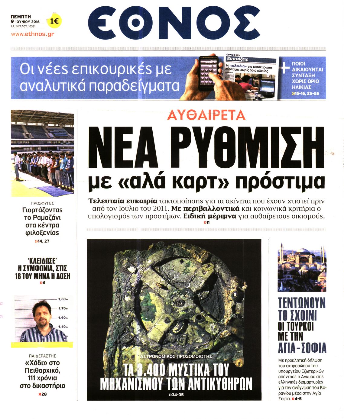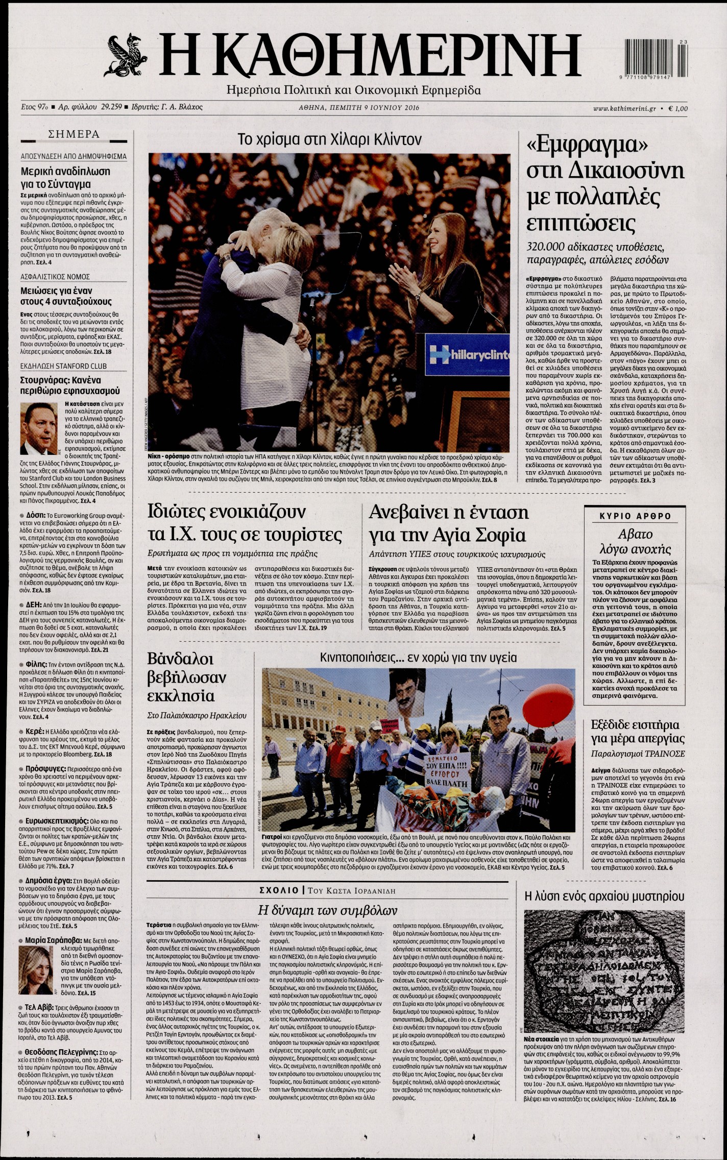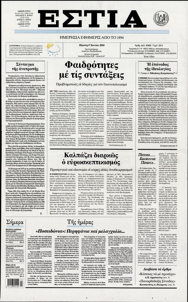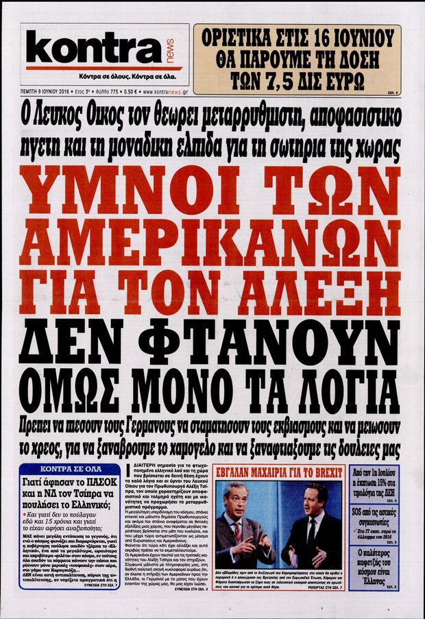 Οι πολιτικές εφημερίδες 9/6/2016 Enikos Newsroom 05:15, Πέμπτη 09 Ιουνίου 2016 Media Διαβάστε τα σημερινά πρωτοσέλιδα των πολιτικών εφημερίδων: ΠΟΛΙΤΙΚΕΣ ΕΦΗΜΕΡΙΔΕΣ ΠΡΩΤΟΣΕΛΙΔΑ Μοιράσου το: σχολίασε κι εσύ (0 σχόλια) Ακολουθήστε το enikos.gr στο Google News και μάθετε πρώτοι όλες τις ειδήσεις Δείτε όλες τις τελευταίες ειδήσεις από την Ελλάδα και τον Κόσμο στο enikos.gr Ειδήσεις Ροή Ειδήσεων 9 ώρες πριν Χριστούγεννα στα μπλόκα: Επιμένουν στις κινητοποιήσεις τους οι αγρότες – Ανοίγουν τα διόδια το Σαββατοκύριακο 2 ώρες πριν Σαρωτικοί οι έλεγχοι στους δρόμους ενόψει εορτών – Μπλόκα της τροχαίας σε κεντρικές αρτηρίες της Αττικής 9 ώρες πριν Πούτιν: Τα μηνύματα σε Ευρώπη και ΝΑΤΟ από το μαραθώνιο «σόου» του – Η απαίτηση για «σεβασμό» και η ειρήνη «με τους όρους» της Μόσχας 8 ώρες πριν ΗΠΑ: Η κυβέρνηση του Ντόναλντ Τραμπ άρχισε να δημοσιοποιεί τα αρχεία Έπσταϊν 8 ώρες πριν Άνω Λιόσια: Πυροβολισμοί σε επιχείρηση με χαλιά – Εντοπίστηκαν 10 κάλυκες 2 ώρες πριν Αυγά: Πόσα μπορείτε να τρώτε την ημέρα με ασφάλεια για μέγιστη πρόσληψη πρωτεΐνης 2 ώρες πριν Τα ζώδια σήμερα, Σάββατο 20 Δεκεμβρίου: Παρθένοι, το σύμπαν σας δίνει το κλειδί 9 ώρες πριν Ανακαλύφθηκαν αρχαία χρυσά νομίσματα 2.200 ετών που απεικονίζουν τον θεό Απόλλωνα – Η άγνωστη σύνδεση με τον Φίλιππο Β΄ της Μακεδονίας 2 ώρες πριν Οπτική ψευδαίσθηση: Μόνο αν είσαι ο Σέρλοκ Χολμς θα βρεις τον αριθμό «87» σε 7 δευτερόλεπτα 53 δευτερόλεπτα πριν Υπόθεση Έπσταϊν: Το Υπουργείο Δικαιοσύνης δημοσιοποίησε μια σειρά από εξαιρετικά επεξεργασμένα αρχεία – «Λείπουν τα πιο σημαντικά έγγραφα», λένε οι Δημοκρατικοί 4 λεπτά πριν Καιρός: Αλλαγή σκηνικού σήμερα με βροχές και πτώση της θερμοκρασίας – Οι προβλέψεις των μετεωρολόγων για τα Χριστούγεννα 11 λεπτά πριν ΟΝΕΧ – MEGATUGS: Ξεκίνησε η ναυπήγηση ρυμουλκών στην Ελλάδα – Προθάλαμος πολεμικών πλοίων – Δείτε φωτογραφίες και βίντεο 20 λεπτά πριν Φοινικούντα: Σήμερα απολογείται ο 30χρονος γιος γνωστού επιχειρηματία της Πλάκας 28 λεπτά πριν Οι αθλητικές μεταδόσεις 20/12/2025 ENIKOS NETWORK Πρέπει να αποδέχεστε ή να απορρίπτετε όλα τα cookies; Ένας ειδικός εξηγεί Η αγαπημένη λιχουδιά των πόνι που μπορεί να ενισχύσει όραση, εγκέφαλο και ανοσοποιητικό Αναστολή μέτρων αναγκαστικής εκτέλεσης για κτηνοτρόφους που πλήττονται από την ευλογιά των αιγοπροβάτων Πλήρης επάρκεια προϊόντων στις λαϊκές της Αττικής, παρά τις αγροτικές κινητοποιήσεις – Τι απαντούν οι πωλητές Χαρτογραφώντας το «σημείο χωρίς επιστροφή»: Για πρώτη φορά αποκαλύπτεται με λεπτομέρεια το ακανθώδες όριο της ατμόσφαιρας τ... Η Google καταργεί τη λειτουργία «dark web report» – Πώς θα μπορούν οι χρήστες να διαγράφουν τα δεδομένα τους περισσότερα 05:48 , Σάββατο 20 Δεκεμβρίου 2025 Οι οικονομικές εφημερίδες 20/12/2025 Διαβάστε τα πρωτοσέλιδα από τις οικονομικές εφημερίδες, σήμερα 20/12/2025. 05:43 , Σάββατο 20 Δεκεμβρίου 2025 Οι αθλητικές εφημερίδες 20/12/2025 Διαβάστε τα πρωτοσέλιδα από τις αθλητικές εφημερίδες, σήμερα 20/12/2025. 05:38 , Σάββατο 20 Δεκεμβρίου 2025 Οι πολιτικές εφημερίδες 20/12/2025 Διαβάστε τα πρωτοσέλιδα από τις πολιτικές εφημερίδες, σήμερα 20/12/2025. 04:20 , Σάββατο 20 Δεκεμβρίου 2025 Αγγελική Νικολούλη: Τα συλλυπητήρια για την απώλεια της Ειρήνης Μαρινάκη Τα συλληπητήρια στον πρόεδρο του Mega, τον Βαγγέλη Μαρινάκη, για την απώλεια της μητέρας του Ε... ΤΕΛΕΥΤΑΙΕΣ ΕΙΔΗΣΕΙΣ 54 δευτερόλεπτα πριν Υπόθεση Έπσταϊν: Το Υπουργείο Δικαιοσύνης... 4 λεπτά πριν Καιρός: Αλλαγή σκηνικού σήμερα με βροχές και 