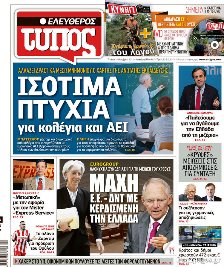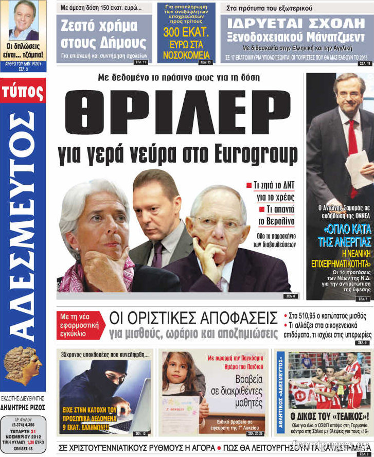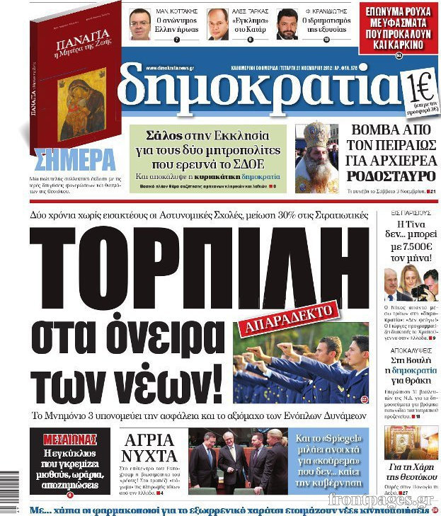 Οι πολιτικές εφημερίδες Enikos Newsroom 08:51, Τετάρτη 21 Νοεμβρίου 2012 Media Οι πολιτικές εφημερίδες Τα πρωτοσέλιδα των πολιτικών εφημερίδων. ΕΦΗΜΕΡΙΔΕΣ ΠΟΛΙΤΙΚΕΣ ΕΦΗΜΕΡΙΔΕΣ ΠΡΩΤΟΣΕΛΙΔΑ Μοιράσου το: σχολίασε κι εσύ (0 σχόλια) Ακολουθήστε το enikos.gr στο Google News και μάθετε πρώτοι όλες τις ειδήσεις Δείτε όλες τις τελευταίες ειδήσεις από την Ελλάδα και τον Κόσμο στο enikos.gr Ειδήσεις Ροή Ειδήσεων 2 ώρες πριν «Βιολάντα:» Οι ανατριχιαστικοί διάλογοι λίγες ώρες πριν από την φονική έκρηξη για «μυρωδιά σαν υγραέριο» – «Μου έλεγαν ότι δεν ήταν κάτι ανησυχητικό» κατέθεσε ο υπεύθυνος βάρδιας 3 ώρες πριν Ο Κυριάκος Μητσοτάκης ανοίγει τα χαρτιά του για τη Συνταγματική Αναθεώρηση – Στο τραπέζι και η μονιμότητα των δημοσίων υπαλλήλων 1 ώρα πριν Νέα Πέραμος: Προσπάθησαν να κάψουν το πτώμα του 27χρονου – Οι έρευνες στο εργασιακό του περιβάλλον και η εκτέλεση «καρμπόν» πριν από 2 χρόνια στη Μάνδρα 2 ώρες πριν Κακοκαιρία: Νέο έκτακτο δελτίο της ΕΜΥ – Σε ποιες περιοχές θα συνεχιστούν τα έντονα φαινόμενα 1 ώρα πριν Γκίλφοϊλ: Προανήγγειλε επίσκεψη Τραμπ στην Ελλάδα – «Ελπίζω να έρθει και η Μελάνια» 3 ώρες πριν Αριθμολογία: Οι 3 «καταραμένες» διευθύνσεις σπιτιού – «Τα νούμερα αυτά συνδέονται με αναταραχές και αρνητική ενέργεια» 4 ώρες πριν Τα 11 ψέματα που λένε πάντα οι άνδρες για να σας πείσουν ότι έχετε εσείς το πρόβλημα 2 ώρες πριν Ύπνος: Γιατί πρέπει να κοιμάστε με την πόρτα του υπνοδωματίου σας κλειστή 1 ώρα πριν Στο φως η θρυλική πόλη που ίδρυσε ο Μέγας Αλέξανδρος στο Ιράκ – Το «φάντασμα» του Τίγρη αποκαλύπτεται 14 λεπτά πριν Ο πρόεδρος Τραμπ βλέπει μια συμφωνία με την Κούβα μετά τις απειλές 36 λεπτά πριν ΑΕΚ – Ολυμπιακός 1-1: Ισοπαλία στο ντέρμπι με πέναλτυ στο 90+16′ για τους Πειραιώτες – Έντονες διαμαρτυρίες των γηπεδούχων 49 λεπτά πριν Επίδομα παιδιού 2026: Πότε ανοίγει η πλατφόρμα για τις νέες αιτήσεις – Τι πρέπει να γνωρίζετε 1 ώρα πριν Στο φως η θρυλική πόλη που ίδρυσε ο Μέγας Αλέξανδρος στο Ιράκ – Το «φάντασμα» του Τίγρη αποκαλύπτεται 1 ώρα πριν Νέα Πέραμος: Προσπάθησαν να κάψουν το πτώμα του 27χρονου – Οι έρευνες στο εργασιακό του περιβάλλον και η εκτέλεση «καρμπόν» πριν από 2 χρόνια στη Μάνδρα ENIKOS NETWORK Γελάτε, κλαίτε ή ανοίγει η μύτη σας μετά τον οργασμό – Πού οφείλεται, σύμφωνα με μελέτη; Πώς να ξεφορτωθείτε τις σακούλες κάτω από τα μάτια – Tips που δουλεύουν Τη Δευτέρα οι ανακοινώσεις του Κυριάκου Μητσοτάκη για τη συνταγματική αναθεώρηση – Ποια άρθρα θα προτείνει να αλλάξουν Ο καιρός της Δευτέρας: Ισχυρές καταιγίδες και χιονοπτώσεις – Σε ποιες περιοχές χρειάζεται προσοχή Σπαζοκεφαλιά: Βρες πόσα 9 υπάρχουν στην εικόνα σε 8 δευτερόλεπτα Τεστ IQ: Μπορείς να εντοπίσεις τον αριθμό 999 ανάμεσα στα 99Q σε 15 δευτερόλεπτα; περισσότερα 17:13 , Κυριακή 01 Φεβρουαρίου 2026 Σία Κοσιώνη: Το πρώτο μήνυμα μετά την περιπέτεια με την υγεία της – «Τα καταφέραμε» Για έναν δύσκολο Ιανουάριο που της φάνηκε σαν ένας ολόκληρος χρόνος κάνει λόγο η Σία Κοσιώνη σ... 15:05 , Κυριακή 01 Φεβρουαρίου 2026 Από Ήλιο σε Ήλιο: Πότε κάνει τελικά πρεμιέρα η νέα σειρά της ΕΡΤ1; Το αρχικό πλάνο και η μετακίνηση της προβολής. Της Νάντιας Ρηγάτου Μπορεί η Μεγάλη Χίμαιρα να ... 15:04 , Κυριακή 01 Φεβρουαρίου 2026 Στο real taste & style που κυκλοφορεί με τη Realnews Στο real taste & style που κυκλοφορεί με τη Realnews. Τον Φεβρουάριο, η πατάτα βγαίνει μπρ... 13:47 , Κυριακή 01 Φεβρουαρίου 2026 Άγιος Έρωτας: Ο πατέρας Νικόλαος και η Χλόη παραδίνονται στον έρωτα – ‘Ολες οι εξ