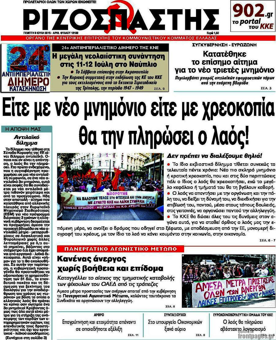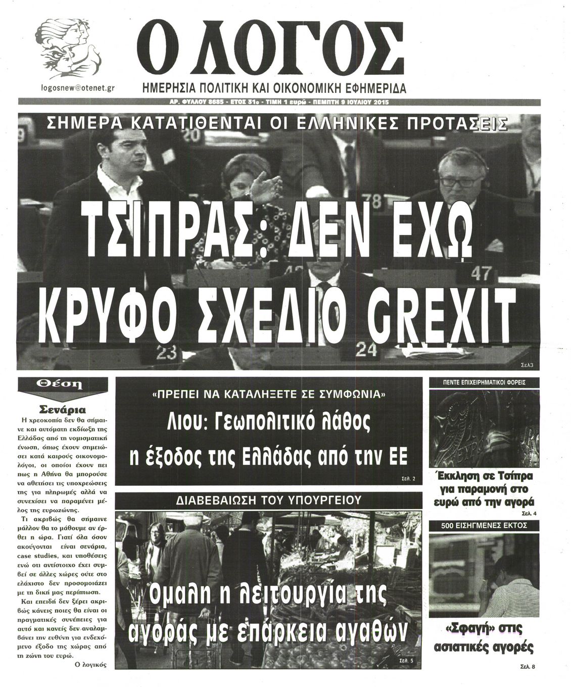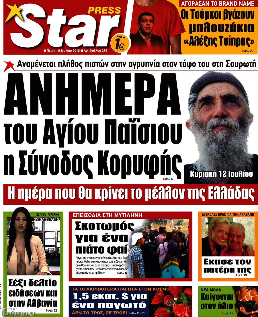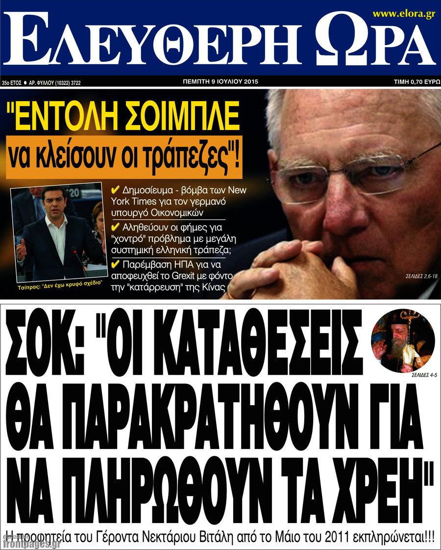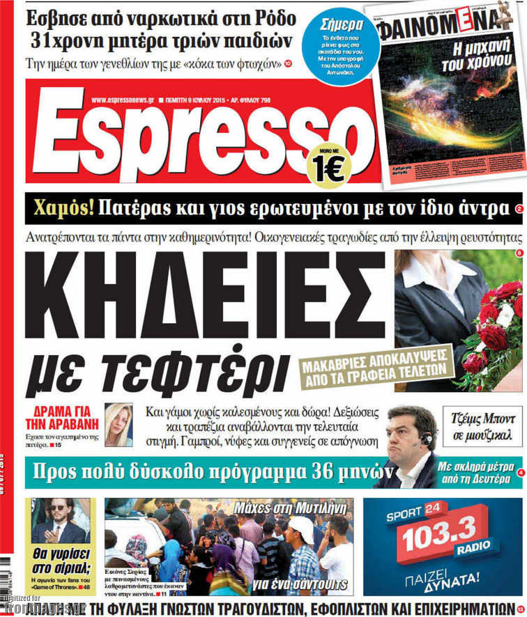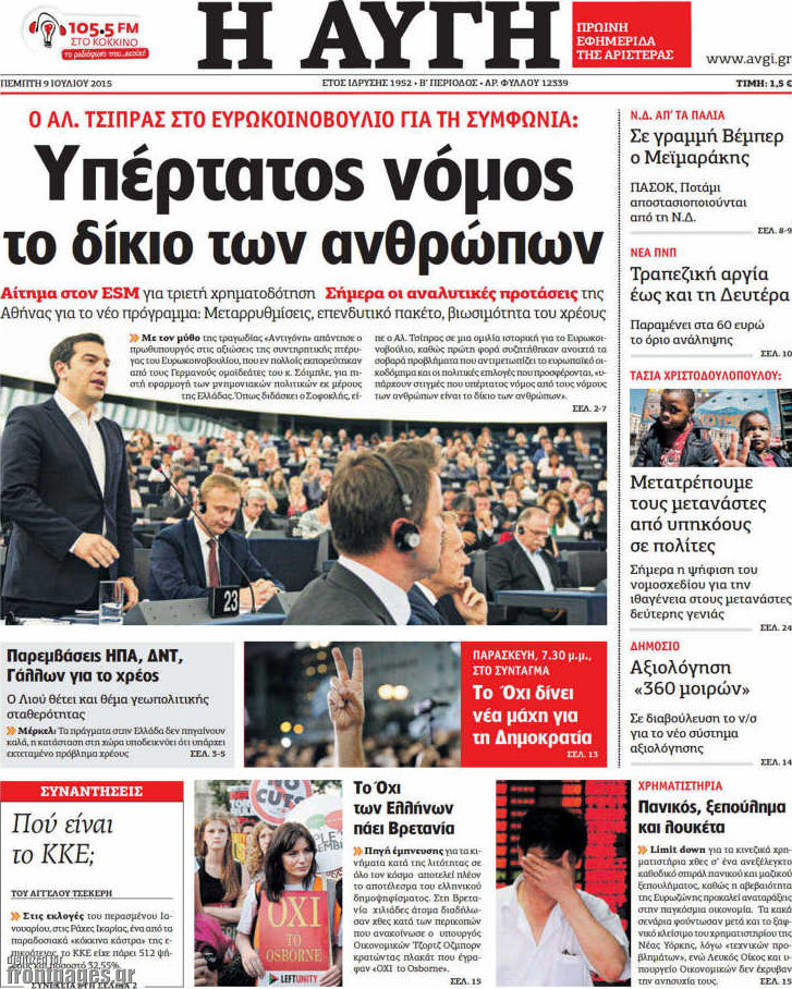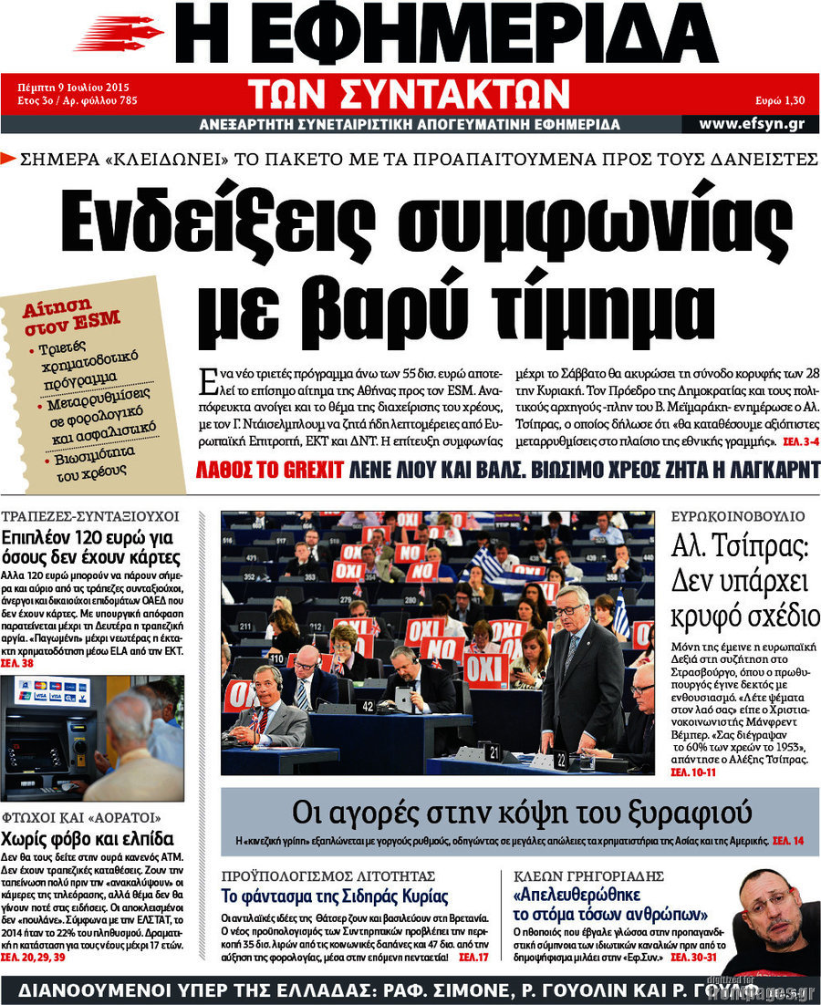 Οι πολιτικές εφημερίδες 9/7/2015 Enikos Newsroom 08:28, Πέμπτη 09 Ιουλίου 2015 Media Διαβάστε τα σημερινά πρωτοσέλιδα των σημερινών πολιτικών εφημερίδων: ΠΟΛΙΤΙΚΕΣ ΕΦΗΜΕΡΙΔΕΣ ΠΡΩΤΟΣΕΛΙΔΑ Μοιράσου το: σχολίασε κι εσύ (0 σχόλια) Ακολουθήστε το enikos.gr στο Google News και μάθετε πρώτοι όλες τις ειδήσεις Δείτε όλες τις τελευταίες ειδήσεις από την Ελλάδα και τον Κόσμο στο enikos.gr Ειδήσεις Ροή Ειδήσεων 28 λεπτά πριν «Έλληνας Εσκομπάρ»: Φωτογραφίες με τους 4 τόνους κοκαΐνης που κατασχέθηκαν από το σκάφος «Ουρανία» 3 ώρες πριν Η Ουκρανία χτύπησε τάνκερ του σκιώδους στόλου της Ρωσίας στη Μεσόγειο – Έπλεε νότια της Κρήτης 2 ώρες πριν Πούτιν: Σαρκαστικά μηνύματα, παράπονα και απρόοπτα στη συνέντευξη Τύπου – Η πρόταση γάμου on air και οι ερωτήσεις για τα αγγούρια και τους… εξωγήινους 2 ώρες πριν Η απάντηση της κυβέρνησης στα αιτήματα των αγροτών: 16+4 υλοποιούνται ή βρίσκονται υπό επεξεργασία για να βρεθεί λύση – 7 δεν μπορούν να επιλυθούν 3 ώρες πριν Εξώδικο επιχειρηματία στον Γιώργο Μαζωνάκη – Τι απαντά στις καταγγελίες του τραγουδιστή 1 ώρα πριν Τα 5 ζώδια που ευνοούνται στην ερωτική ζωή τους την επόμενη εβδομάδα – «Η ενέργεια του Αιγόκερου φέρνει αγάπη και σταθερότητα» 6 ώρες πριν Γεμάτος νεροχύτης; 5 σοβαρές ευθύνες που «φοβίζουν» όσους αφήνουν άπλυτα πιάτα 5 ώρες πριν Ειδικός μοιράζεται 6 κόλπα για να διατηρείστε σε φόρμα με πάνω από 40 ώρες εργασίας την εβδομάδα: «Προπονηθείτε πριν από τη δουλειά, όχι μετά» 2 ημέρες πριν 20 χρόνια τα Χριστούγεννα ξεκινούν στα Public με μεγάλη ποικιλία σε δώρα! 4 λεπτά πριν ΥΠΑΑΤ: Αναστολή μέτρων αναγκαστικής εκτέλεσης για κτηνοτρόφους που πλήττονται από την ευλογιά των αιγοπροβάτων 8 λεπτά πριν Γαλλία: Ξαφνική «επίσκεψη» των αγροτών στο σπίτι του Μακρόν – Πέταξαν κοπριά, λάχανα, λάστιχα και άφησαν ένα φέρετρο – ΒΙΝΤΕΟ 14 λεπτά πριν Από το Ορμένιο ως τα Μάλγαρα κι από τη Σιάτιστα μέχρι τη Νίκαια: Μπλόκα σε όλη την Ελλάδα – Το Σάββατο ανοίγουν τα διόδια οι αγρότες 15 λεπτά πριν Ταϊβάν: 3 νεκροί έπειτα από επίθεση άνδρα με μαχαίρι – Ο δράστης σκοτώθηκε σε αστυνομική καταδίωξη – ΒΙΝΤΕΟ 19 λεπτά πριν Άρης Μουγκοπέτρος για τα προσθετικά μέλη: «Οι κόρες μου ήρθαν, μου χαϊδέψαν το χέρι και μου είπαν “μπαμπά το μιμί πέρασε”» ENIKOS NETWORK ΕΛΣΤΑΤ: Αύξηση κατά 1,7% των επαγγελματιών υγείας το 2024 Τάξη στις ιατρικές διαφημίσεις για την προστασία των πολιτών βάζει ο ΙΣΑ Μετρό: Ενισχύονται τα δρομολόγια – Δείτε ποιες ημέρες Παπαθανάσης για νέο Εθνικό Πρόγραμμα Ανάπτυξης 2026-2030: Είναι υπερδιπλάσιο από αυτό της προηγούμενης προγραμματικής περιό... Χαρτογραφώντας το «σημείο χωρίς επιστροφή»: Για πρώτη φορά αποκαλύπτεται με λεπτομέρεια το ακανθώδες όριο της ατμόσφαιρας τ... Η Google καταργεί τη λειτουργία «dark web report» – Πώς θα μπορούν οι χρήστες να διαγράφουν τα δεδομένα τους περισσότερα 15:15 , Παρασκευή 19 Δεκεμβρίου 2025 Την Κυριακή με τη Realnews: Ό,τι και αν αγοράσεις, σκανάρεις και κερδίζεις! Την Κυριακή με τη Realnews: Ό,τι και αν αγοράσεις, σκανάρεις και κερδίζεις! Με το PADU app, το... 08:00 , Παρασκευή 19 Δεκεμβρίου 2025 Την Κυριακή με τη Realnews: Δωροεπιταγή 10€ Δωροεπιταγή αξίας 10€ για αγορές άνω των 60€ από τα πολυκαταστήματα FactoryOutlet H προσφορά ι... 05:48 , Παρασκευή 19 Δεκεμβρίου 2025 Οι οικονομικές εφημερίδες 19/12/2025 Διαβάστε τα πρωτοσέλιδα από τις οικονομικές εφημερίδες, σήμερα 19/12/2025. 05:43 , Παρασκευή 19 Δεκεμβρίου 2025 Οι αθλητικές εφημερίδες 19/12/2025 Διαβάστε τα πρωτοσέλιδα από τις αθλητικές εφημερίδες, σή
