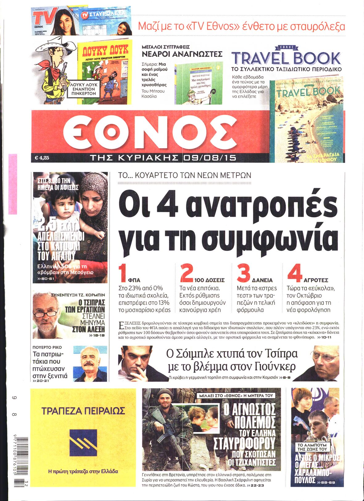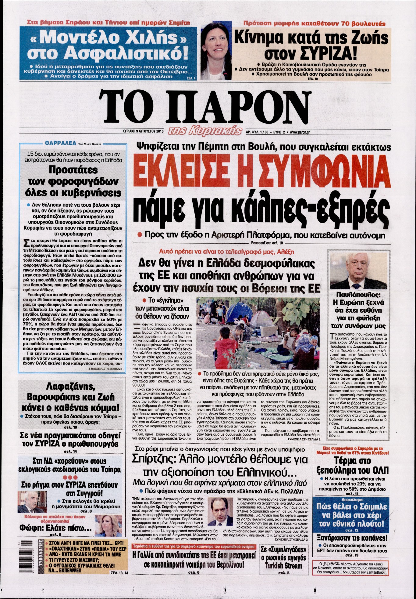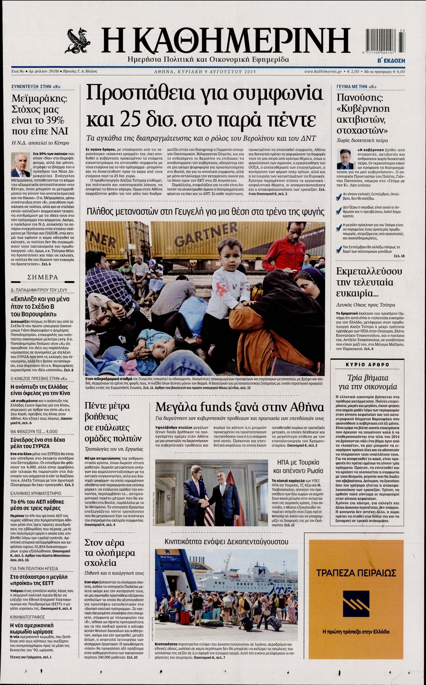 Οι πολιτικές εφημερίδες 9/8/2015 Enikos Newsroom 06:45, Κυριακή 09 Αυγούστου 2015 Media Διαβάστε τα σημερινά πρωτοσέλιδα των πολιτικών εφημερίδων: ΠΟΛΙΤΙΚΕΣ ΕΦΗΜΕΡΙΔΕΣ ΠΡΩΤΟΣΕΛΙΔΑ Μοιράσου το: σχολίασε κι εσύ (0 σχόλια) Ακολουθήστε το enikos.gr στο Google News και μάθετε πρώτοι όλες τις ειδήσεις Δείτε όλες τις τελευταίες ειδήσεις από την Ελλάδα και τον Κόσμο στο enikos.gr Ειδήσεις Ροή Ειδήσεων 45 λεπτά πριν Χριστούγεννα στα μπλόκα: Επιμένουν στις κινητοποιήσεις τους οι αγρότες – Ανοίγουν τα διόδια το Σαββατοκύριακο 1 ώρα πριν Ουκρανία: Η άνευ προηγουμένου επίθεση σε ρωσικό τάνκερ στη Μεσόγειο και το μήνυμα προς στον Πούτιν – Το «μακρύ χέρι» του Κιέβου 22 λεπτά πριν Πούτιν: Τα μηνύματα σε Ευρώπη και ΝΑΤΟ από το μαραθώνιο «σόου» του – Η απαίτηση για «σεβασμό» και η ειρήνη «με τους όρους» της Μόσχας 1 ώρα πριν Τραμπ: Δεν αποκλείει την πιθανότητα ενός πολέμου στη Βενεζουέλα – «Ο Μαδούρο ξέρει καλύτερα από τον καθένα τι ακριβώς θέλω» 2 ώρες πριν Συνεχίζει να προκαλεί ο Μίτσκοσκι: «Για μένα το όνομα Μακεδονία είναι ιερό» 4 ώρες πριν Πούτιν: «Ναι, είμαι ερωτευμένος» – Βίντεο από τη σπάνια προσωπική παραδοχή του 2 ώρες πριν Αριθμολογία: Οι άνθρωποι που έχουν γεννηθεί αυτές τις 4 ημερομηνίες, συχνά παρεξηγούνται – «Η καλοσύνη τους κρύβει τεράστια δύναμη» 1 ώρα πριν Ύπνος: Μια κρυφή κατάσταση του εγκεφάλου πριν από τον ύπνο μπορεί να είναι το “κλειδί” για υψηλή ευφυΐα και δημιουργικότητα 3 ώρες πριν Ξεχάστε το καθάρισμα το Σαββατοκύριακο: Ο «κανόνας των 20 λεπτών» που θα σας λύσει τα χέρια 24 λεπτά πριν Ανακαλύφθηκαν αρχαία χρυσά νομίσματα 2.200 ετών που απεικονίζουν τον θεό Απόλλωνα – Η άγνωστη σύνδεση με τον Φίλιππο Β΄ της Μακεδονίας 8 λεπτά πριν Ολυμπιακός – Βιλερμπάν 107-84: Επιστροφή στις νίκες με… προπόνηση 13 λεπτά πριν Νέος Κόσμος: Συνελήφθη 41χρονος με ένταλμα από την Τουρκία για εμπόριο ναρκωτικών και ληστεία 22 λεπτά πριν Πούτιν: Τα μηνύματα σε Ευρώπη και ΝΑΤΟ από το μαραθώνιο «σόου» του – Η απαίτηση για «σεβασμό» και η ειρήνη «με τους όρους» της Μόσχας 24 λεπτά πριν Ανακαλύφθηκαν αρχαία χρυσά νομίσματα 2.200 ετών που απεικονίζουν τον θεό Απόλλωνα – Η άγνωστη σύνδεση με τον Φίλιππο Β΄ της Μακεδονίας 28 λεπτά πριν Νίκος Ξυλούρης: Συγκινεί η χήρα του σπουδαίου καλλιτέχνη – «Ευχαριστώ όλο τον κόσμο που τον κρατάει ζωντανό 45 χρόνια» ENIKOS NETWORK Το ΕΚΑΒ τιμήθηκε από την Ακαδημία Αθηνών για τα 40 χρόνια προσφοράς του Έχετε πραγματικά μεγάλη καρδιά; 10 χαρακτηριστικά όσων έχουν καλοσύνη Αναστολή μέτρων αναγκαστικής εκτέλεσης για κτηνοτρόφους που πλήττονται από την ευλογιά των αιγοπροβάτων Πλήρης επάρκεια προϊόντων στις λαϊκές της Αττικής, παρά τις αγροτικές κινητοποιήσεις – Τι απαντούν οι πωλητές Χαρτογραφώντας το «σημείο χωρίς επιστροφή»: Για πρώτη φορά αποκαλύπτεται με λεπτομέρεια το ακανθώδες όριο της ατμόσφαιρας τ... Η Google καταργεί τη λειτουργία «dark web report» – Πώς θα μπορούν οι χρήστες να διαγράφουν τα δεδομένα τους περισσότερα 22:42 , Παρασκευή 19 Δεκεμβρίου 2025 Γιώργος Γιαννόπουλος για “Το σόι σου”: “Είναι ευτυχία και ευλογία αυτή η σειρά” «Είναι ευτυχία και ευλογία η συγκυρία αυτής της σειράς», θα πει ο Γιώργος Γιαννόπουλος -ο αγαπ... 20:37 , Παρασκευή 19 Δεκεμβρίου 2025 Don’t Forget The Lyrics: Η Έλλη Κοκκίνου υποδέχεται 4 παίκτες που θα κάνουν τα πάντα για να μη χάσουν ούτε… μισή λέξη από τους στίχους Το «Don’t Forget The Lyrics» επιστρέφει απόψε, Παρασκευή 19 Δεκεμβρίου, στις 21:00 με νέο επει... 19:31 , Παρασκευή