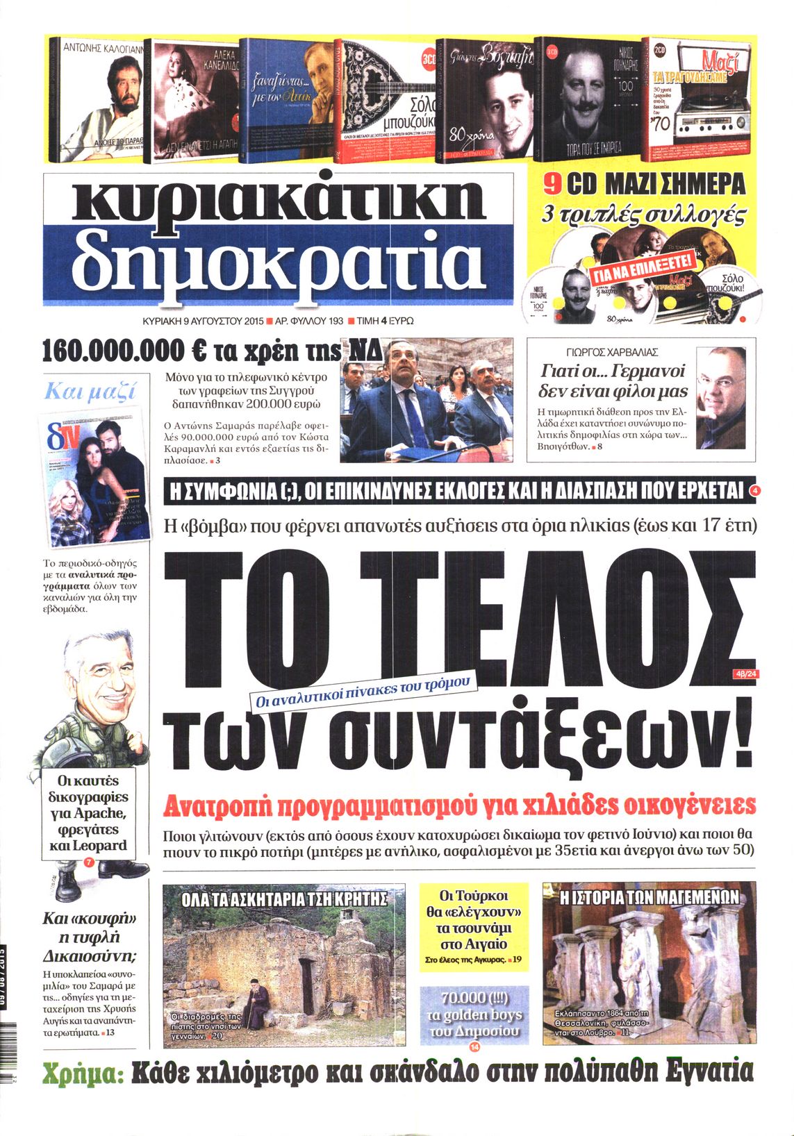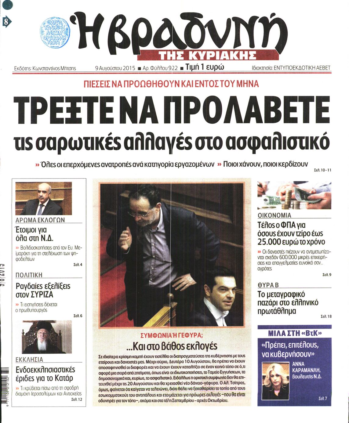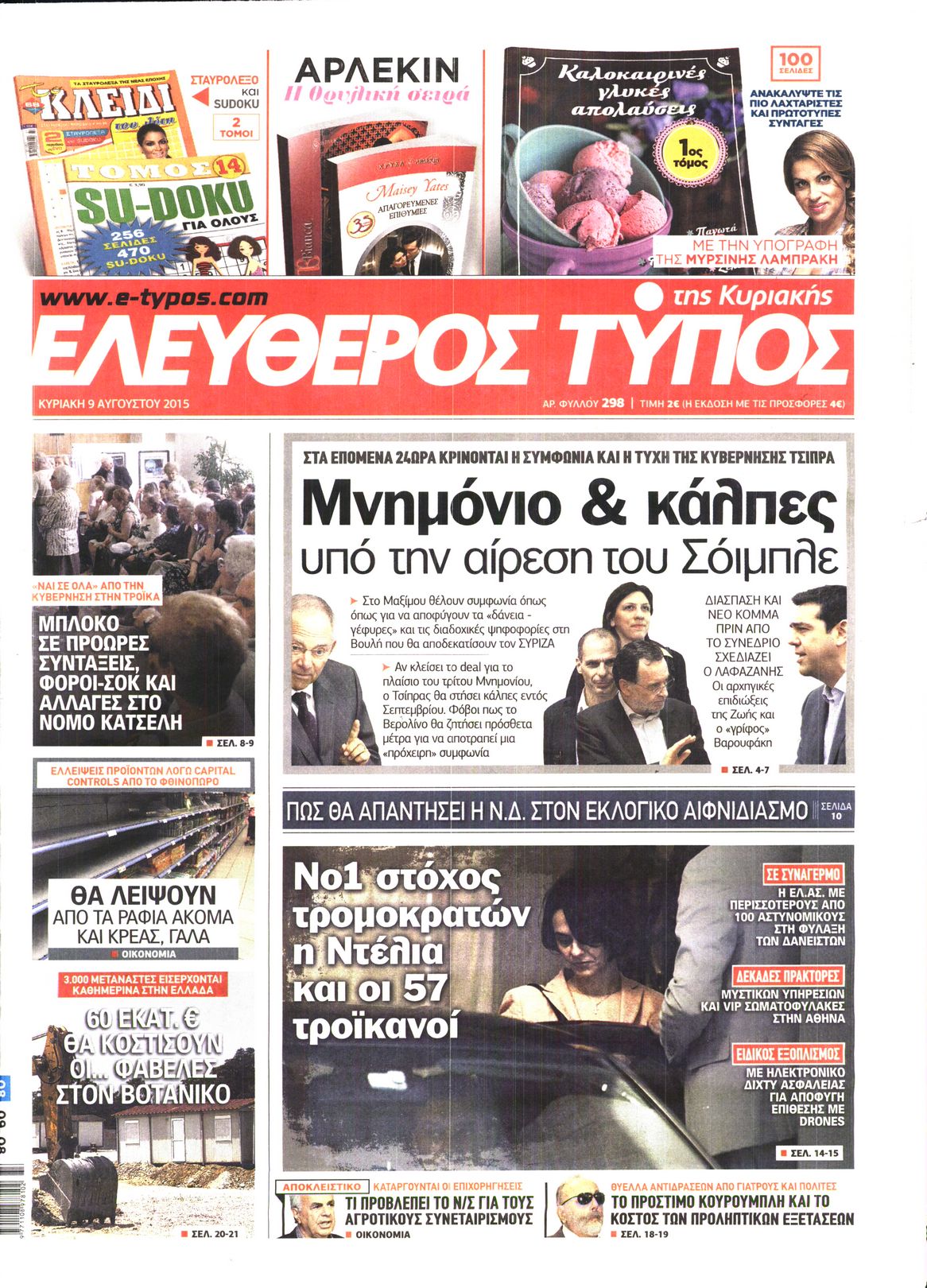 Οι πολιτικές εφημερίδες 9/8/2015 Enikos Newsroom 06:45, Κυριακή 09 Αυγούστου 2015 Media Διαβάστε τα σημερινά πρωτοσέλιδα των πολιτικών εφημερίδων: ΠΟΛΙΤΙΚΕΣ ΕΦΗΜΕΡΙΔΕΣ ΠΡΩΤΟΣΕΛΙΔΑ Μοιράσου το: σχολίασε κι εσύ (0 σχόλια) Ακολουθήστε το enikos.gr στο Google News και μάθετε πρώτοι όλες τις ειδήσεις Δείτε όλες τις τελευταίες ειδήσεις από την Ελλάδα και τον Κόσμο στο enikos.gr Ειδήσεις Ροή Ειδήσεων 45 λεπτά πριν Χριστούγεννα στα μπλόκα: Επιμένουν στις κινητοποιήσεις τους οι αγρότες – Ανοίγουν τα διόδια το Σαββατοκύριακο 1 ώρα πριν Ουκρανία: Η άνευ προηγουμένου επίθεση σε ρωσικό τάνκερ στη Μεσόγειο και το μήνυμα προς στον Πούτιν – Το «μακρύ χέρι» του Κιέβου 22 λεπτά πριν Πούτιν: Τα μηνύματα σε Ευρώπη και ΝΑΤΟ από το μαραθώνιο «σόου» του – Η απαίτηση για «σεβασμό» και η ειρήνη «με τους όρους» της Μόσχας 1 ώρα πριν Τραμπ: Δεν αποκλείει την πιθανότητα ενός πολέμου στη Βενεζουέλα – «Ο Μαδούρο ξέρει καλύτερα από τον καθένα τι ακριβώς θέλω» 2 ώρες πριν Συνεχίζει να προκαλεί ο Μίτσκοσκι: «Για μένα το όνομα Μακεδονία είναι ιερό» 4 ώρες πριν Πούτιν: «Ναι, είμαι ερωτευμένος» – Βίντεο από τη σπάνια προσωπική παραδοχή του 2 ώρες πριν Αριθμολογία: Οι άνθρωποι που έχουν γεννηθεί αυτές τις 4 ημερομηνίες, συχνά παρεξηγούνται – «Η καλοσύνη τους κρύβει τεράστια δύναμη» 1 ώρα πριν Ύπνος: Μια κρυφή κατάσταση του εγκεφάλου πριν από τον ύπνο μπορεί να είναι το “κλειδί” για υψηλή ευφυΐα και δημιουργικότητα 3 ώρες πριν Ξεχάστε το καθάρισμα το Σαββατοκύριακο: Ο «κανόνας των 20 λεπτών» που θα σας λύσει τα χέρια 24 λεπτά πριν Ανακαλύφθηκαν αρχαία χρυσά νομίσματα 2.200 ετών που απεικονίζουν τον θεό Απόλλωνα – Η άγνωστη σύνδεση με τον Φίλιππο Β΄ της Μακεδονίας 8 λεπτά πριν Ολυμπιακός – Βιλερμπάν 107-84: Επιστροφή στις νίκες με… προπόνηση 13 λεπτά πριν Νέος Κόσμος: Συνελήφθη 41χρονος με ένταλμα από την Τουρκία για εμπόριο ναρκωτικών και ληστεία 22 λεπτά πριν Πούτιν: Τα μηνύματα σε Ευρώπη και ΝΑΤΟ από το μαραθώνιο «σόου» του – Η απαίτηση για «σεβασμό» και η ειρήνη «με τους όρους» της Μόσχας 24 λεπτά πριν Ανακαλύφθηκαν αρχαία χρυσά νομίσματα 2.200 ετών που απεικονίζουν τον θεό Απόλλωνα – Η άγνωστη σύνδεση με τον Φίλιππο Β΄ της Μακεδονίας 28 λεπτά πριν Νίκος Ξυλούρης: Συγκινεί η χήρα του σπουδαίου καλλιτέχνη – «Ευχαριστώ όλο τον κόσμο που τον κρατάει ζωντανό 45 χρόνια» ENIKOS NETWORK Το ΕΚΑΒ τιμήθηκε από την Ακαδημία Αθηνών για τα 40 χρόνια προσφοράς του Έχετε πραγματικά μεγάλη καρδιά; 10 χαρακτηριστικά όσων έχουν καλοσύνη Αναστολή μέτρων αναγκαστικής εκτέλεσης για κτηνοτρόφους που πλήττονται από την ευλογιά των αιγοπροβάτων Πλήρης επάρκεια προϊόντων στις λαϊκές της Αττικής, παρά τις αγροτικές κινητοποιήσεις – Τι απαντούν οι πωλητές Χαρτογραφώντας το «σημείο χωρίς επιστροφή»: Για πρώτη φορά αποκαλύπτεται με λεπτομέρεια το ακανθώδες όριο της ατμόσφαιρας τ... Η Google καταργεί τη λειτουργία «dark web report» – Πώς θα μπορούν οι χρήστες να διαγράφουν τα δεδομένα τους περισσότερα 22:42 , Παρασκευή 19 Δεκεμβρίου 2025 Γιώργος Γιαννόπουλος για “Το σόι σου”: “Είναι ευτυχία και ευλογία αυτή η σειρά” «Είναι ευτυχία και ευλογία η συγκυρία αυτής της σειράς», θα πει ο Γιώργος Γιαννόπουλος -ο αγαπ... 20:37 , Παρασκευή 19 Δεκεμβρίου 2025 Don’t Forget The Lyrics: Η Έλλη Κοκκίνου υποδέχεται 4 παίκτες που θα κάνουν τα πάντα για να μη χάσουν ούτε… μισή λέξη από τους στίχους Το «Don’t Forget The Lyrics» επιστρέφει απόψε, Παρασκευή 19 Δεκεμβρίου, στις 21:00 με νέο επει... 19:31 , Παρασκευή