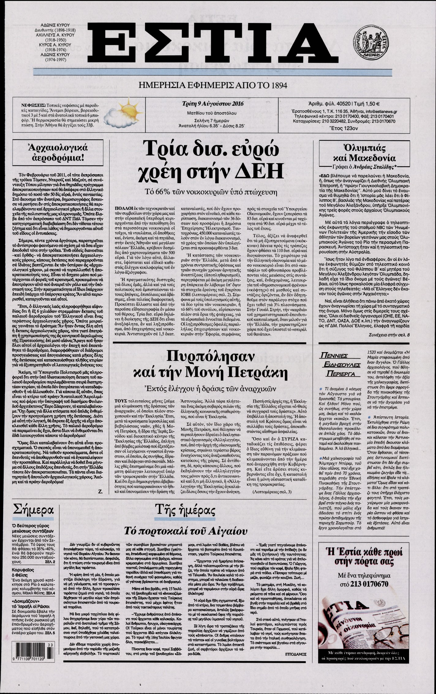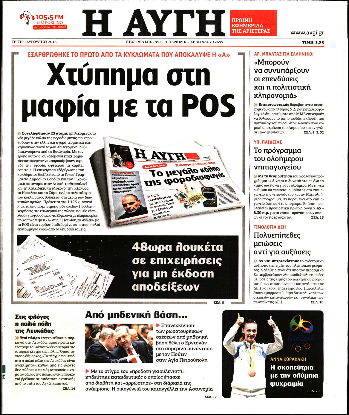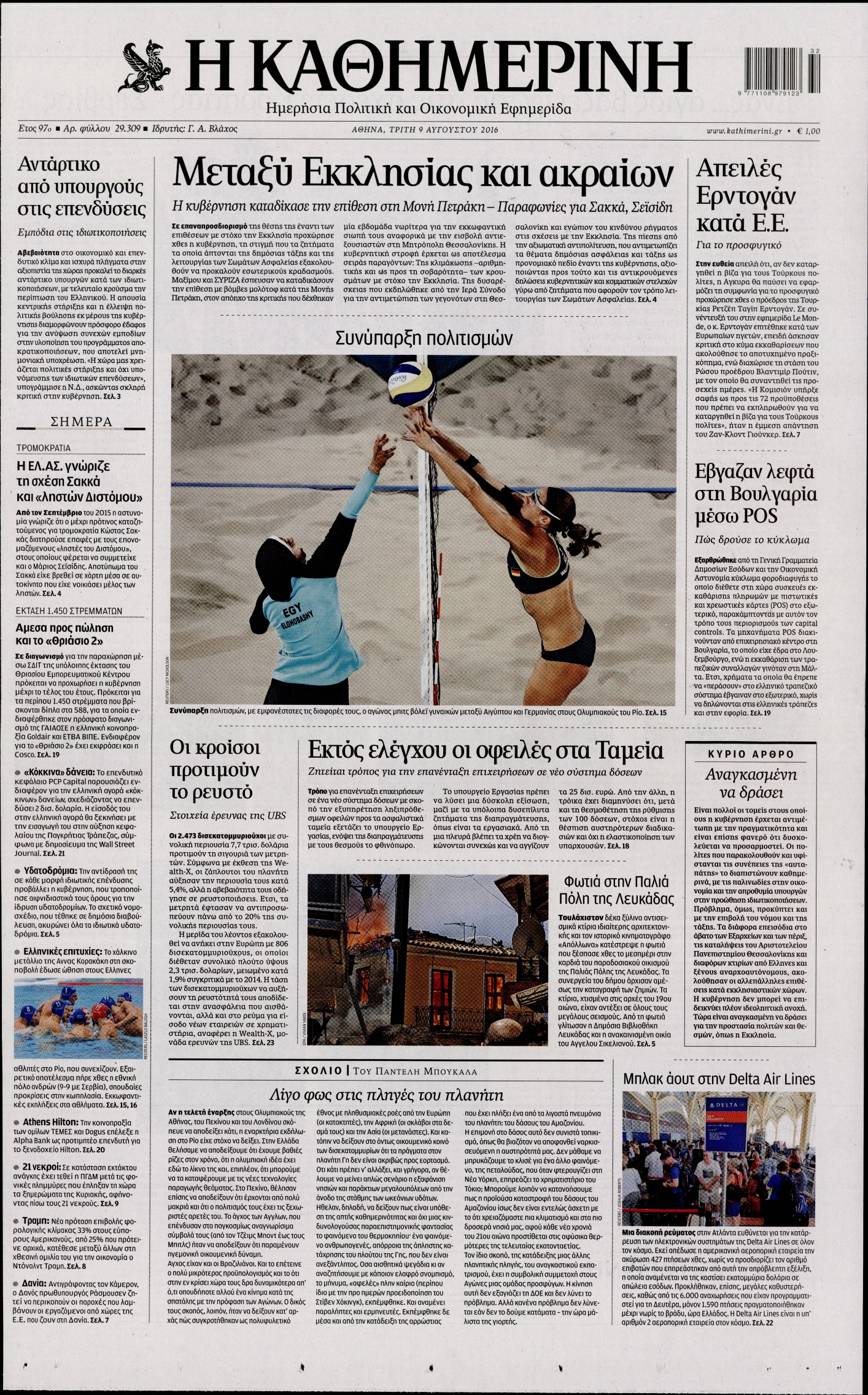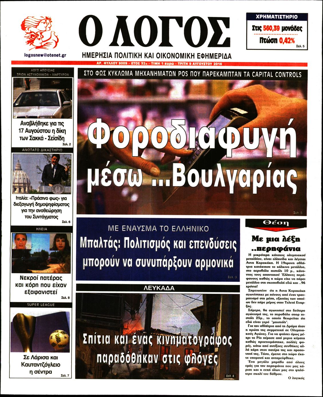 Oι πολιτικές εφημερίδες 9/8/2016 Enikos Newsroom 06:45, Τρίτη 09 Αυγούστου 2016 Media Διαβάστε τα σημερινά πρωτοσέλιδα των πολιτικών εφημερίδων: ΠΡΩΤΟΣΕΛΙΔΑ Μοιράσου το: σχολίασε κι εσύ (0 σχόλια) Ακολουθήστε το enikos.gr στο Google News και μάθετε πρώτοι όλες τις ειδήσεις Δείτε όλες τις τελευταίες ειδήσεις από την Ελλάδα και τον Κόσμο στο enikos.gr Ειδήσεις Ροή Ειδήσεων 26 λεπτά πριν Αγρότες: Πολύωροι αποκλεισμοί στα τελωνεία Προμαχώνα, Εξοχής, Ευζώνων και Νίκης – Κλείνουν τον κόμβο Φιλώτα οι παραγωγοί στη Δυτική Μακεδονία 2 ώρες πριν Ευρωπαϊκό Συμβούλιο: Όλες οι λεπτομέρειες για το δάνειο των 90 δισ. ευρώ στην Ουκρανία – Τα συμπεράσματα της Συνόδου Κορυφής 1 ώρα πριν Αίγιο: 22χρονη κατήγγειλε ότι έπεσε θύμα βιασμού και ληστείας από συγγενικά της πρόσωπα 2 ώρες πριν Νίκος Παππάς: Δρομολογήθηκαν οι διαδικασίες για τη διαγραφή του από τον ΣΥΡΙΖΑ μέσα στις γιορτές 1 ώρα πριν Σφοδρές βροχές και καταιγίδες πλήττουν τα Ηνωμένα Αραβικά Εμιράτα: Ακυρώσεις πτήσεων, προβλήματα στην κυκλοφορία 44 λεπτά πριν Αλλαγή σελίδας για 3 ζώδια – «Μία δύσκολη περίοδος φτάνει στο τέλος της» 3 ώρες πριν Πώς το αρχαίο DNA του κυνηγού – συλλέκτη ξεκλείδωσε τα μυστικά της μακροζωίας 2 ημέρες πριν 20 χρόνια τα Χριστούγεννα ξεκινούν στα Public με μεγάλη ποικιλία σε δώρα! 2 ώρες πριν Ο σύζυγός της συμπεριφέρεται όπως το παιδί τους – «Χρησιμοποιεί αστείες δικαιολογίες για να μην κάνει δουλειές και να ξοδεύει λεφτά» 3 λεπτά πριν Τρομακτικό βίντεο: Η στιγμή της έκρηξης στο τζετ που μετέφερε τον οδηγό του NASCAR, Γκρεγκ Μπιφλ και την οικογένειά του 14 λεπτά πριν Έρχονται νέες κακοκαιρίες από αύριο – «Παρέλαση» βαρομετρικών χαμηλών φέρνει βροχές τα Χριστούγεννα και χιόνια την Πρωτοχρονιά 19 λεπτά πριν Εργατικό δυστύχημα στην Ελασσόνα – Νεκρός 59χρονος που έπεσε από ύψος 20 μέτρων 23 λεπτά πριν Ed Sheeran: Η εντυπωσιακή αλλαγή στο σώμα του – «Κάτω από όλα αυτά είμαι ένας καπνιστής που τρώει πίτσα και πίνει μπύρα» 26 λεπτά πριν Αγρότες: Πολύωροι αποκλεισμοί στα τελωνεία Προμαχώνα, Εξοχής, Ευζώνων και Νίκης – Κλείνουν τον κόμβο Φιλώτα οι παραγωγοί στη Δυτική Μακεδονία ENIKOS NETWORK Πότε μπορεί το χλωμό δέρμα να σχετίζεται με σοβαρή νόσο Ενίσχυση του μεταβολισμού: Η Νο1 άσκηση που πρέπει να κάνουν οι γυναίκες μετά τα 35 Απειλή για τον Προϋπολογισμό τα ληξιπρόθεσμα χρέη των ιδιωτών προς την εφορία – Τι δείχνουν τα στοιχεία Συντάξεις: Οι κερδισμένοι και οι χαμένοι από τις αυξήσεις – Αναλυτικός οδηγός Χαρτογραφώντας το «σημείο χωρίς επιστροφή»: Για πρώτη φορά αποκαλύπτεται με λεπτομέρεια το ακανθώδες όριο της ατμόσφαιρας τ... Η Google καταργεί τη λειτουργία «dark web report» – Πώς θα μπορούν οι χρήστες να διαγράφουν τα δεδομένα τους περισσότερα 08:00 , Παρασκευή 19 Δεκεμβρίου 2025 Την Κυριακή με τη Realnews: Δωροεπιταγή 10€ Δωροεπιταγή αξίας 10€ για αγορές άνω των 60€ από τα πολυκαταστήματα FactoryOutlet H προσφορά ι... 05:48 , Παρασκευή 19 Δεκεμβρίου 2025 Οι οικονομικές εφημερίδες 19/12/2025 Διαβάστε τα πρωτοσέλιδα από τις οικονομικές εφημερίδες, σήμερα 19/12/2025. 05:43 , Παρασκευή 19 Δεκεμβρίου 2025 Οι αθλητικές εφημερίδες 19/12/2025 Διαβάστε τα πρωτοσέλιδα από τις αθλητικές εφημερίδες, σήμερα 19/12/2025. 05:38 , Παρασκευή 19 Δεκεμβρίου 2025 Οι πολιτικές εφημερίδες 19/12/2025 Διαβάστε τα πρωτοσέλιδα από τις πολιτικές εφημερίδες, σήμερα 19/12/2025. ΤΕΛΕΥΤΑΙΕΣ ΕΙΔΗΣΕΙΣ 3 λεπτά πριν Τρομακτικό βίντεο: Η στιγμή της έκρηξης στο τζετ που... 14 λεπτά πριν Έρχονται νέες κακοκαιρίες από αύριο – «Παρέλαση»... 19 λ