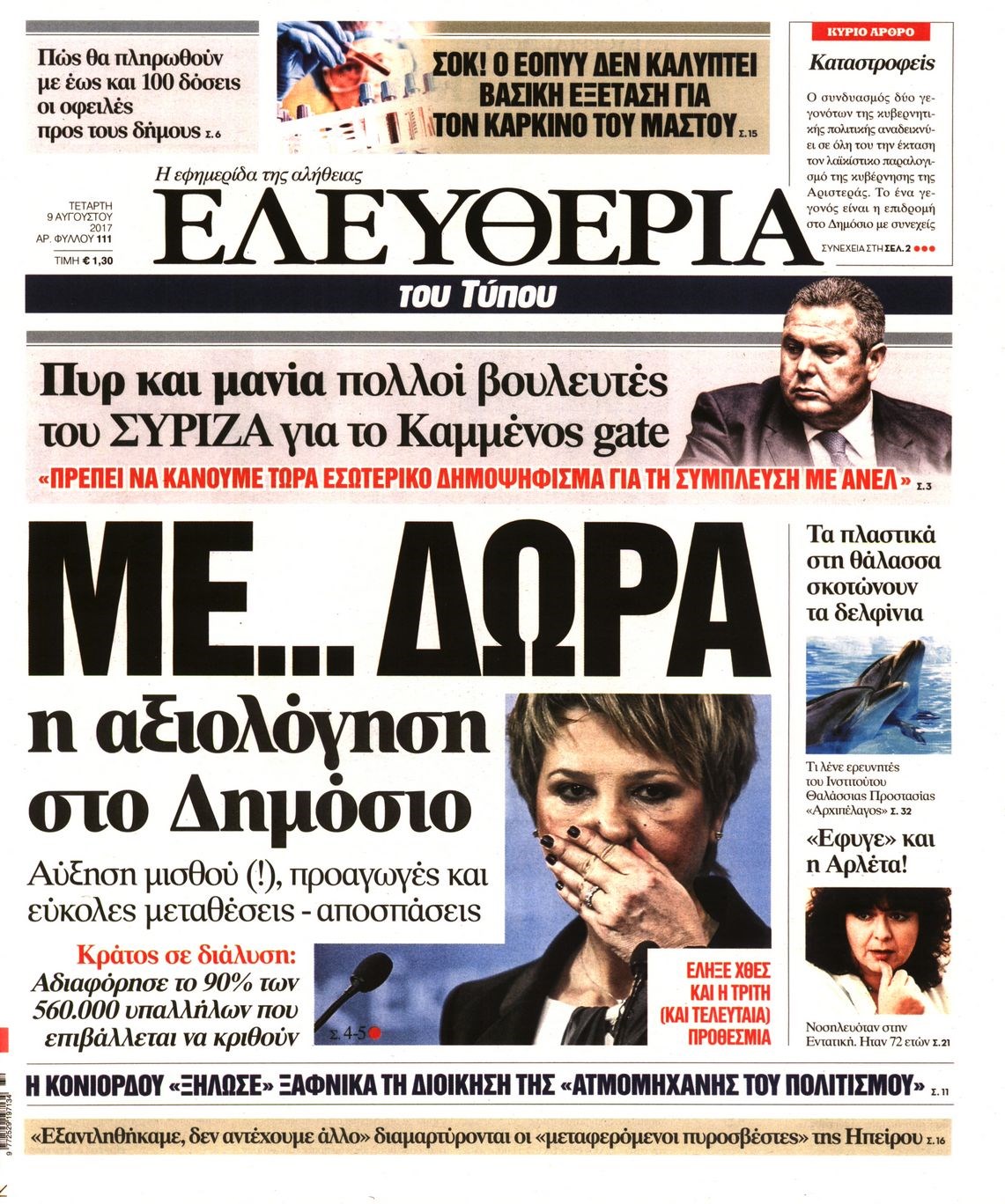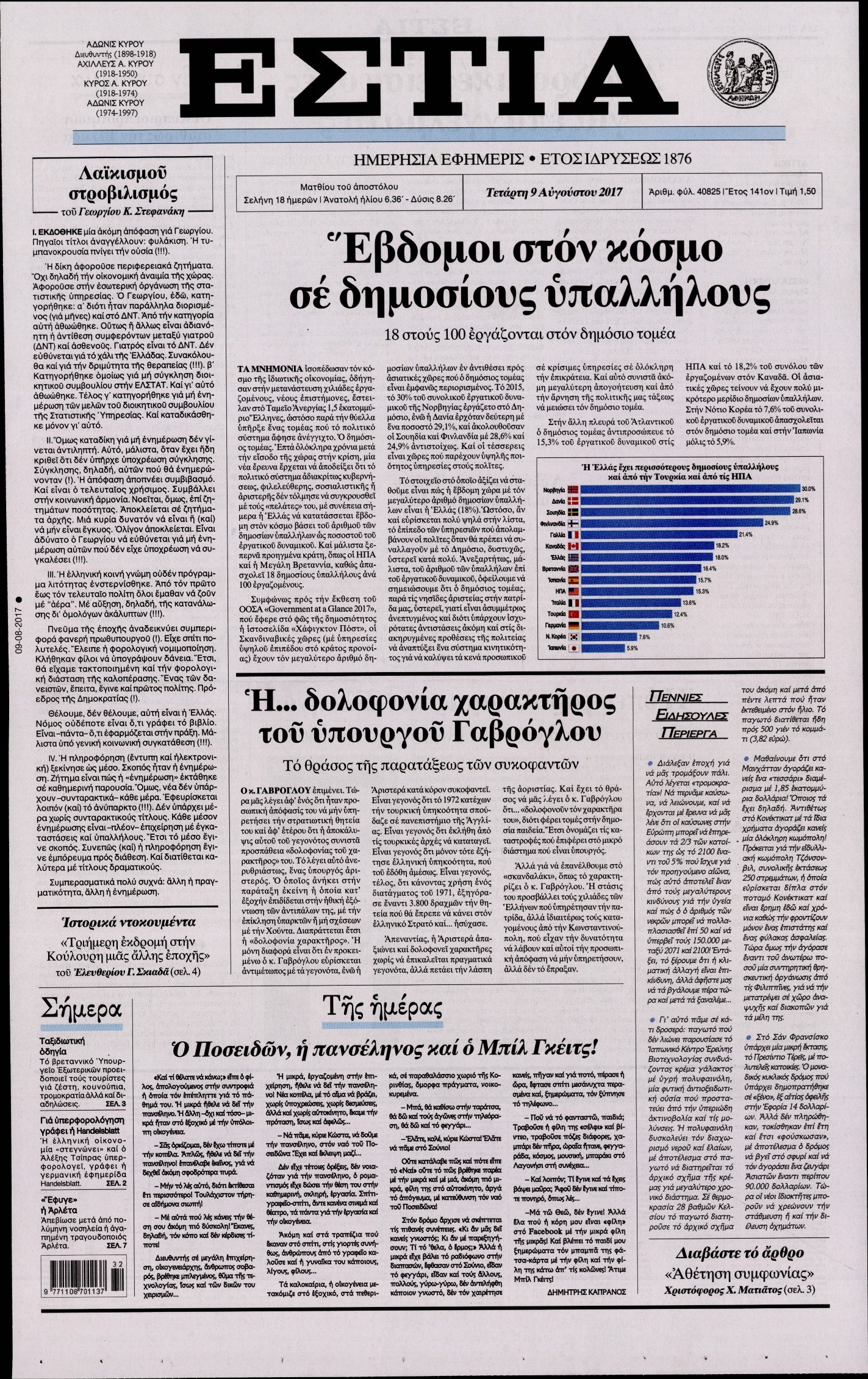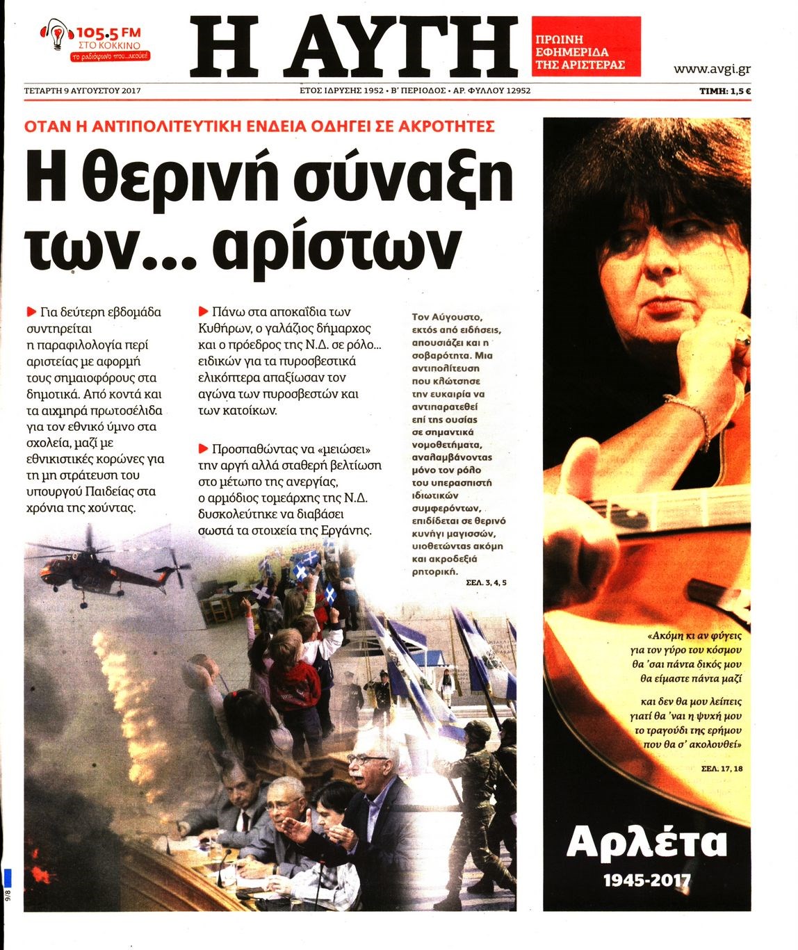 Οι πολιτικές εφημερίδες 9/8/2017 Κώστας Τεό 06:36, Τετάρτη 09 Αυγούστου 2017 Media Διαβάστε τα σημερινά πρωτοσέλιδα των πολιτικών εφημερίδων: ΠΟΛΙΤΙΚΕΣ ΕΦΗΜΕΡΙΔΕΣ ΠΡΩΤΟΣΕΛΙΔΑ Μοιράσου το: σχολίασε κι εσύ (0 σχόλια) Ακολουθήστε το enikos.gr στο Google News και μάθετε πρώτοι όλες τις ειδήσεις Δείτε όλες τις τελευταίες ειδήσεις από την Ελλάδα και τον Κόσμο στο enikos.gr Ειδήσεις Ροή Ειδήσεων 2 ώρες πριν Χριστούγεννα στα μπλόκα: Επιμένουν στις κινητοποιήσεις τους οι αγρότες – Ανοίγουν τα διόδια το Σαββατοκύριακο 3 ώρες πριν Ουκρανία: Η άνευ προηγουμένου επίθεση σε ρωσικό τάνκερ στη Μεσόγειο και το μήνυμα προς στον Πούτιν – Το «μακρύ χέρι» του Κιέβου 2 ώρες πριν Πούτιν: Τα μηνύματα σε Ευρώπη και ΝΑΤΟ από το μαραθώνιο «σόου» του – Η απαίτηση για «σεβασμό» και η ειρήνη «με τους όρους» της Μόσχας 3 ώρες πριν Τραμπ: Δεν αποκλείει την πιθανότητα ενός πολέμου στη Βενεζουέλα – «Ο Μαδούρο ξέρει καλύτερα από τον καθένα τι ακριβώς θέλω» 4 ώρες πριν Συνεχίζει να προκαλεί ο Μίτσκοσκι: «Για μένα το όνομα Μακεδονία είναι ιερό» 2 ώρες πριν Ανακαλύφθηκαν αρχαία χρυσά νομίσματα 2.200 ετών που απεικονίζουν τον θεό Απόλλωνα – Η άγνωστη σύνδεση με τον Φίλιππο Β΄ της Μακεδονίας 3 ώρες πριν Ύπνος: Μια κρυφή κατάσταση του εγκεφάλου πριν από τον ύπνο μπορεί να είναι το “κλειδί” για υψηλή ευφυΐα και δημιουργικότητα 4 ώρες πριν Αριθμολογία: Οι άνθρωποι που έχουν γεννηθεί αυτές τις 4 ημερομηνίες, συχνά παρεξηγούνται – «Η καλοσύνη τους κρύβει τεράστια δύναμη» 5 ώρες πριν Ξεχάστε το καθάρισμα το Σαββατοκύριακο: Ο «κανόνας των 20 λεπτών» που θα σας λύσει τα χέρια 9 λεπτά πριν Ουκρανία: Ολοκληρώθηκαν οι συνομιλίες με τους Αμερικανούς κι Ευρωπαίους διαπραγματευτές 25 λεπτά πριν Μπαρτσελόνα – Μπασκόνια 134-124: Οι «μπλαουγκράνα» πήραν το ματς της χρονιάς ύστερα από τρεις παρατάσεις 39 λεπτά πριν Φαίη Σκορδά: «Παλιότερα τα κομπλιμέντα τα προσπερνούσα, τώρα τα έχω ανάγκη» 55 λεπτά πριν Βασίλης Σπανούλης: Δεν εμφανίστηκε ούτε ένας δημοσιογράφος στην συνέντευξη Τύπου – «Καλησπέρα στον… κανέναν», δείτε βίντεο 1 ώρα πριν Πόλεμος στην Ουκρανία: Εφτά νεκροί από ρωσική πυραυλική επίθεση στο λιμάνι της Οδησσού ENIKOS NETWORK Το ΕΚΑΒ τιμήθηκε από την Ακαδημία Αθηνών για τα 40 χρόνια προσφοράς του Έχετε πραγματικά μεγάλη καρδιά; 10 χαρακτηριστικά όσων έχουν καλοσύνη Αναστολή μέτρων αναγκαστικής εκτέλεσης για κτηνοτρόφους που πλήττονται από την ευλογιά των αιγοπροβάτων Πλήρης επάρκεια προϊόντων στις λαϊκές της Αττικής, παρά τις αγροτικές κινητοποιήσεις – Τι απαντούν οι πωλητές Χαρτογραφώντας το «σημείο χωρίς επιστροφή»: Για πρώτη φορά αποκαλύπτεται με λεπτομέρεια το ακανθώδες όριο της ατμόσφαιρας τ... Η Google καταργεί τη λειτουργία «dark web report» – Πώς θα μπορούν οι χρήστες να διαγράφουν τα δεδομένα τους περισσότερα 22:42 , Παρασκευή 19 Δεκεμβρίου 2025 Γιώργος Γιαννόπουλος για “Το σόι σου”: “Είναι ευτυχία και ευλογία αυτή η σειρά” «Είναι ευτυχία και ευλογία η συγκυρία αυτής της σειράς», θα πει ο Γιώργος Γιαννόπουλος -ο αγαπ... 20:37 , Παρασκευή 19 Δεκεμβρίου 2025 Don’t Forget The Lyrics: Η Έλλη Κοκκίνου υποδέχεται 4 παίκτες που θα κάνουν τα πάντα για να μη χάσουν ούτε… μισή λέξη από τους στίχους Το «Don’t Forget The Lyrics» επιστρέφει απόψε, Παρασκευή 19 Δεκεμβρίου, στις 21:00 με νέο επει... 19:31 , Παρασκευή 19 Δεκεμβρίου 2025 GNTM: Απόψε ο μεγάλος τελικός για τους 4 φιναλίστ Έπειτα από μήνες γεμάτους μόδα, δημιουργία και έντονες αναμετρήσεις, το GNTM 2025 κορυφώνεται,.