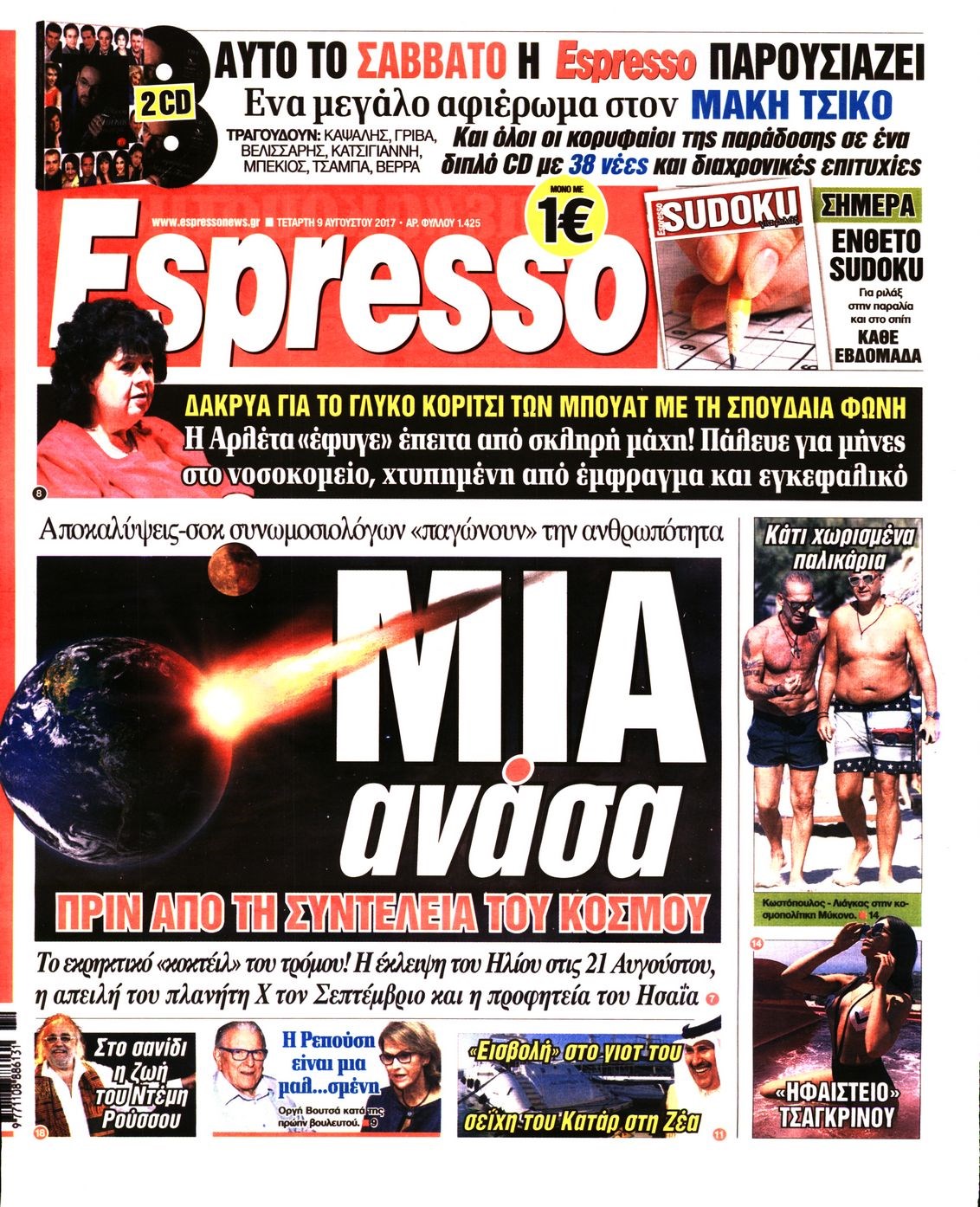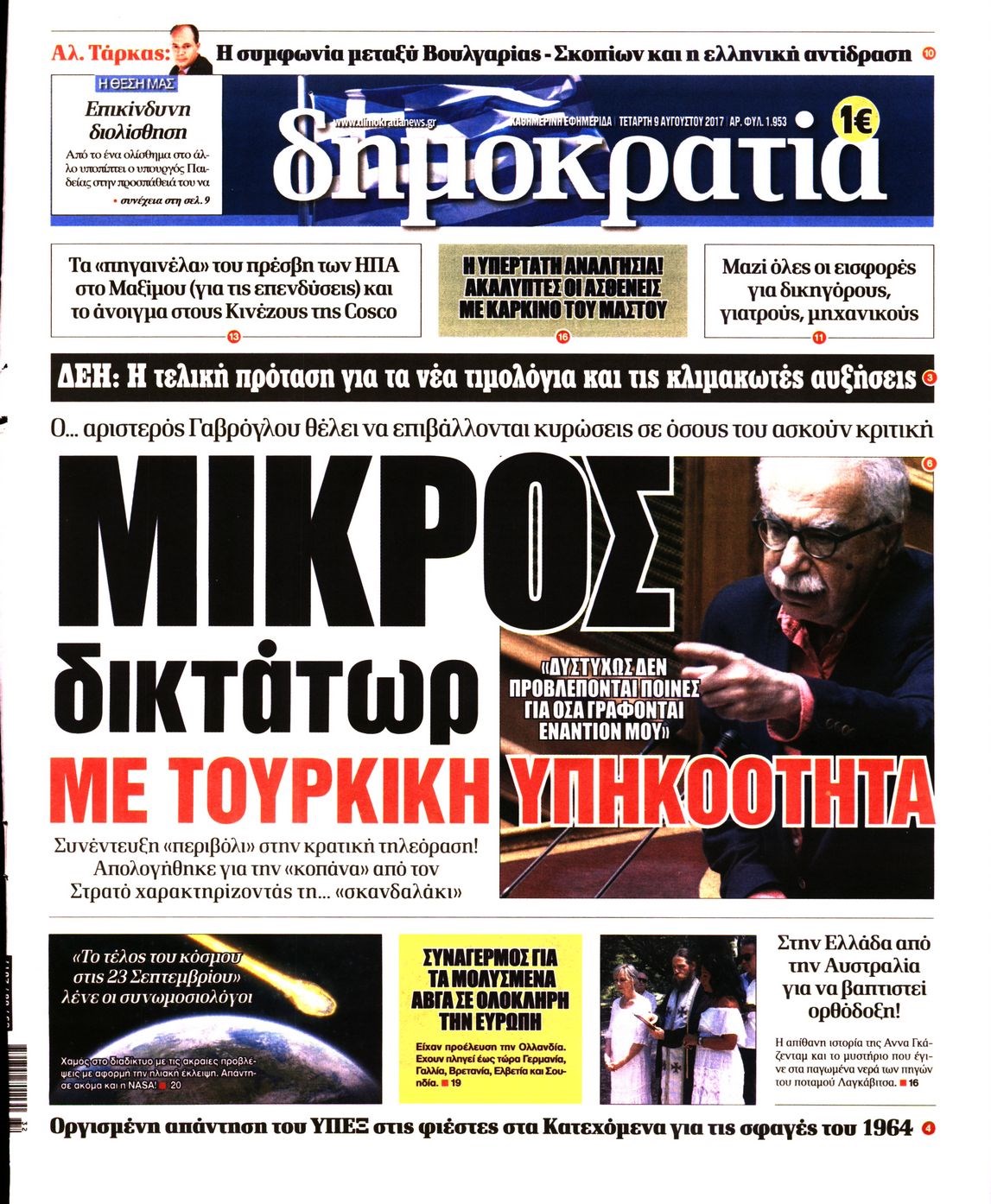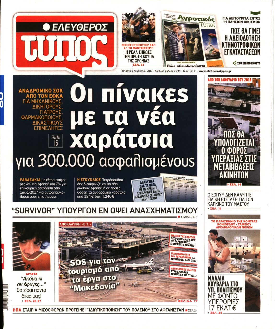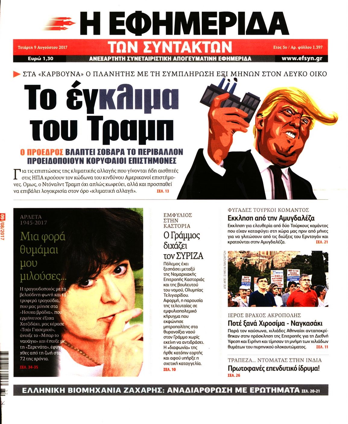 Οι πολιτικές εφημερίδες 9/8/2017 Κώστας Τεό 06:36, Τετάρτη 09 Αυγούστου 2017 Media Διαβάστε τα σημερινά πρωτοσέλιδα των πολιτικών εφημερίδων: ΠΟΛΙΤΙΚΕΣ ΕΦΗΜΕΡΙΔΕΣ ΠΡΩΤΟΣΕΛΙΔΑ Μοιράσου το: σχολίασε κι εσύ (0 σχόλια) Ακολουθήστε το enikos.gr στο Google News και μάθετε πρώτοι όλες τις ειδήσεις Δείτε όλες τις τελευταίες ειδήσεις από την Ελλάδα και τον Κόσμο στο enikos.gr Ειδήσεις Ροή Ειδήσεων 2 ώρες πριν Χριστούγεννα στα μπλόκα: Επιμένουν στις κινητοποιήσεις τους οι αγρότες – Ανοίγουν τα διόδια το Σαββατοκύριακο 3 ώρες πριν Ουκρανία: Η άνευ προηγουμένου επίθεση σε ρωσικό τάνκερ στη Μεσόγειο και το μήνυμα προς στον Πούτιν – Το «μακρύ χέρι» του Κιέβου 2 ώρες πριν Πούτιν: Τα μηνύματα σε Ευρώπη και ΝΑΤΟ από το μαραθώνιο «σόου» του – Η απαίτηση για «σεβασμό» και η ειρήνη «με τους όρους» της Μόσχας 3 ώρες πριν Τραμπ: Δεν αποκλείει την πιθανότητα ενός πολέμου στη Βενεζουέλα – «Ο Μαδούρο ξέρει καλύτερα από τον καθένα τι ακριβώς θέλω» 4 ώρες πριν Συνεχίζει να προκαλεί ο Μίτσκοσκι: «Για μένα το όνομα Μακεδονία είναι ιερό» 2 ώρες πριν Ανακαλύφθηκαν αρχαία χρυσά νομίσματα 2.200 ετών που απεικονίζουν τον θεό Απόλλωνα – Η άγνωστη σύνδεση με τον Φίλιππο Β΄ της Μακεδονίας 3 ώρες πριν Ύπνος: Μια κρυφή κατάσταση του εγκεφάλου πριν από τον ύπνο μπορεί να είναι το “κλειδί” για υψηλή ευφυΐα και δημιουργικότητα 4 ώρες πριν Αριθμολογία: Οι άνθρωποι που έχουν γεννηθεί αυτές τις 4 ημερομηνίες, συχνά παρεξηγούνται – «Η καλοσύνη τους κρύβει τεράστια δύναμη» 5 ώρες πριν Ξεχάστε το καθάρισμα το Σαββατοκύριακο: Ο «κανόνας των 20 λεπτών» που θα σας λύσει τα χέρια 9 λεπτά πριν Ουκρανία: Ολοκληρώθηκαν οι συνομιλίες με τους Αμερικανούς κι Ευρωπαίους διαπραγματευτές 25 λεπτά πριν Μπαρτσελόνα – Μπασκόνια 134-124: Οι «μπλαουγκράνα» πήραν το ματς της χρονιάς ύστερα από τρεις παρατάσεις 39 λεπτά πριν Φαίη Σκορδά: «Παλιότερα τα κομπλιμέντα τα προσπερνούσα, τώρα τα έχω ανάγκη» 55 λεπτά πριν Βασίλης Σπανούλης: Δεν εμφανίστηκε ούτε ένας δημοσιογράφος στην συνέντευξη Τύπου – «Καλησπέρα στον… κανέναν», δείτε βίντεο 1 ώρα πριν Πόλεμος στην Ουκρανία: Εφτά νεκροί από ρωσική πυραυλική επίθεση στο λιμάνι της Οδησσού ENIKOS NETWORK Το ΕΚΑΒ τιμήθηκε από την Ακαδημία Αθηνών για τα 40 χρόνια προσφοράς του Έχετε πραγματικά μεγάλη καρδιά; 10 χαρακτηριστικά όσων έχουν καλοσύνη Αναστολή μέτρων αναγκαστικής εκτέλεσης για κτηνοτρόφους που πλήττονται από την ευλογιά των αιγοπροβάτων Πλήρης επάρκεια προϊόντων στις λαϊκές της Αττικής, παρά τις αγροτικές κινητοποιήσεις – Τι απαντούν οι πωλητές Χαρτογραφώντας το «σημείο χωρίς επιστροφή»: Για πρώτη φορά αποκαλύπτεται με λεπτομέρεια το ακανθώδες όριο της ατμόσφαιρας τ... Η Google καταργεί τη λειτουργία «dark web report» – Πώς θα μπορούν οι χρήστες να διαγράφουν τα δεδομένα τους περισσότερα 22:42 , Παρασκευή 19 Δεκεμβρίου 2025 Γιώργος Γιαννόπουλος για “Το σόι σου”: “Είναι ευτυχία και ευλογία αυτή η σειρά” «Είναι ευτυχία και ευλογία η συγκυρία αυτής της σειράς», θα πει ο Γιώργος Γιαννόπουλος -ο αγαπ... 20:37 , Παρασκευή 19 Δεκεμβρίου 2025 Don’t Forget The Lyrics: Η Έλλη Κοκκίνου υποδέχεται 4 παίκτες που θα κάνουν τα πάντα για να μη χάσουν ούτε… μισή λέξη από τους στίχους Το «Don’t Forget The Lyrics» επιστρέφει απόψε, Παρασκευή 19 Δεκεμβρίου, στις 21:00 με νέο επει... 19:31 , Παρασκευή 19 Δεκεμβρίου 2025 GNTM: Απόψε ο μεγάλος τελικός για τους 4 φιναλίστ Έπειτα από μήνες γεμάτους μόδα, δημιουργία και έντονες αναμετρήσεις, το GNTM 2025 κορυφώνεται,.