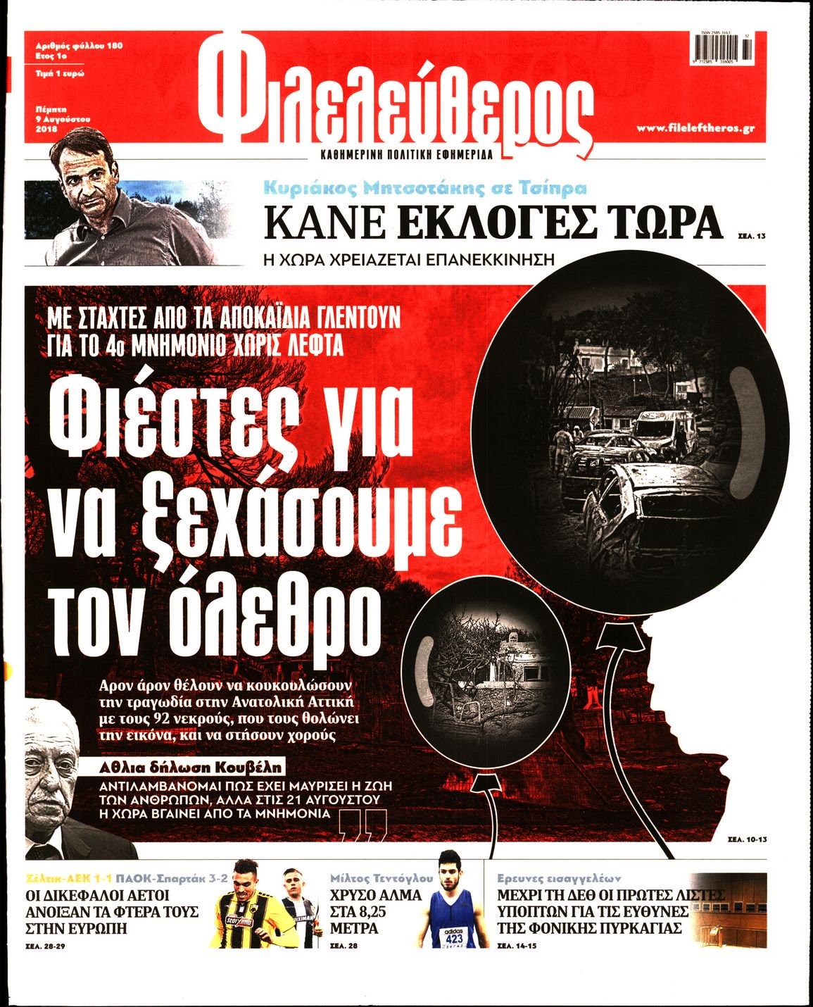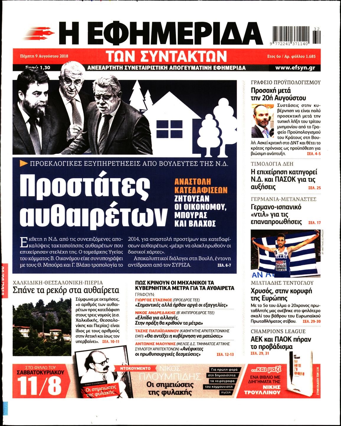 Οι πολιτικές εφημερίδες 9/8/2018 Enikos Newsroom 06:41, Πέμπτη 09 Αυγούστου 2018 Media Διαβάστε τα σημερινά πρωτοσέλιδα των πολιτικών εφημερίδων. ΠΟΛΙΤΙΚΕΣ ΕΦΗΜΕΡΙΔΕΣ ΠΡΩΤΟΣΕΛΙΔΑ Μοιράσου το: σχολίασε κι εσύ (0 σχόλια) Ακολουθήστε το enikos.gr στο Google News και μάθετε πρώτοι όλες τις ειδήσεις Δείτε όλες τις τελευταίες ειδήσεις από την Ελλάδα και τον Κόσμο στο enikos.gr Ειδήσεις Ροή Ειδήσεων 3 ώρες πριν Μητσοτάκης σε αγρότες: Είμαστε ανοιχτοί στον διάλογο, αλλά όχι στο παράλογο – Η διεκδίκηση αιτημάτων οφείλει να γίνεται με σεβασμό στο κοινωνικό σύνολο 2 ώρες πριν Κηφισιά: Δύο συλλήψεις για ληστεία με λεία 180.000 ευρώ – Βίντεο ντοκουμέντα από τη δράση των συλληφθέντων 3 ώρες πριν Γρίπη: «Καμπανάκι» από τους επιστήμονες για έξαρση κρουσμάτων στις γιορτές – Ποιοι κινδυνεύουν και πώς προστατευόμαστε 1 ώρα πριν Ρωσία: Δεν προετοιμάζεται συνάντηση Αμερικανών, Ρώσων και Ουκρανών απεσταλμένων, ανακοίνωσε το Κρεμλίνο 4 ώρες πριν Η οικογενειακή διαμάχη των Μπέκαμ: Το block από τον Μπρούκλιν και η απόφαση να περάσει τα Χριστούγεννα με τους δισεκατομμυριούχους γονείς της συζύγου του 3 ώρες πριν Τα άστρα ευνοούν σκανδαλωδώς 4 ζώδια – «Εμφανίζονται ξαφνικά ευκαιρίες γιατί αποφασίζετε να αφήσετε πίσω το παρελθόν» 2 ώρες πριν Προπονήτρια γυμναστικής που έχασε 9 κιλά αποκαλύπτει: «Αυτοί είναι οι 5 παράγοντες που εμποδίζουν την απώλεια βάρους» 1 ώρα πριν Οι άνθρωποι που στρώνουν το κρεβάτι τους κάθε πρωί, διαθέτουν αυτές τις 8 κρυφές δυνάμεις 1 ημέρα πριν Enerwave: Το νέο «ρεύμα» στη λιανική ενέργειας που αλλάζει την εμπειρία του καταναλωτή 10 λεπτά πριν Κρήτη: Συνελήφθη 53χρονος που είχε στο σπίτι του ρούχα με… διακριτικά της Αστυνομίας και του Πολεμικού Ναυτικού 18 λεπτά πριν Κίνα: Έφτιαξαν χιονάνθρωπο ύψους 19 μέτρων – Βίντεο timelapse 25 λεπτά πριν Λειψυδρία: Πού βρισκόμαστε σήμερα και πώς προετοιμάζεται η ΕΥΔΑΠ για το επόμενο κρίσιμο διάστημα 33 λεπτά πριν Maestro – Χριστόφορος Παπακαλιάτης: Θα δείτε εκπλήξεις – Θα προβληθεί τον Οκτώβριο 41 λεπτά πριν ΣΥΡΙΖΑ για Μητσοτάκη: Ο κυνισμός και η αλαζονεία του δεν πείθει κανέναν πια – Ούτε τους αγροτοσυνδικαλιστές της παράταξης του ENIKOS NETWORK Φοράτε ψηλοτάκουνα παπούτσια; Ποδίατροι συμβουλεύουν πόσο ψηλά επιτρέπεται να είναι και πώς να τα επιλέξετε Άσκηση: η «ασπίδα» του εγκεφάλου απέναντι στη γήρανση Χριστουγεννιάτικο τραπέζι: Πόσο θα αγοράσετε φέτος τη γαλοπούλα και το μοσχάρι – Πού κυμαίνονται οι τιμές για μελομακάρονα ... Φοροδιαφυγή: Πώς τα ψηφιακά εργαλεία άλλαξαν τα δεδομένα το 2025 και έφεραν δισεκατομμύρια στα ταμεία του Δημοσίου Χαρτογραφώντας το «σημείο χωρίς επιστροφή»: Για πρώτη φορά αποκαλύπτεται με λεπτομέρεια το ακανθώδες όριο της ατμόσφαιρας τ... Η Google καταργεί τη λειτουργία «dark web report» – Πώς θα μπορούν οι χρήστες να διαγράφουν τα δεδομένα τους περισσότερα 09:43 , Κυριακή 21 Δεκεμβρίου 2025 Το λάθος στην ταινία Die Hard που άφησε άναυδους τους θαυμαστές του Μπρους Γουίλις Ένας φανατικός των ταινιών άφησε άναυδους τους θαυμαστές του Die Hard, επισημαίνοντας τρία βασ... 08:13 , Κυριακή 21 Δεκεμβρίου 2025 Άγιος έρωτας: Ένας καταστροφικός σεισμός χτυπά τη Στέρνα Καταιγιστικές είναι οι εξελίξεις στα δυο τελευταία, συγκλονιστικά επεισόδια του 2025 της σειρά... 08:00 , Κυριακή 21 Δεκεμβρίου 2025 Σήμερα με τη Realnews: Ό,τι και αν αγοράσεις, σκανάρεις και κερδίζεις! Σήμερα με τη Realnews: Ό,τι και αν αγοράσεις, σκανάρεις και κερδίζεις! Με το PADU app, το κορυ... 07:00 , Κυριακή 21 Δεκεμβρίο