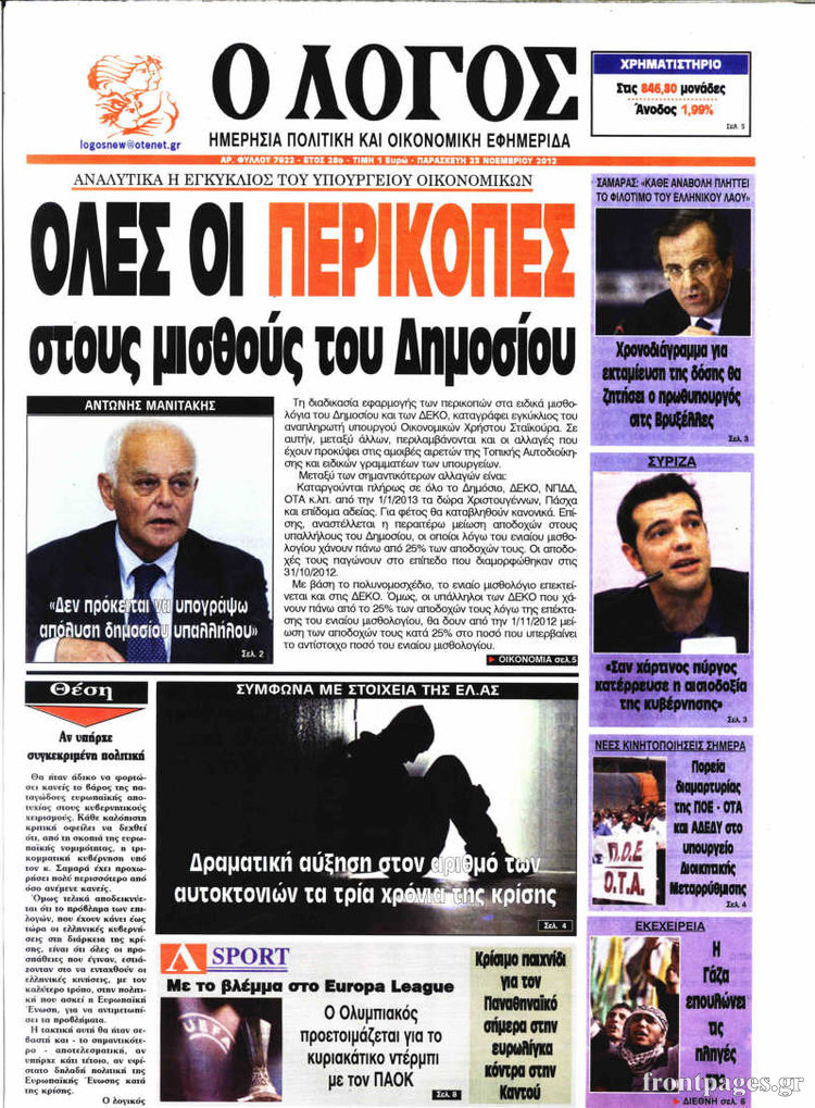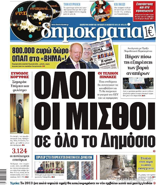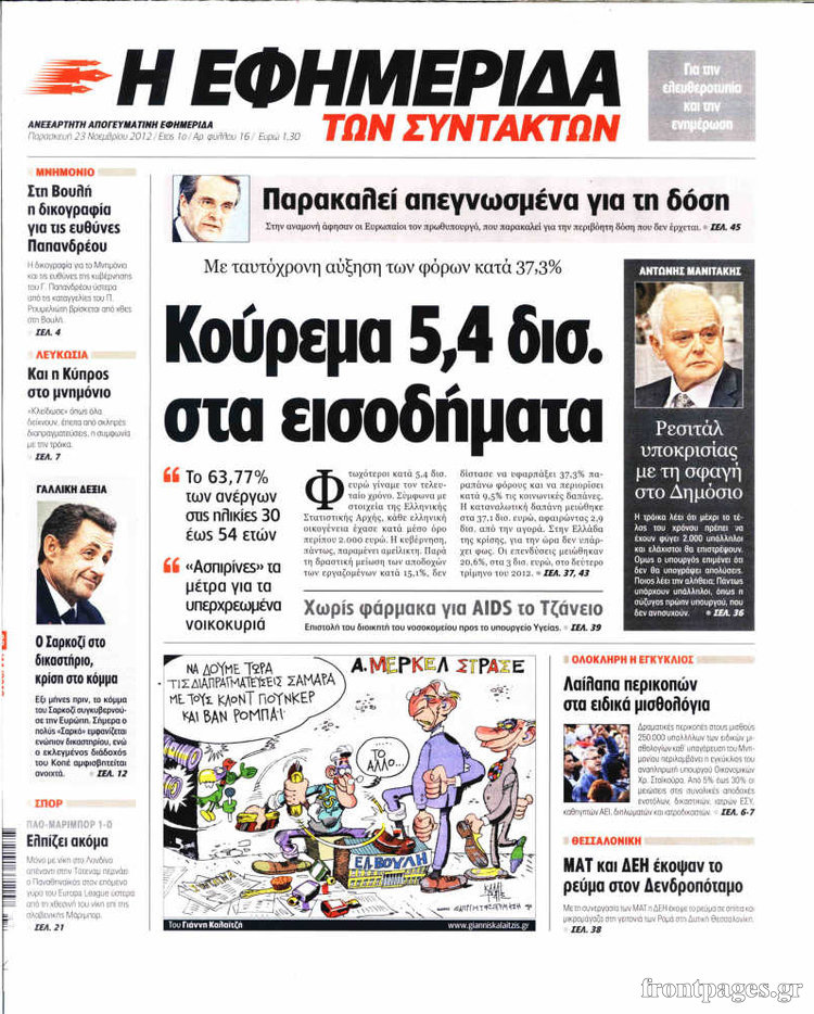 Οι πολιτικές εφημερίδες Enikos Newsroom 08:53, Παρασκευή 23 Νοεμβρίου 2012 Media Οι πολιτικές εφημερίδες Τα πρωτοσέλιδα των πολιτικών εφημερίδων. ΕΦΗΜΕΡΙΔΕΣ ΠΡΩΤΟΣΕΛΙΔΑ ΠΟΛΙΤΙΚΕΣ ΕΦΗΜΕΡΙΔΕΣ ΠΡΩΤΟΣΕΛΙΔΑ Μοιράσου το: σχολίασε κι εσύ (0 σχόλια) Ακολουθήστε το enikos.gr στο Google News και μάθετε πρώτοι όλες τις ειδήσεις Δείτε όλες τις τελευταίες ειδήσεις από την Ελλάδα και τον Κόσμο στο enikos.gr Ειδήσεις Ροή Ειδήσεων 1 ώρα πριν Ενοίκια: Ποια προγράμματα θα «τρέξουν» για να ανοίξουν τα κλειστά ακίνητα – Όλες οι νέες πληροφορίες 1 ώρα πριν Ίμια 30 χρόνια μετά: «Ο βοσκός πήγαινε και στις δύο βραχονησίδες έως το 2004 – Μετά του έκοψαν τα λεφτά» 50 λεπτά πριν Τραγωδία στη Ρουμανία: Σήμερα και αύριο το τελευταίο «αντίο» στους επτά οπαδούς του ΠΑΟΚ 10 λεπτά πριν Αλέξης Τσίπρας: Συγκροτεί ομάδα και κείμενο για τη σύγκλιση των προοδευτικών δυνάμεων 28 λεπτά πριν Ουκρανικό: Τα ανοιχτά μέτωπα Κιέβου – Μόσχας πριν από τις νέες συνομιλίες στο Αμπού Ντάμπι – Η τακτική «φθοράς» της Ρωσίας 3 ώρες πριν Οπτική ψευδαίσθηση: Μόνο όσοι έχουν τέλεια όραση μπορούν να εντοπίσουν τη 2η γάτα μέσα σε 13 δευτερόλεπτα 3 ώρες πριν Άνοια: Η τροφή που συνδέεται με μειωμένο κίνδυνο και καλύτερη υγεία του εγκεφάλου 6 ώρες πριν Τα ζώδια σήμερα, Παρασκευή 30 Ιανουαρίου 2026: Καρκίνοι, ακούστε το ένστικτό σας και όχι τον φόβο σας 41 λεπτά πριν Ναός μπορεί να αναδύθηκε από το νερό όπως περιγράφει η μυθολογία – Τα στοιχεία της νέας μελέτης 13 λεπτά πριν Στο real taste & style που κυκλοφορεί με τη Realnews 5 λεπτά πριν «Βιολάντα»: Σήμερα οι κηδείες της Βασιλικής Σκαμπαρδώνη και της Ελένης Κατσαρού 10 λεπτά πριν Αλέξης Τσίπρας: Συγκροτεί ομάδα και κείμενο για τη σύγκλιση των προοδευτικών δυνάμεων 11 λεπτά πριν Βασίλειος Τζίγκος: Πέθανε ο δήμαρχος Φιλιατών 17 λεπτά πριν Συνταγή για να μαγειρεύετε εύκολα και άψογα το λευκό ρύζι ENIKOS NETWORK Ο καρκίνος μπορεί να προστατεύσει από το Αλτσχάιμερ; Το παράδοξο συμπέρασμα μελέτης Το κόλπο για να μην πιάσουν μύκητες τα φυτά σας – Είναι εύκολο και αποτελεσματικό Ενοίκια: Ποια προγράμματα θα «τρέξουν» για να ανοίξουν τα κλειστά ακίνητα – Όλες οι νέες πληροφορίες Μυτιληναίος: Προειδοποιεί για τις επιπτώσεις από την άνοδο του ευρώ Google Search: Αναβαθμίζει τις δυνατότητες AI με Gemini 3 και Follow-up ερωτήσεις Κουίζ: Πόσο καλός είσαι στην ελληνική μυθολογία; Δοκίμασε τις γνώσεις σου και κάνε το 3 στα 3 περισσότερα 07:00 , Παρασκευή 30 Ιανουαρίου 2026 Την Κυριακή με τη Realnews: Ό,τι και αν αγοράσεις, σκανάρεις και κερδίζεις! Την Κυριακή με τη Realnews: Ό,τι και αν αγοράσεις, σκανάρεις και κερδίζεις! Με το PADU app, το... 05:48 , Παρασκευή 30 Ιανουαρίου 2026 Οι οικονομικές εφημερίδες 30/1/2026 Διαβάστε τα πρωτοσέλιδα από τις οικονομικές εφημερίδες, σήμερα 30/1/2026. 22:52 , Πέμπτη 29 Ιανουαρίου 2026 Ζελένσκι: Αναμένουμε από τη Ρωσία να σταματήσει τους βομβαρδισμούς για μία εβδομάδα, όπως συμφώνησε Ο Βολοντίμιρ Ζελένσκι δήλωσε απόψε ότι αναμένει την εφαρμογή της συμφωνίας, εκ μέρους της Ρωσί... 18:58 , Πέμπτη 29 Ιανουαρίου 2026 Το σόι σου: Ο Μιχάλης ένα βήμα πριν παρατήσει τον Χαμπέα, απόψε στις 21:00 Ένα ακόμη απολαυστικό επεισόδιο της σειράς “Το σόι σου” έρχεται απόψε στις 21:00 σ... ΤΕΛΕΥΤΑΙΕΣ ΕΙΔΗΣΕΙΣ 5 λεπτά πριν «Βιολάντα»: Σήμερα οι κηδείες της Βασιλικής... 10 λεπτά πριν Αλέξης Τσίπρας: Συγκροτεί ομάδα και κείμενο για τη... 11 λεπτά πριν Βασίλειος Τζίγκος: Πέθανε ο δήμαρχος Φιλιατών 17 λεπτά πριν Συνταγή για να μαγειρεύετε εύκολα και άψογα το λευκό... 23 λεπτά πριν «Βιολάν