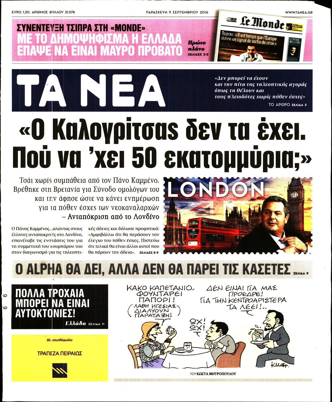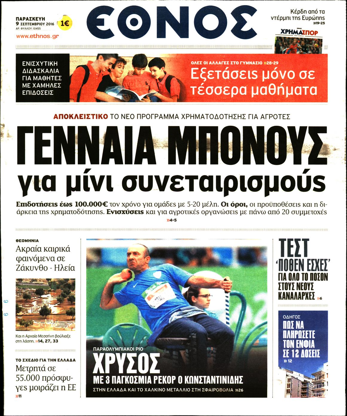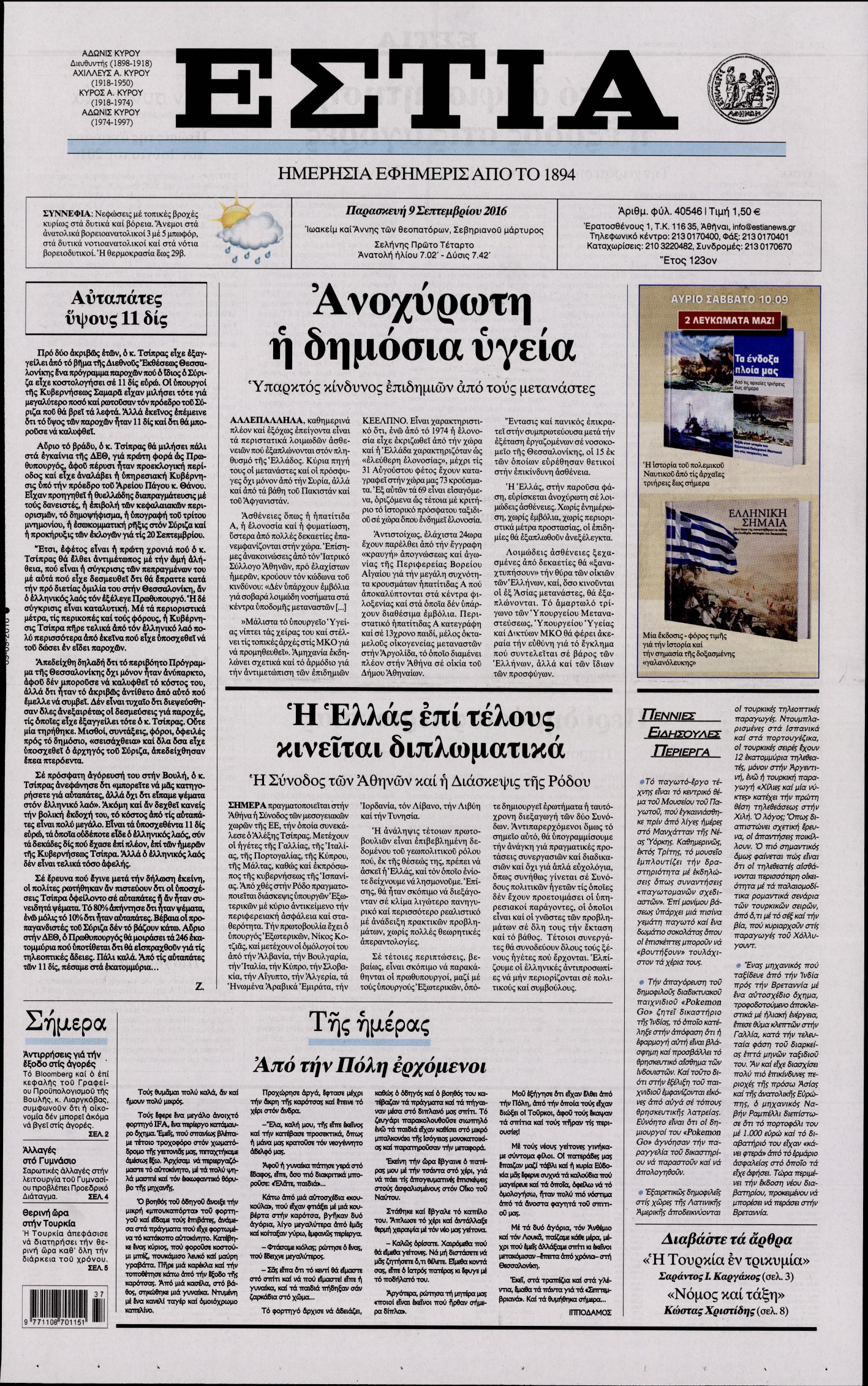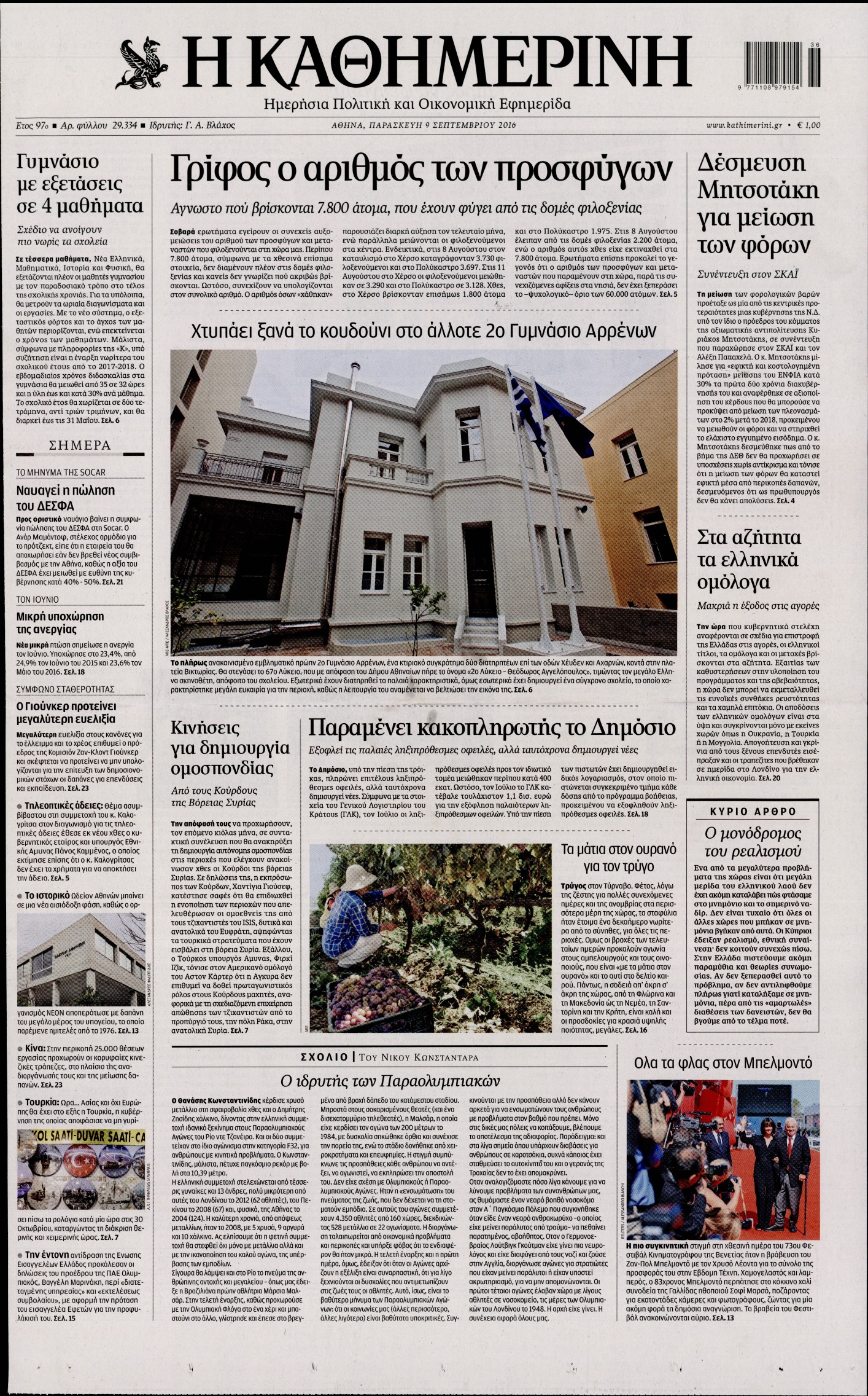 Oι πολιτικές εφημερίδες 9/9/2016 Enikos Newsroom 05:15, Παρασκευή 09 Σεπτεμβρίου 2016 Media Διαβάστε τα σημερινά πρωτοσέλιδα των πολιτικών εφημερίδων: ΠΟΛΙΤΙΚΕΣ ΕΦΗΜΕΡΙΔΕΣ ΠΡΩΤΟΣΕΛΙΔΑ Μοιράσου το: σχολίασε κι εσύ (0 σχόλια) Ακολουθήστε το enikos.gr στο Google News και μάθετε πρώτοι όλες τις ειδήσεις Δείτε όλες τις τελευταίες ειδήσεις από την Ελλάδα και τον Κόσμο στο enikos.gr Ειδήσεις Ροή Ειδήσεων 2 ώρες πριν Αυξάνουν την πίεση προς την κυβέρνηση οι αγρότες: Κλείνουν παρακαμπτήριους και ανοίγουν διόδια – Τι θα γίνει τις γιορτές 39 λεπτά πριν ΟΠΕΚΕΠΕ: Προφυλακιστέος ο φερόμενος αρχηγός και ο λογιστής της εγκληματικής οργάνωσης 2 ώρες πριν Φοινικούντα: Το Σάββατο απολογείται ο 30χρονος γιος γνωστού επιχειρηματία της Πλάκας που παραδόθηκε – Όσα είπε στους αστυνομικούς και ο ρόλος του στο έγκλημα 1 ώρα πριν Μπορεί ο Μαδούρο να αντέξει τον αποκλεισμό του Τραμπ; Τι θα χρειαστεί η Ουάσινγκτον για να τον ανατρέψει 3 ώρες πριν Πρίγκιπας Ουίλιαμ – Κέιτ: Η νέα οικογενειακή φωτογραφία για τις Χριστουγεννιάτικες κάρτες του 2025 2 ώρες πριν Ύπνος: Η απλή βραδινή ρουτίνα για να προστατεύσετε τα μαλλιά σας από το κρύο κατά τη διάρκεια του χειμώνα 3 ώρες πριν Manifesting: Πώς να συναντήσετε τον σύντροφο της ζωής σας, ανάλογα με τον μήνα γέννησής σας 2 ημέρες πριν 20 χρόνια τα Χριστούγεννα ξεκινούν στα Public με μεγάλη ποικιλία σε δώρα! 1 ώρα πριν Αρχαιολόγοι ανακάλυψαν ρωμαϊκά τεχνουργήματα από μια πόλη που δεν υπήρξε ποτέ – Τα τρία εντυπωσιακά κτίρια και ο αμφορέας με τις… σαρδέλες 19 λεπτά πριν ΑΕΚ – Κραϊόβα 3-2: Επική ανατροπή και πρόκριση στους «16» του Conference League η Ένωση 39 λεπτά πριν ΟΠΕΚΕΠΕ: Προφυλακιστέος ο φερόμενος αρχηγός και ο λογιστής της εγκληματικής οργάνωσης 49 λεπτά πριν Αθηνά Μαξίμου: Η τρυφερή ανάρτηση για τα γενέθλια του Αιμίλιου Χειλάκη – «Είναι η εκλεκτική συγγένειά μου, η επιλογή και η ευθύνη μου» 1 ώρα πριν Παναθηναϊκός – Χάποελ Τελ Αβίβ 93-82: Με… φόρα από την Κωνσταντινούπολη 1 ώρα πριν Μπορεί ο Μαδούρο να αντέξει τον αποκλεισμό του Τραμπ; Τι θα χρειαστεί η Ουάσινγκτον για να τον ανατρέψει ENIKOS NETWORK Σε περίοδο αυξημένης δραστηριότητας η γρίπη στην Ελλάδα-Μέτρα προστασίας από τον ΕΟΔΥ Σκέφτεστε συνέχεια συζητήσεις που έχετε κάνει; Τι σημαίνει αυτό, σύμφωνα με ειδικό Στεγαστικό: Τι λέει η ΠΟΜΙΔΑ για τα νέα μέτρα που ανακοίνωσε ο Κυριάκος Μητσοτάκης Λαγκάρντ: Αισιόδοξη για την ανάπτυξη της Ευρωζώνης, αβέβαιη για τον πληθωρισμό Χαρτογραφώντας το «σημείο χωρίς επιστροφή»: Για πρώτη φορά αποκαλύπτεται με λεπτομέρεια το ακανθώδες όριο της ατμόσφαιρας τ... Η Google καταργεί τη λειτουργία «dark web report» – Πώς θα μπορούν οι χρήστες να διαγράφουν τα δεδομένα τους περισσότερα 17:45 , Πέμπτη 18 Δεκεμβρίου 2025 ROUK ZOUK: Εορταστικό επεισόδιο με καλεσμένους τους πρωταγωνιστές του «Γιατί ρε πατέρα» Το Σάββατο 20 Δεκεμβρίου στις 21:00, η Ζέτα Μακρυπούλια υποδέχεται εκλεκτούς ηθοποιούς που όλο... 17:20 , Πέμπτη 18 Δεκεμβρίου 2025 Άγιος έρωτας: Η Χριστίνα εξομολογείται στον πατέρα Νικόλαο, απόψε στις 21:00 στον Alpha Η Νότα αποφασίζει να εκδικηθεί τον Πέτρο και τον Στέφανο, για χάρη του Λούη, όμως τα πράγματα ... 16:50 , Πέμπτη 18 Δεκεμβρίου 2025 Να μ’ αγαπάς: Ζωή και Φωτεινή συμφιλιώνονται ως μάνα με κόρη, απόψε στις 20:00 Η ταυτότητα του Άγγελου αποκαλύπτεται στο νέο επεισόδιο της σειράς “Να μ’ αγαπάς... 15:52 , Πέμπτη 18 Δεκεμβρίου 2025 Το Σπίτι Δίπλα Στο Ποτάμι: Το καθηλωτικό τελευταίο επεισόδιο για το 2025 απόψε στις 22:30 Καθηλώνει το σημερινό 