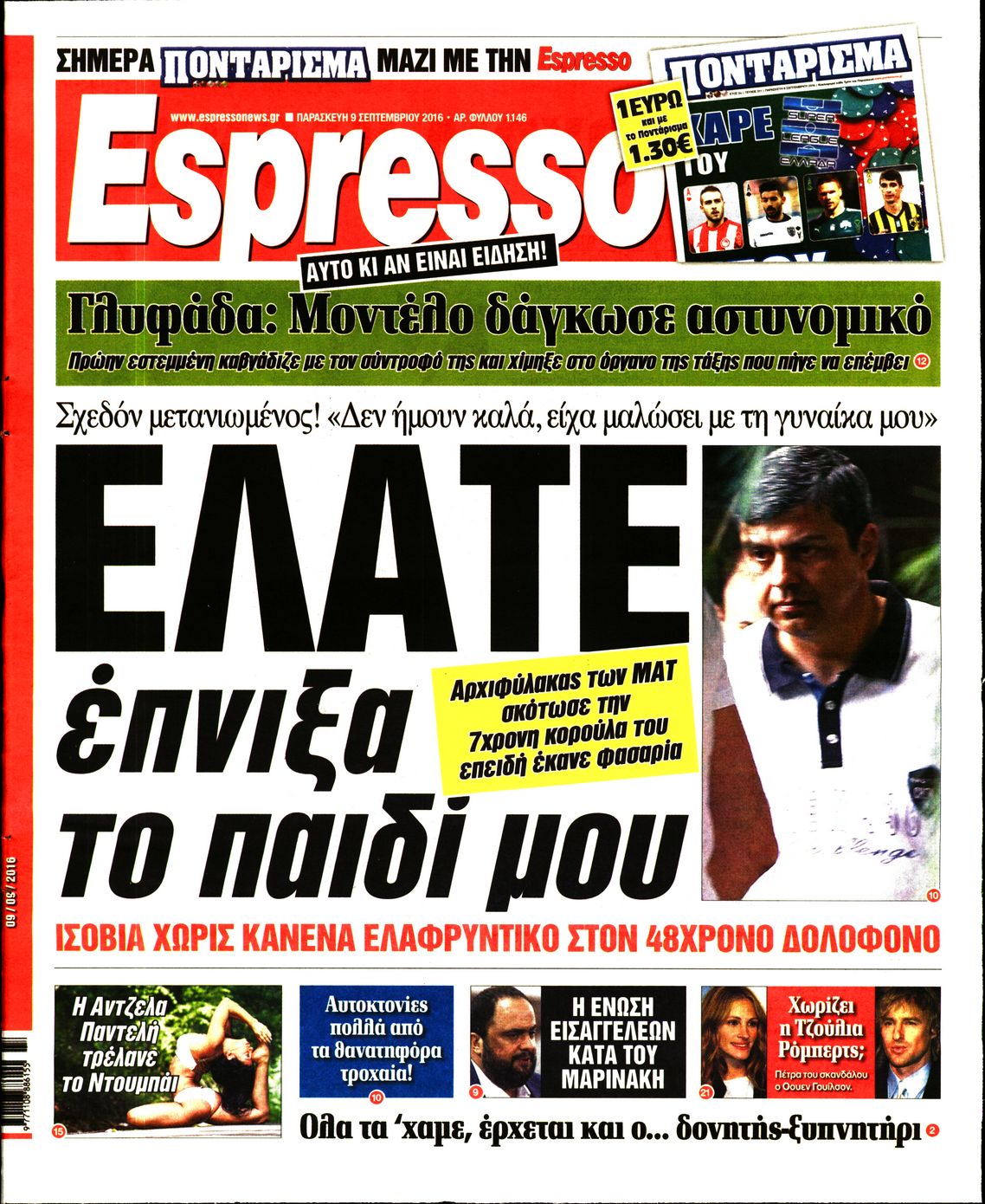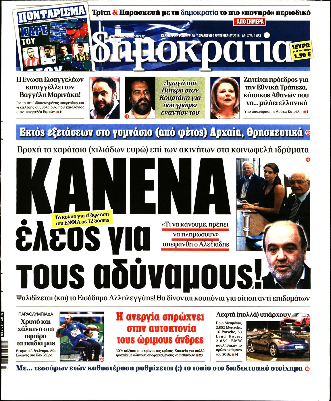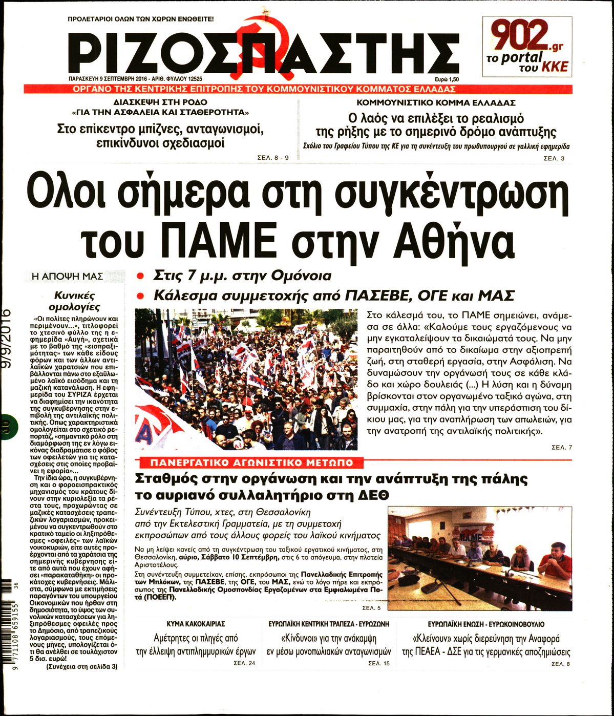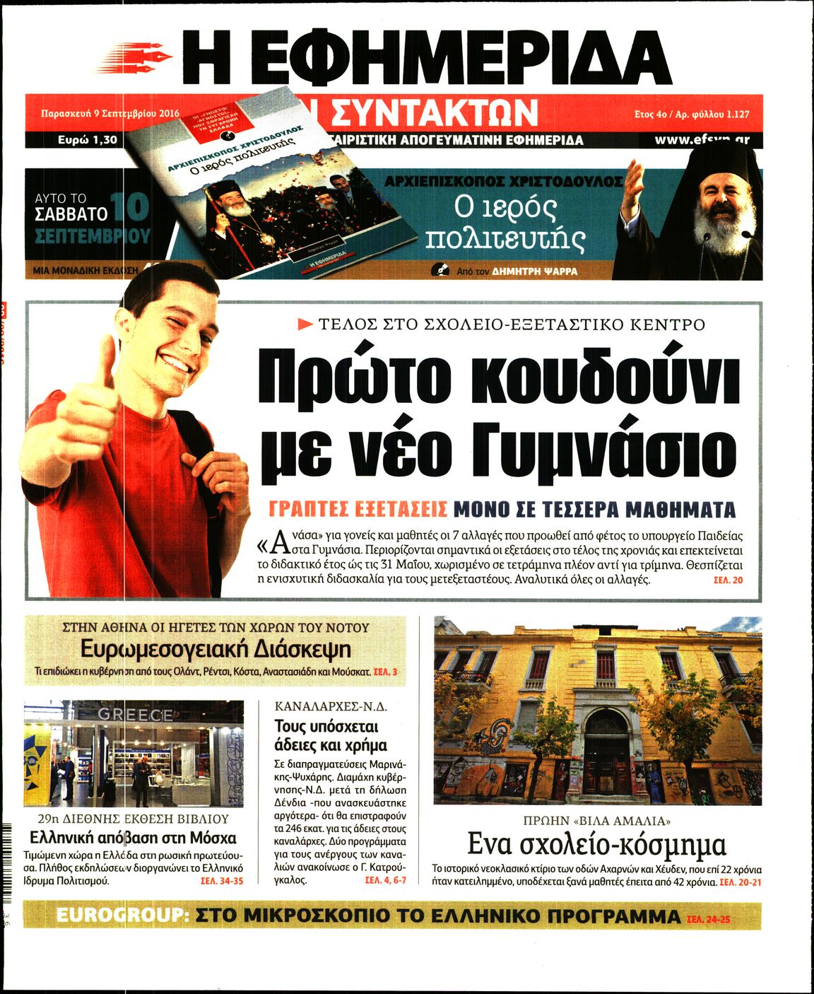Oι πολιτικές εφημερίδες 9/9/2016 Enikos Newsroom 05:15, Παρασκευή 09 Σεπτεμβρίου 2016 Media Διαβάστε τα σημερινά πρωτοσέλιδα των πολιτικών εφημερίδων: ΠΟΛΙΤΙΚΕΣ ΕΦΗΜΕΡΙΔΕΣ ΠΡΩΤΟΣΕΛΙΔΑ Μοιράσου το: σχολίασε κι εσύ (0 σχόλια) Ακολουθήστε το enikos.gr στο Google News και μάθετε πρώτοι όλες τις ειδήσεις Δείτε όλες τις τελευταίες ειδήσεις από την Ελλάδα και τον Κόσμο στο enikos.gr Ειδήσεις Ροή Ειδήσεων 2 ώρες πριν Αυξάνουν την πίεση προς την κυβέρνηση οι αγρότες: Κλείνουν παρακαμπτήριους και ανοίγουν διόδια – Τι θα γίνει τις γιορτές 39 λεπτά πριν ΟΠΕΚΕΠΕ: Προφυλακιστέος ο φερόμενος αρχηγός και ο λογιστής της εγκληματικής οργάνωσης 2 ώρες πριν Φοινικούντα: Το Σάββατο απολογείται ο 30χρονος γιος γνωστού επιχειρηματία της Πλάκας που παραδόθηκε – Όσα είπε στους αστυνομικούς και ο ρόλος του στο έγκλημα 1 ώρα πριν Μπορεί ο Μαδούρο να αντέξει τον αποκλεισμό του Τραμπ; Τι θα χρειαστεί η Ουάσινγκτον για να τον ανατρέψει 3 ώρες πριν Πρίγκιπας Ουίλιαμ – Κέιτ: Η νέα οικογενειακή φωτογραφία για τις Χριστουγεννιάτικες κάρτες του 2025 2 ώρες πριν Ύπνος: Η απλή βραδινή ρουτίνα για να προστατεύσετε τα μαλλιά σας από το κρύο κατά τη διάρκεια του χειμώνα 3 ώρες πριν Manifesting: Πώς να συναντήσετε τον σύντροφο της ζωής σας, ανάλογα με τον μήνα γέννησής σας 2 ημέρες πριν 20 χρόνια τα Χριστούγεννα ξεκινούν στα Public με μεγάλη ποικιλία σε δώρα! 1 ώρα πριν Αρχαιολόγοι ανακάλυψαν ρωμαϊκά τεχνουργήματα από μια πόλη που δεν υπήρξε ποτέ – Τα τρία εντυπωσιακά κτίρια και ο αμφορέας με τις… σαρδέλες 19 λεπτά πριν ΑΕΚ – Κραϊόβα 3-2: Επική ανατροπή και πρόκριση στους «16» του Conference League η Ένωση 39 λεπτά πριν ΟΠΕΚΕΠΕ: Προφυλακιστέος ο φερόμενος αρχηγός και ο λογιστής της εγκληματικής οργάνωσης 49 λεπτά πριν Αθηνά Μαξίμου: Η τρυφερή ανάρτηση για τα γενέθλια του Αιμίλιου Χειλάκη – «Είναι η εκλεκτική συγγένειά μου, η επιλογή και η ευθύνη μου» 1 ώρα πριν Παναθηναϊκός – Χάποελ Τελ Αβίβ 93-82: Με… φόρα από την Κωνσταντινούπολη 1 ώρα πριν Μπορεί ο Μαδούρο να αντέξει τον αποκλεισμό του Τραμπ; Τι θα χρειαστεί η Ουάσινγκτον για να τον ανατρέψει ENIKOS NETWORK Σε περίοδο αυξημένης δραστηριότητας η γρίπη στην Ελλάδα-Μέτρα προστασίας από τον ΕΟΔΥ Σκέφτεστε συνέχεια συζητήσεις που έχετε κάνει; Τι σημαίνει αυτό, σύμφωνα με ειδικό Στεγαστικό: Τι λέει η ΠΟΜΙΔΑ για τα νέα μέτρα που ανακοίνωσε ο Κυριάκος Μητσοτάκης Λαγκάρντ: Αισιόδοξη για την ανάπτυξη της Ευρωζώνης, αβέβαιη για τον πληθωρισμό Χαρτογραφώντας το «σημείο χωρίς επιστροφή»: Για πρώτη φορά αποκαλύπτεται με λεπτομέρεια το ακανθώδες όριο της ατμόσφαιρας τ... Η Google καταργεί τη λειτουργία «dark web report» – Πώς θα μπορούν οι χρήστες να διαγράφουν τα δεδομένα τους περισσότερα 17:45 , Πέμπτη 18 Δεκεμβρίου 2025 ROUK ZOUK: Εορταστικό επεισόδιο με καλεσμένους τους πρωταγωνιστές του «Γιατί ρε πατέρα» Το Σάββατο 20 Δεκεμβρίου στις 21:00, η Ζέτα Μακρυπούλια υποδέχεται εκλεκτούς ηθοποιούς που όλο... 17:20 , Πέμπτη 18 Δεκεμβρίου 2025 Άγιος έρωτας: Η Χριστίνα εξομολογείται στον πατέρα Νικόλαο, απόψε στις 21:00 στον Alpha Η Νότα αποφασίζει να εκδικηθεί τον Πέτρο και τον Στέφανο, για χάρη του Λούη, όμως τα πράγματα ... 16:50 , Πέμπτη 18 Δεκεμβρίου 2025 Να μ’ αγαπάς: Ζωή και Φωτεινή συμφιλιώνονται ως μάνα με κόρη, απόψε στις 20:00 Η ταυτότητα του Άγγελου αποκαλύπτεται στο νέο επεισόδιο της σειράς “Να μ’ αγαπάς... 15:52 , Πέμπτη 18 Δεκεμβρίου 2025 Το Σπίτι Δίπλα Στο Ποτάμι: Το καθηλωτικό τελευταίο επεισόδιο για το 2025 απόψε στις 22:30 Καθηλώνει το σημερινό 