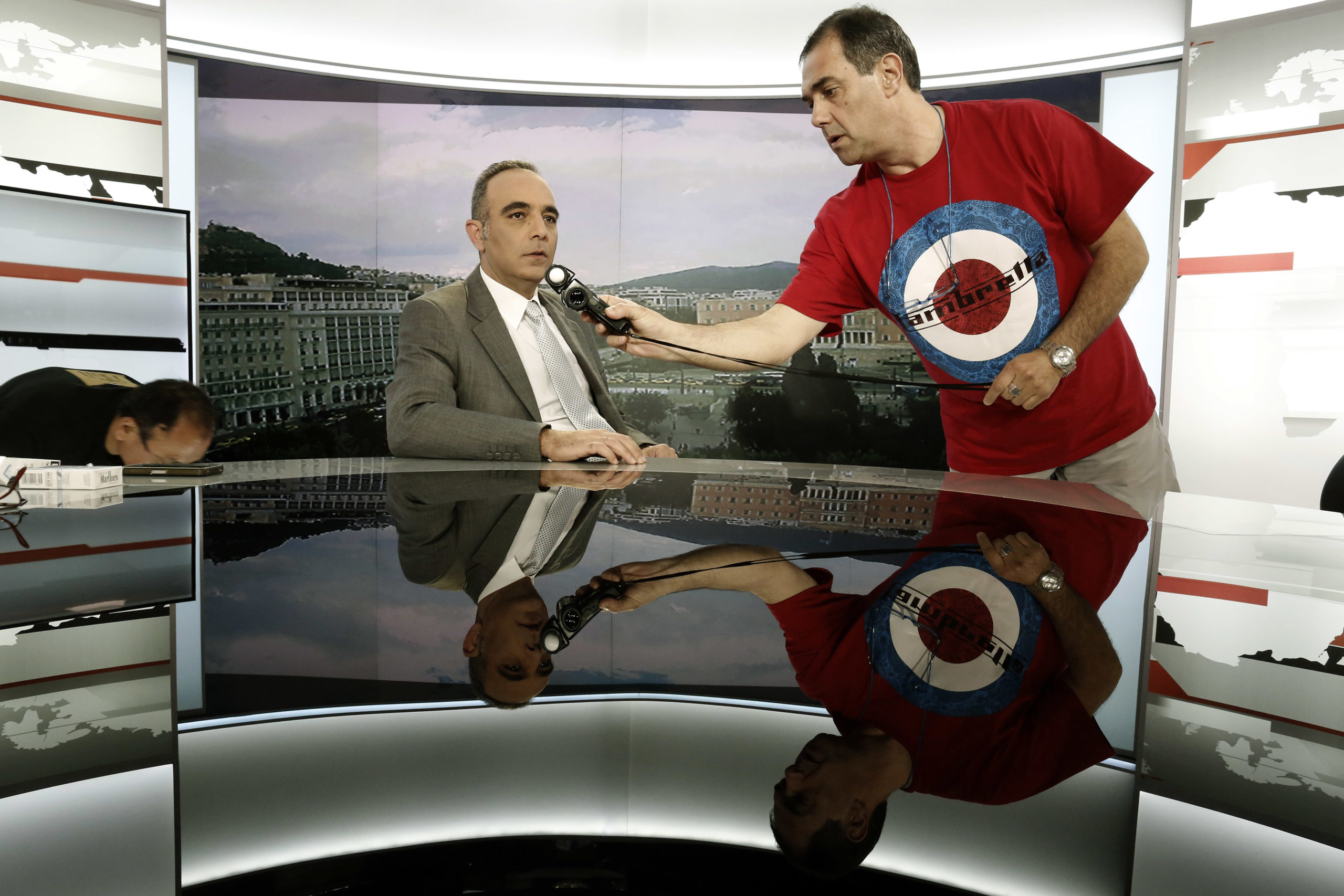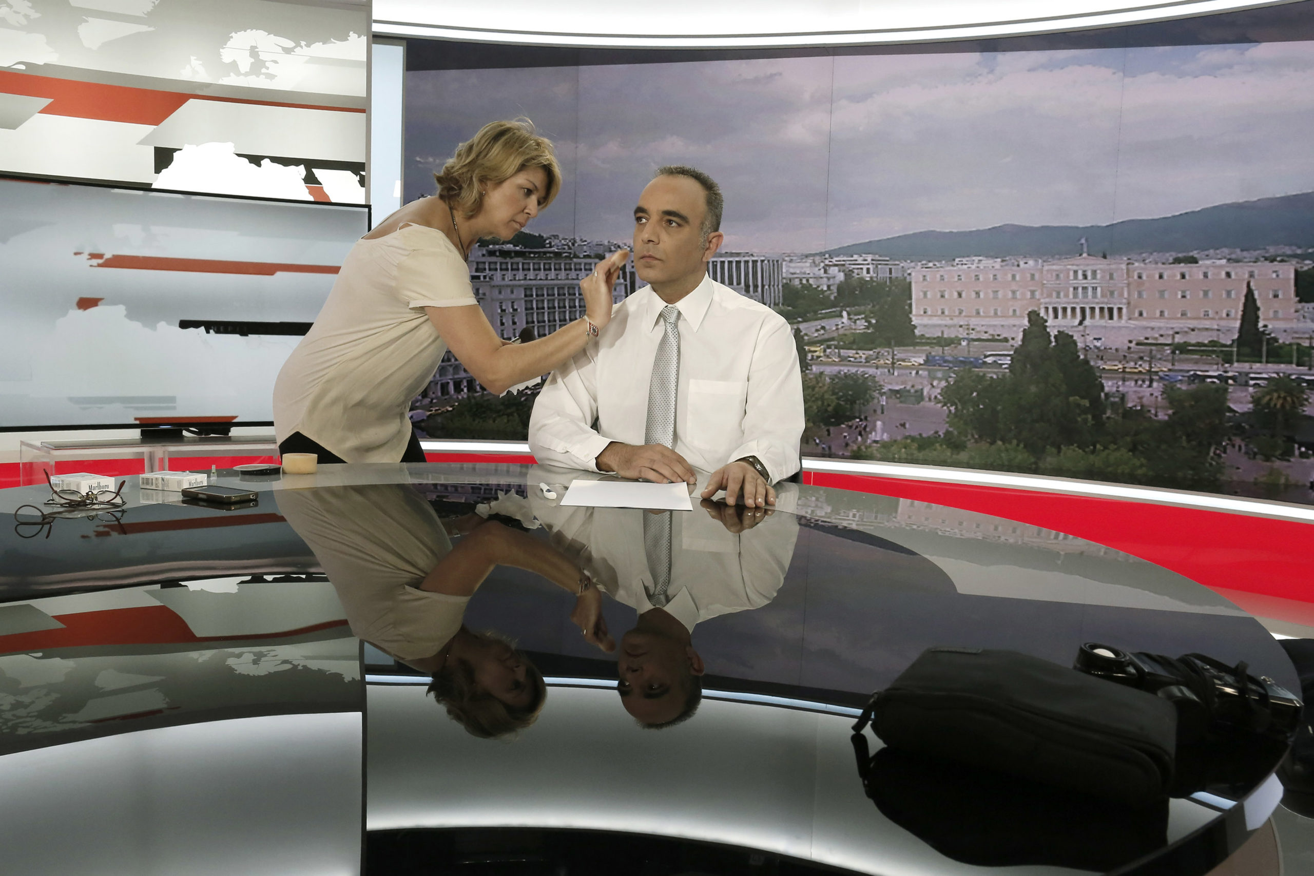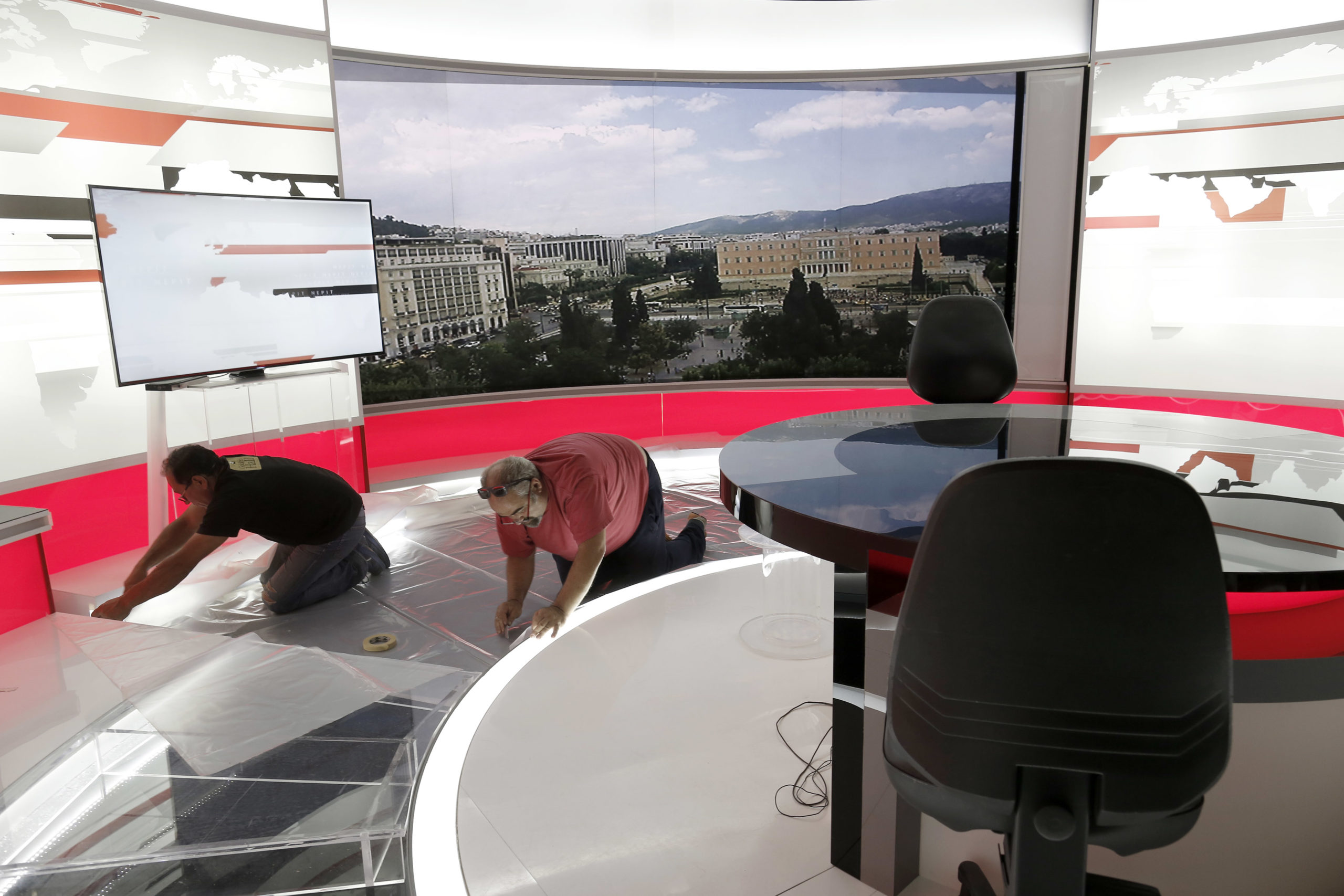 Την ίδια ώρα οι τεχνικοί ετοιμάζουν το στούντιο του δελτίου.