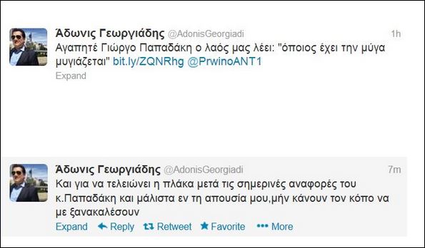 Για …χάρη του Πάνου Καμμένου, ο Άδωνις Γεωργιάδης έκανε μαθήματα δημοσιογραφίας στον Γιώργο Παπαδάκη. Οταν άκουσε ότι θα βγει στην εκπομπή ο αρχηγός των ΑΝΕΛ ζητούσε να του απευθύνει ερωτήσεις. “Αφήστε με, γιατί όποτε με βλέπει στη Βουλή φεύγει τρέχοντας”, έλεγε ο Άδωνις.