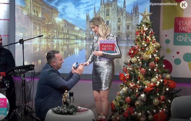 Όλα συνέβησαν κατά τη διάρκεια της εορταστικής εκπομπής που προβλήθηκε στον αέρα ανήμερα των Χριστουγέννων, το απόγευμα της Τετάρτης (25/12). Ο σύντροφος της παρουσιάστριας της προετοίμαζε μια ιδιαίτερη έκπληξη, καθώς εισέβαλε μέσα στην εκπομπή ζητώντας της να τον παντρευτεί.