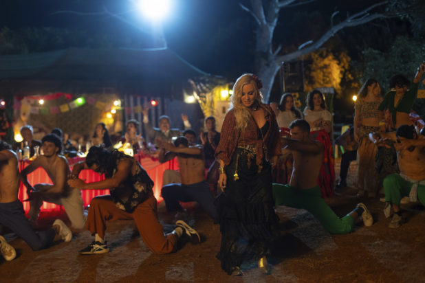 Η τραγουδίστρια ερμηνεύει και χορεύει με τους πρωταγωνιστές της σειράς «Η κατάρα της Τζέλας Δελαφράγκα»