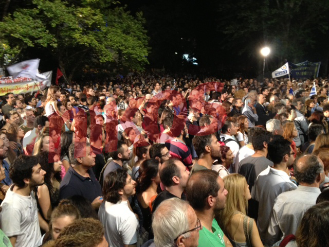 Εκατοντάδες πολίτες έχουν συρρεύσει και απόψε στην ΕΡΤ, για να διαμαρτυρηθούν αλλά και να συμπαρασταθούν στους εργαζομένους.