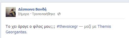 Η τραγουδίστρια ανέβασε την ακόλουθη φωτογραφία στο προφίλ της στο facebook για τον Θέμη Γεωργαντά.