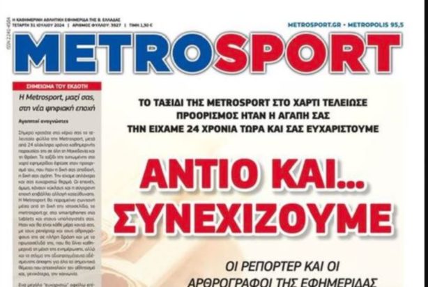 Τέλος εποχής για την αθλητική εφημερίδα Metrosport, με τον Τύπο της Θεσσαλονίκης να δέχεται ένα ακόμα ισχυρό πλήγμα.