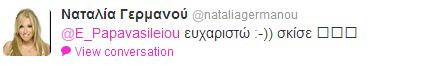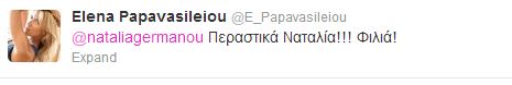 Πρόκειται για την πρώην συμπαρουσιάστριά της, Έλενα Παπαβασιλείου. Της έγραψε στο twitter: