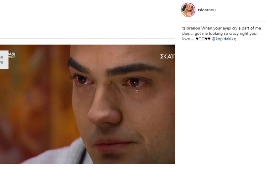 Η Αργυρώ ανέβασε στον προσωπικό της λογαριασμό στο Instagram μία φωτογραφία του Γιάννη μέσα από το παιχνίδι όταν εκείνος έκλαιγε μέσα στο κόκκινο δωμάτιο και μιλούσε με τα πιο τρυφερά λόγια για εκείνη, την οποία και συνόδευσε με το σχόλιο: “Όταν τα μάτια σου κλαίνε, ένα κομμάτι μου πεθαίνει”.