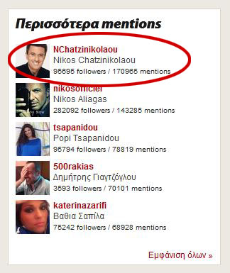 Επίσης τα περισσότερα mentions στην Ελλάδα χτες στο twitter τα είχε ο Νίκος Χατζηνικολάου