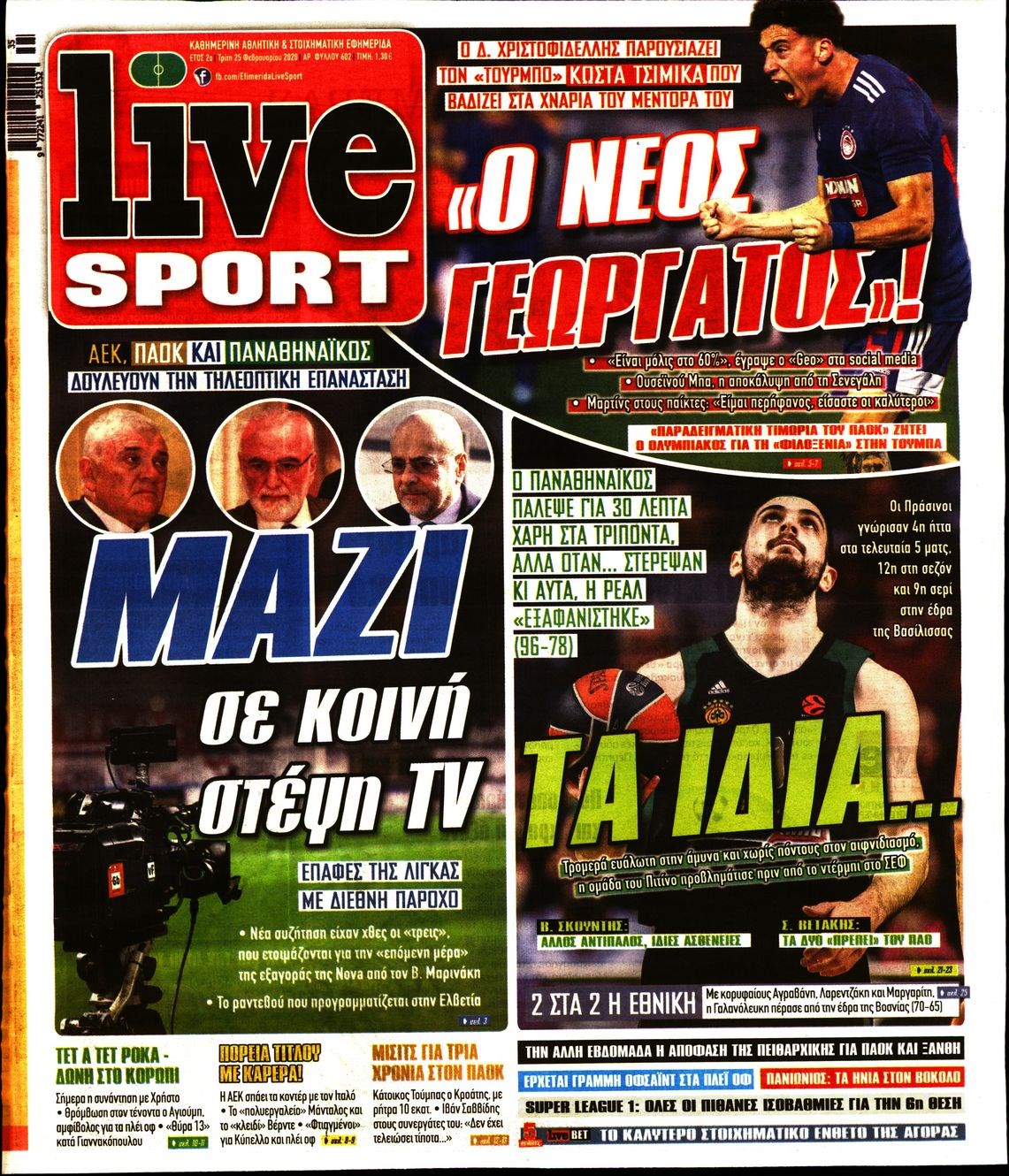 Πρωτοσέλιδα: Οι αθλητικές εφημερίδες 25/2/2020 Κώστας Τεό 06:50, Τρίτη 25 Φεβρουαρίου 2020 Media Διαβάστε τα πρωτοσέλιδα των αθλητικών εφημερίδων: ΑΘΛΗΤΙΚΕΣ ΕΦΗΜΕΡΙΔΕΣ ΠΡΩΤΟΣΕΛΙΔΑ Μοιράσου το: σχολίασε κι εσύ (0 σχόλια) Ακολουθήστε το enikos.gr στο Google News και μάθετε πρώτοι όλες τις ειδήσεις Δείτε όλες τις τελευταίες ειδήσεις από την Ελλάδα και τον Κόσμο στο enikos.gr Ειδήσεις Ροή Ειδήσεων 8 ώρες πριν Ανυποχώρητοι οι αγρότες: Δεν πάνε στο Μαξίμου, κλιμακώνουν τις κινητοποιήσεις – Ποια είναι τα αιτήματά τους 22 λεπτά πριν ΗΠΑ: Ένοπλη επίθεση στο πανεπιστήμιο Μπράουν του Ρόουντ Άιλαντ – Δύο νεκροί και εννέα τραυματίες, ανθρωποκυνηγητό για τον εντοπισμό του δράστη 30 λεπτά πριν Θανατηφόρο τροχαίο στον Κολωνό: Νεκρός αναβάτης μηχανής έπειτα από σύγκρουση με αυτοκίνητο 7 ώρες πριν Διατλαντικό ρήγμα: Οι σχέσεις ΗΠΑ – Ευρώπης επιδεινώνονται λόγω του νέου δόγματος Τραμπ και της πίεσης που ασκεί στην Ουκρανία 7 ώρες πριν ΟΠΕΚΕΠΕ-Κρήτη: Πώς δρούσε το κύκλωμα με τις παράνομες επιδοτήσεις – Τα ΚΥΔ, οι ψευδείς αιτήσεις και τα… «βράχια της Νορμανδίας» 38 λεπτά πριν Οπτική ψευδαίσθηση: Μόνο αν έχετε παρατηρητικότητα ντετέκτιβ, θα βρείτε τον αριθμό «6» σε 5 δευτερόλεπτα 54 λεπτά πριν Σπλαχνικό λίπος: Γιατρός του Χάρβαρντ αποκαλύπτει 7 τροφές που βοηθούν στη μείωσή του με φυσικό τρόπο 1 ώρα πριν Τα ζώδια σήμερα, Κυριακή 14 Δεκεμβρίου: Παρθένοι, αφιερώστε χρόνο για να καταλάβετε καλύτερα τα συναισθήματα 8 ώρες πριν Εκπληκτική ανακάλυψη σε αρχαία ελληνική πόλη: Βρέθηκε γυναικείο κεφάλι αγάλματος και οι αρχαιολόγοι εκτιμούν ότι μπορεί να συνδέεται με τη θεά Εστία 56 δευτερόλεπτα πριν Η Realnews στο www.pressreader.com 6 λεπτά πριν ΔΕΔΔΗΕ: Διακοπές ρεύματος σήμερα (14/12) στην Αθήνα και σε άλλες 9 περιοχές της Αττικής 14 λεπτά πριν Ουγγαρία: Οι οινοποιοί φοβούνται ότι μια ασθένεια μπορεί να «εξαφανίσει» τον κλάδο 22 λεπτά πριν ΗΠΑ: Ένοπλη επίθεση στο πανεπιστήμιο Μπράουν του Ρόουντ Άιλαντ – Δύο νεκροί και εννέα τραυματίες, ανθρωποκυνηγητό για τον εντοπισμό του δράστη 30 λεπτά πριν Θανατηφόρο τροχαίο στον Κολωνό: Νεκρός αναβάτης μηχανής έπειτα από σύγκρουση με αυτοκίνητο ENIKOS NETWORK «Με αυτόν τον τρόπο κατάφερα να απογειώσω τη σεξουαλική μου ζωή» – Τι αποκαλύπτει 40χρονη Πείτε «τέλος» στην ακμή χωρίς φάρμακα – Ειδικός αποκαλύπτει αποτελεσματική ρουτίνα περιποίησης Νέα εποχή για την Εγνατία Οδό – Τι αλλάζει με επενδύσεις 1,8 δισ. ευρώ Στάση εργασίας στα λεωφορεία την Τετάρτη 17 Δεκεμβρίου – Κανονικά τα περιαστικά δρομολόγια Σύγχρονος Νοστράδαμος: Προειδοποιεί για «μεγάλο γεγονός» τους επόμενους μήνες που θα συγκλονίσει τη Βρετανία και τον κόσμο Τεστ παρατηρητικότητας: Μπορείτε να βρείτε τις 3 διαφορές στις εικόνες με έναν πιγκουίνο σε 14 δευτερόλεπτα περισσότερα 06:05 , Κυριακή 14 Δεκεμβρίου 2025 Σήμερα με τη Realnews: Δωροεπιταγή 10€ Δωροεπιταγή αξίας 10€ για αγορές άνω των 60€ από τα πολυκαταστήματα Factory Outlet. H προσφορά... 05:46 , Κυριακή 14 Δεκεμβρίου 2025 Οι αθλητικές εφημερίδες 14/12/2025 Διαβάστε τα πρωτοσέλιδα από τις αθλητικές εφημερίδες, σήμερα 14/12/2025. 05:38 , Κυριακή 14 Δεκεμβρίου 2025 Οι πολιτικές εφημερίδες 14/12/2025 Διαβάστε τα πρωτοσέλιδα από τις πολιτικές εφημερίδες, σήμερα 14/12/2025. 04:18 , Κυριακή 14 Δεκεμβρίου 2025 Σήμερα με τη Realnews: Σκάναρε & κέρδισε με το PaduApp Τo κορυφαίο app επιβράβευσης στην Ελλάδα που σε ανταμείβει για κάθε αγορά! Κέρδισε με 3 μόνο β... ΤΕΛΕΥΤΑΙΕΣ ΕΙΔΗΣΕΙΣ 6 λεπτά πριν ΔΕΔΔΗΕ: Διακοπές ρεύματος σήμερα (14/12) σ