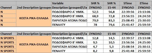Δείτε αναλυτικά τον πίνακα της AGB και τι νούμερα έκανε ο αγώνας σε Α’ ημίχρονο, Β΄ ημίχρονο, στην παράταση αλλά και στα πέναλτι.