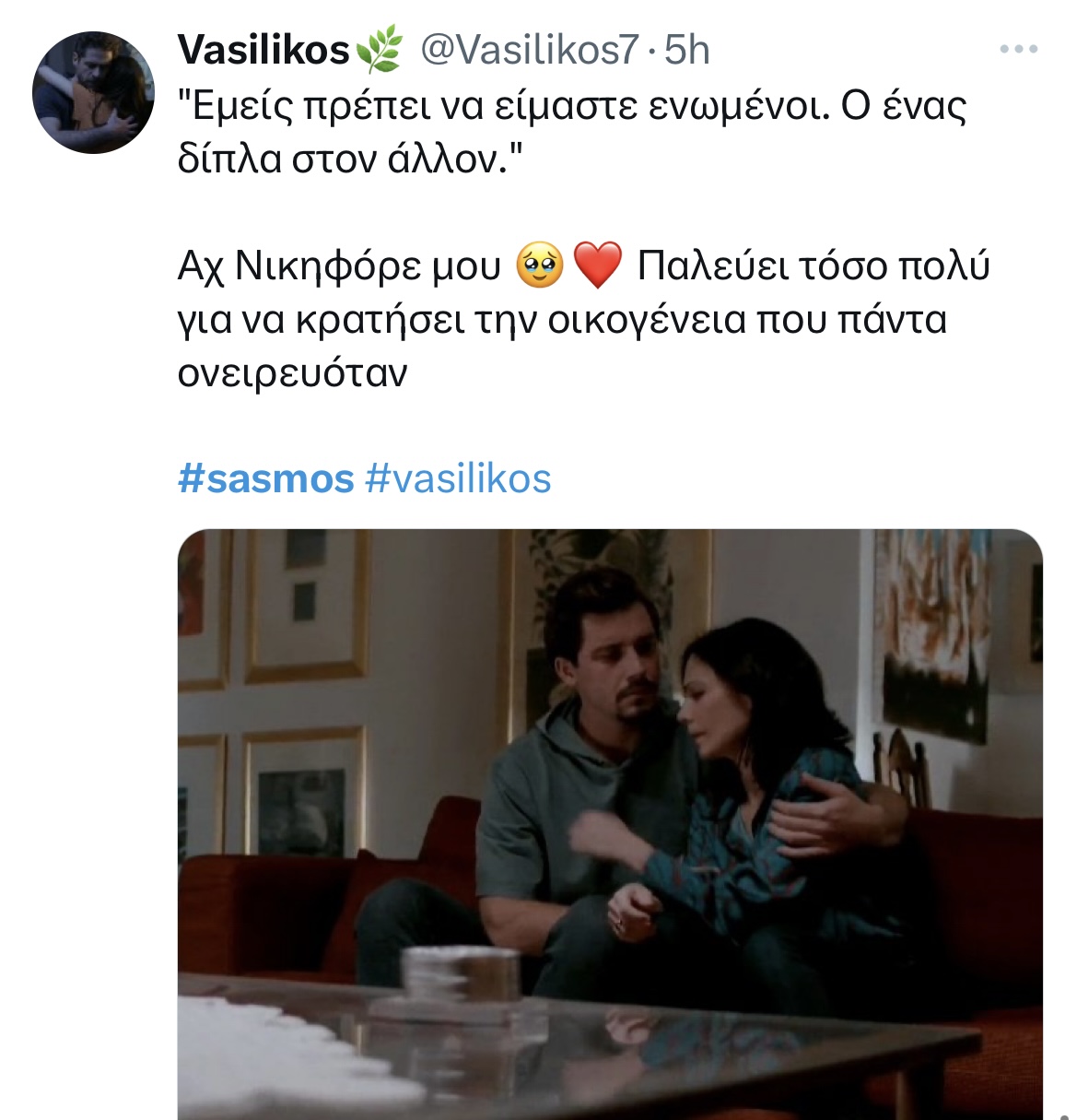 Στάθηκε στη «συγκλονιστική» ερμηνεία της γιαγιάς Ειρήνης, όπως και στην αντίδραση του Νικηφόρου ( Γιώργου Αμούτζα) «να κρατήσει την οικογένειά του ενωμένη».