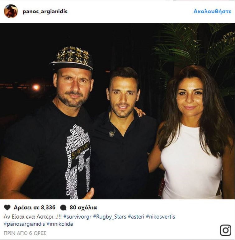 Οι δύο πρώην «Μαχητές» έκαναν βραδινή έξοδο σε νυχτερινό κέντρο και συγκεκριμένα στον Νίκο Βέρτη. Μάλιστα, πόζαραν μαζί του σε φωτογραφία που ανέβασε ο Πάνος στον προσωπικό του λογαριασμό στο Ιnstagram γράφοντας : «Αν είσαι ένα αστέρι…!!!».