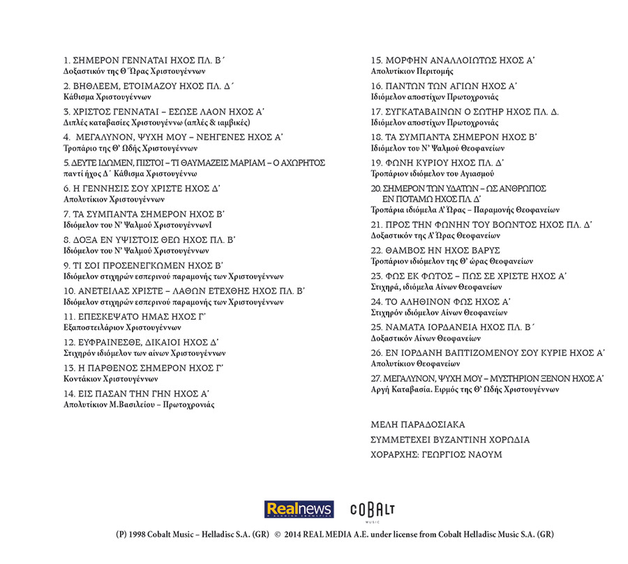 Νέο cd με τους Βυζαντινούς ύμνους των Χριστουγέννων της Πρωτοχρονιάς και των Θεοφανίων