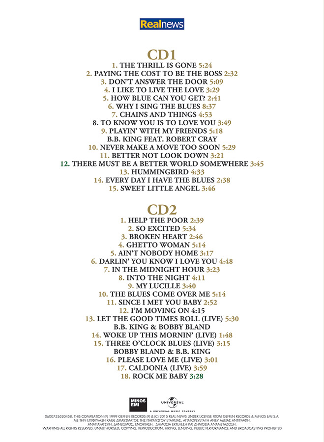 2 συλλεκτικά cd με όλες τις επιτυχίες του θρύλου των μπλουζ.