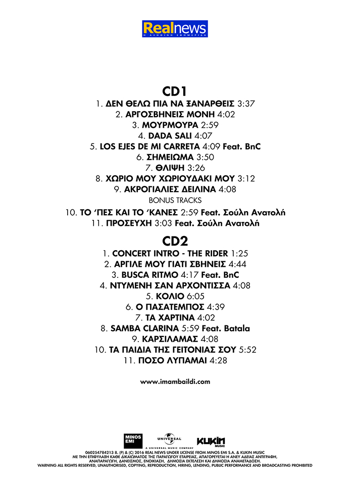 Το νέο – ακυκλοφόρητο διπλό live άλμπουμ των Imam Baildi ,με όλες τις μεγάλες επιτυχίες τους.