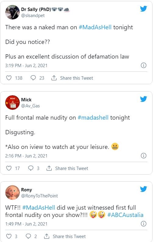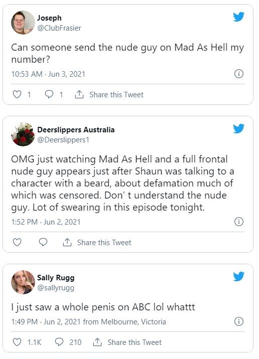Η σατιρική εκπομπή του Shaun Micallef προβαλλόταν στη συνηθισμένη της ώρα, 20.30, όταν στο επεισόδιο της Τετάρτης εμφανίστηκε ένας ολόγυμνος άνδρας επιδεικνύοντας τα γεννητικά του όργανα και σοκάροντας τους τηλεθεατές.
