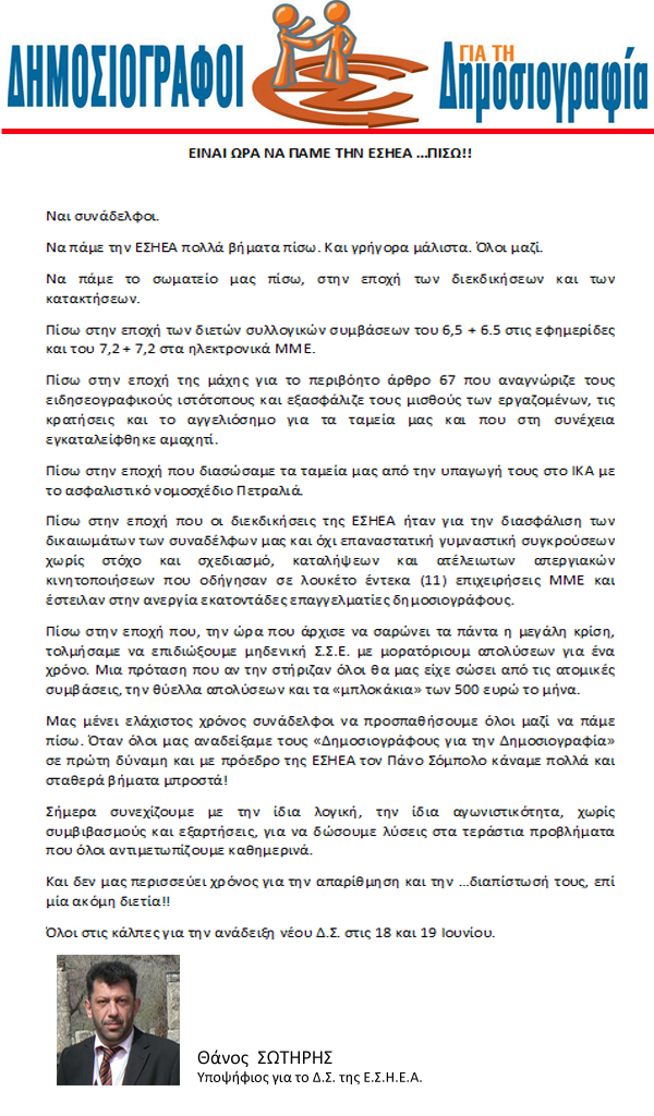 Σωτήρης: Να πάμε την ΕΣΗΕΑ…πίσω Κυριάκος Γεωργόπουλος 16:12, Τρίτη 18 Ιουνίου 2013 Media Σωτήρης: Να πάμε την ΕΣΗΕΑ…πίσω Το μήνυμα του Θάνου Σωτήρη για τις εκλογές της ΕΣΗΕΑ: Μοιράσου το: σχολίασε κι εσύ (0 σχόλια) Ακολουθήστε το enikos.gr στο Google News και μάθετε πρώτοι όλες τις ειδήσεις Δείτε όλες τις τελευταίες ειδήσεις από την Ελλάδα και τον Κόσμο στο enikos.gr Ειδήσεις Ροή Ειδήσεων 1 ώρα πριν Live-Μετ’ εμποδίων η έξοδος: Ουρές χιλιομέτρων στη Ριτσώνα, εναλλακτικές από χωματόδρομους αναζητούν οι οδηγοί – Μποτιλιάρισμα και εντός της Αττικής 3 ώρες πριν Μπλόκα της Τροχαίας: «Λερναία Ύδρα» τα γκρουπ στο Viber που προειδοποιούν για ελέγχους – Το «γκρίζο» νομικό τοπίο και οι νόμιμες εφαρμογές 1 ώρα πριν Καλύβια: Είχε χάσει 30 κιλά το «πιστόλι» του Έντικ για να μην αναγνωρίζεται – Πώς εντόπισε τον 35χρονο το ελληνικό FBI 2 ώρες πριν Αλεξανδρούπολη: Προφυλακίστηκε η μητέρα του 3χρονου που πέθανε από ασιτία – Τι λέει η δικηγόρος της 2 ώρες πριν Έπσταϊν: Οι νέες αποκαλύψεις που «καίνε» τον πρώην πρίγκιπα Άντριου – Το email από το Μπαλμόραλ στη Μάξγουελ για να βρει «ακατάλληλους φίλους» 2 ώρες πριν Τα 4 ζώδια που θα λάβουν όλα όσα ζητήσουν από το σύμπαν το 2026 -«Οι ευχές σας γίνονται πραγματικότητα» 7 ώρες πριν Αν πίνετε τον καφέ σας σκέτο, πιθανότατα διαθέτετε αυτά τα 7 ισχυρά χαρακτηριστικά 3 ώρες πριν Μυστήριο στο Διάστημα: Επιστήμονες εντόπισαν ένα «πρωτοφανές φαινόμενο» γύρω από το «Μάτι του Σάουρον», μόλις 25 έτη φωτός από τη Γη 8 ώρες πριν Η Coca-Cola και ο Ελληνικός Ερυθρός Σταυρός μαζί αυτά τα Χριστούγεννα: Μια μεγάλη αγκαλιά για τους συνανθρώπους μας που έχουν ανάγκη 4 λεπτά πριν Πλατύκαμπος Λάρισας: «Σημειωτόν» τα οχήματα στην Παλαιά Εθνική Οδό – Δείτε φωτογραφίες 10 λεπτά πριν Ατελείωτη ουρά οχημάτων στην Εθνική Οδό Αθηνών – Λαμίας – Δείτε βίντεο αναγνώστη 13 λεπτά πριν Κλέλια Ανδριολάτου για την προσωπική της ζωή: «Αποφεύγω να μιλάω για πράγματα τα οποία ίσως κάποια στιγμή να μετανιώσω, γιατί δεν θα ήθελα να τα είχα μοιραστεί» 15 λεπτά πριν Το ΣΚΡΑΤΣ στον ρυθμό των Χριστουγέννων – Νέοι εορταστικοί λαχνοί με πολλές ευκαιρίες για κέρδη και ειδική περιοχή για ευχές 19 λεπτά πριν Σε λειτουργία μέσω gov.gr η έκδοση ληξιαρχικών πράξεων για γεγονότα που δηλώθηκαν στο Ειδικό Ληξιαρχείο – Πώς υποβάλλεται η αίτηση ENIKOS NETWORK Συγκίνηση στα εγκαίνια του ανακαινισμένου Κέντρου Υγείας στο Αμύνταιο ΕΦΕΤ: Οδηγίες για το τραπέζι των Χριστουγέννων – Τι πρέπει να προσέξουν οι καταναλωτές Ρεβεγιόν στις μεγάλες πίστες: Πόσο κοστίζει ένα τραπέζι σε Αθήνα και Θεσσαλονίκη – Αναλυτικά οι τιμές και οι διαθεσιμότητες Ακρίβεια: Μεγάλη η «ψαλίδα» από το χωράφι στο ράφι – Σημαντικές ανατιμήσεις σε βασικά αγαθά Ο Google Assistant θα παραμείνει λίγο περισσότερο για ορισμένους χρήστες Android Τεστ προσωπικότητας: Το βάζο που θα επιλέξετε αποκαλύπτει πώς λύνετε προβλήματα στη ζωή σας περισσότερα 14:03 , Τρίτη 23 Δεκεμβρίου 2025 Έξοδος εκδρομέων για τα Χριστούγεννα: Στείλε βίντεο ή φωτογραφίες στο enikos.gr – Αποθήκευσε τον αριθμό 6944 05 05 05 Πολλοί έχουν επιλέξει να περάσουν τις γιορτές εκτός πόλης, ωστόσο και φέτος η μαζική έξοδος απ... 10:34 , Τρίτη 23 Δεκεμβρίου 2025 Την Κυριακή με τη Realnews: Ό,τι και αν αγοράσεις, σκανάρεις και κερδίζεις! Την Κυριακή με τη Realnews: Ό,τι και αν αγοράσεις, σκανάρεις και κερδίζεις! Με το PADU app, το... 07:01 , Τρίτη 23 Δεκεμβρίου 2025 Την Κυριακή με τη Realnews: Δωροεπιταγή 10€ Την Κυριακή με τη Realnews: Δωροεπιταγή 10€ Δωροεπ