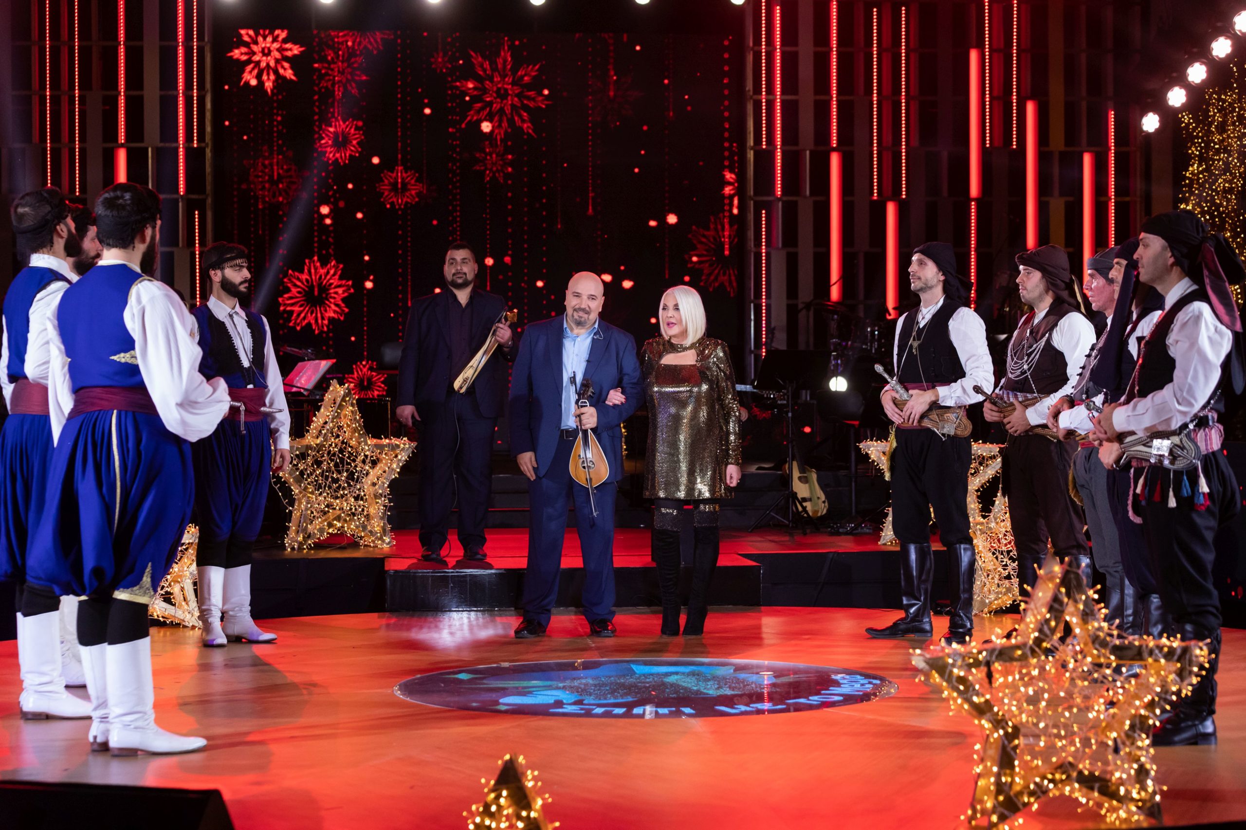 Στο ξεκίνημα της ξεχωριστής αυτής νύχτας οι παιδικές φωνές της χορωδίας του Σπύρου Λάμπρου θα μας μεταφέρουν τη μαγεία των Χριστουγέννων με κάλαντα και τραγούδια. Τη δική του νότα στο χριστουγεννιάτικο πρόγραμμα θα δώσει ο λυράρης Νίκος Ζωιδάκης, με τις μαντινάδες του, ενώ παραδοσιακά συγκροτήματα θα μας ξεσηκώσουν με χορούς από την Κρήτη και τον Πόντο.