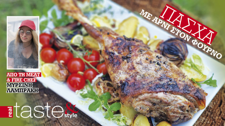 Η meat & fire chef Μυρσίνη Λαμπράκη ψήνει το αρνάκι του Πάσχα στον φούρνο.