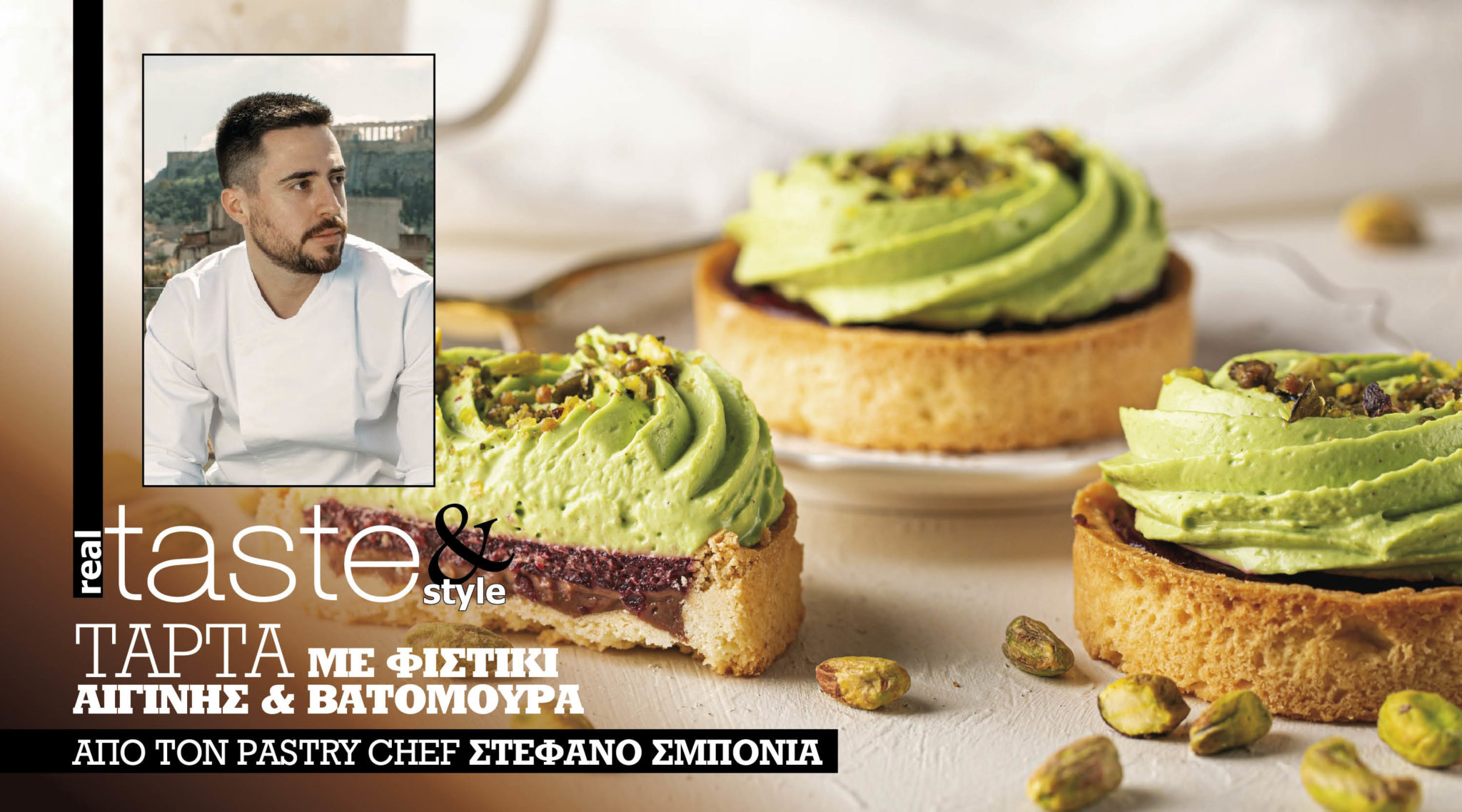 O pastry chef Στέφανος Σμπόνιας δημιουργεί μια τραγανή τάρτα βουτύρου με φίνα γεύση από φιστίκι Αιγίνης!