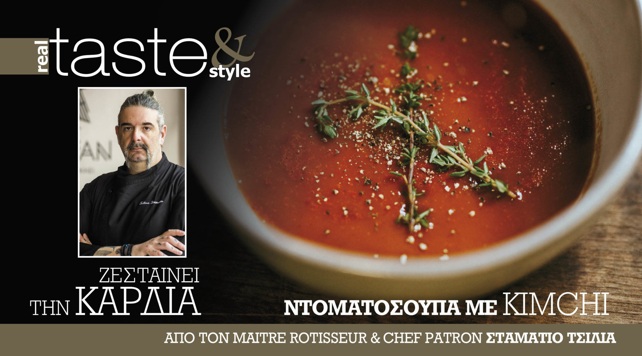 O maître rotisseur & chef patron Σταμάτιος Τσίλιας προτείνει για τις κρύες ημέρες της νηστείας μια ντοματόσουπα με σάλτσα κίμτσι με πικάντικη και υπόξινη γεύση.