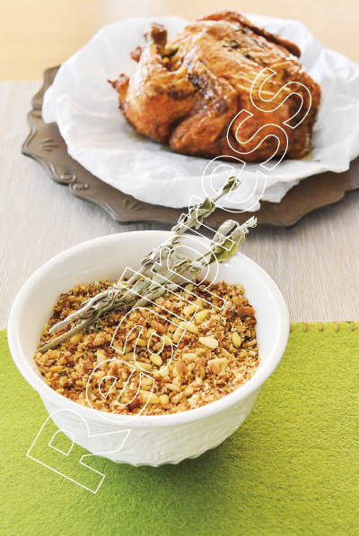 Γέμιση με ψωμί, λουκάνικο και φασκόμηλο