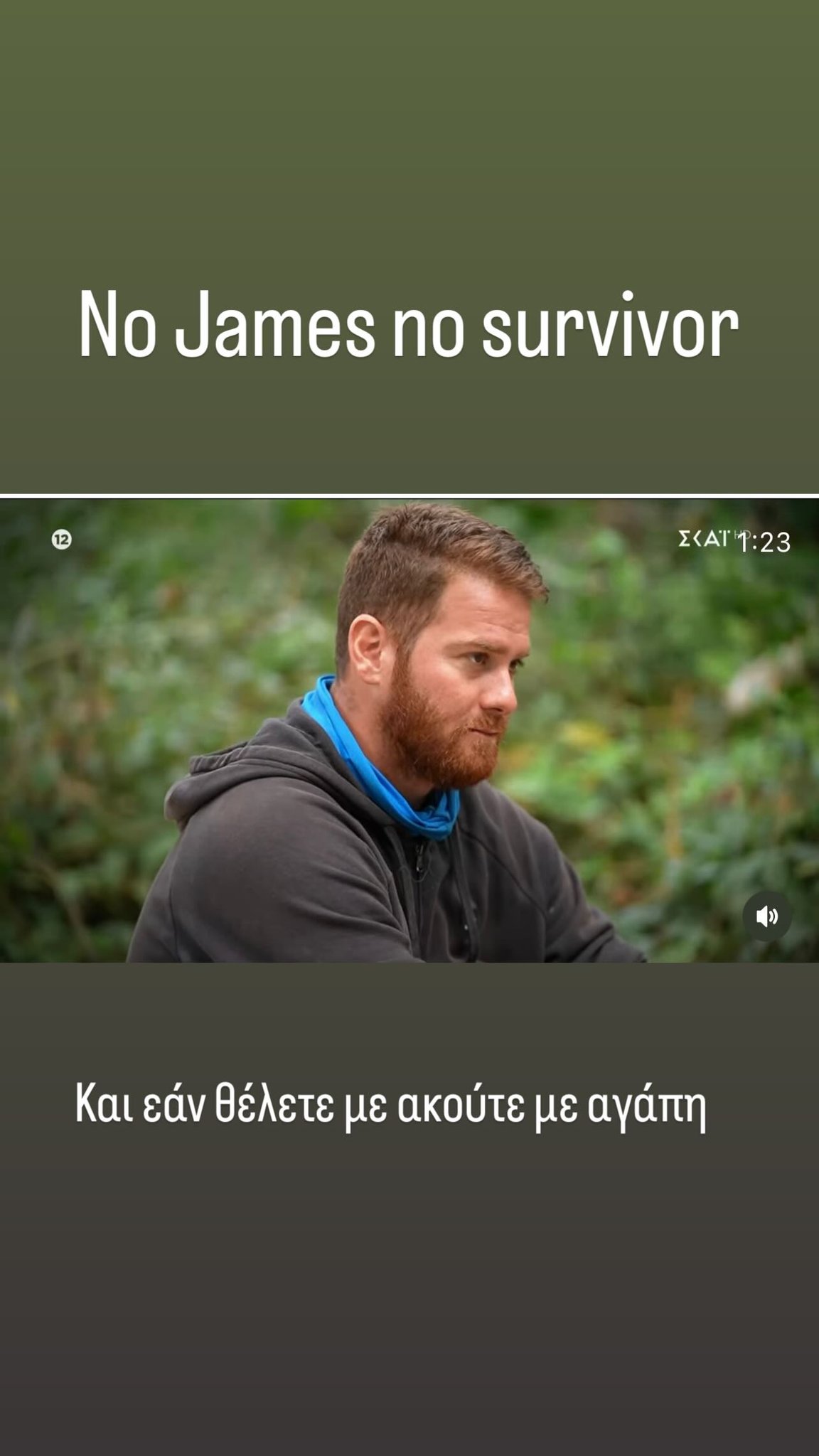 Συγκεκριμένα ο γνωστός τραγουδιστής και πρώην παίκτης του Survivor, στο πρώτο του story έγραψε: «No James, no Survivor. Και αν θέλετε με ακούτε με αγάπη».