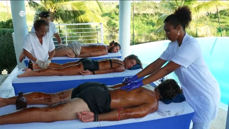 Η τριάδα απήλαυσε μασάζ με σοκολάτα, το οποίο διαδέχτηκε ένα χαλαρωτικό μπάνιο με μυρωδάτα σαμπουάν.